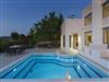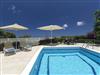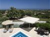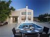 Further details concerning the outdoor space: Large sun terraces furnished with sun loungers and parasols surround the 6 x 4.5m swimming pool which is accessed by ladder steps. There is a poolside shower. There is a barbecue for the guests to prepare delicious meals where they can enjoy at the patio dining table and chairs, while watching over the mountains, the old village of Skouloufia and the sea. The area is pleasantly landscaped with lawn areas and citrus trees. There is a private parking in the outdoor space of the villa.