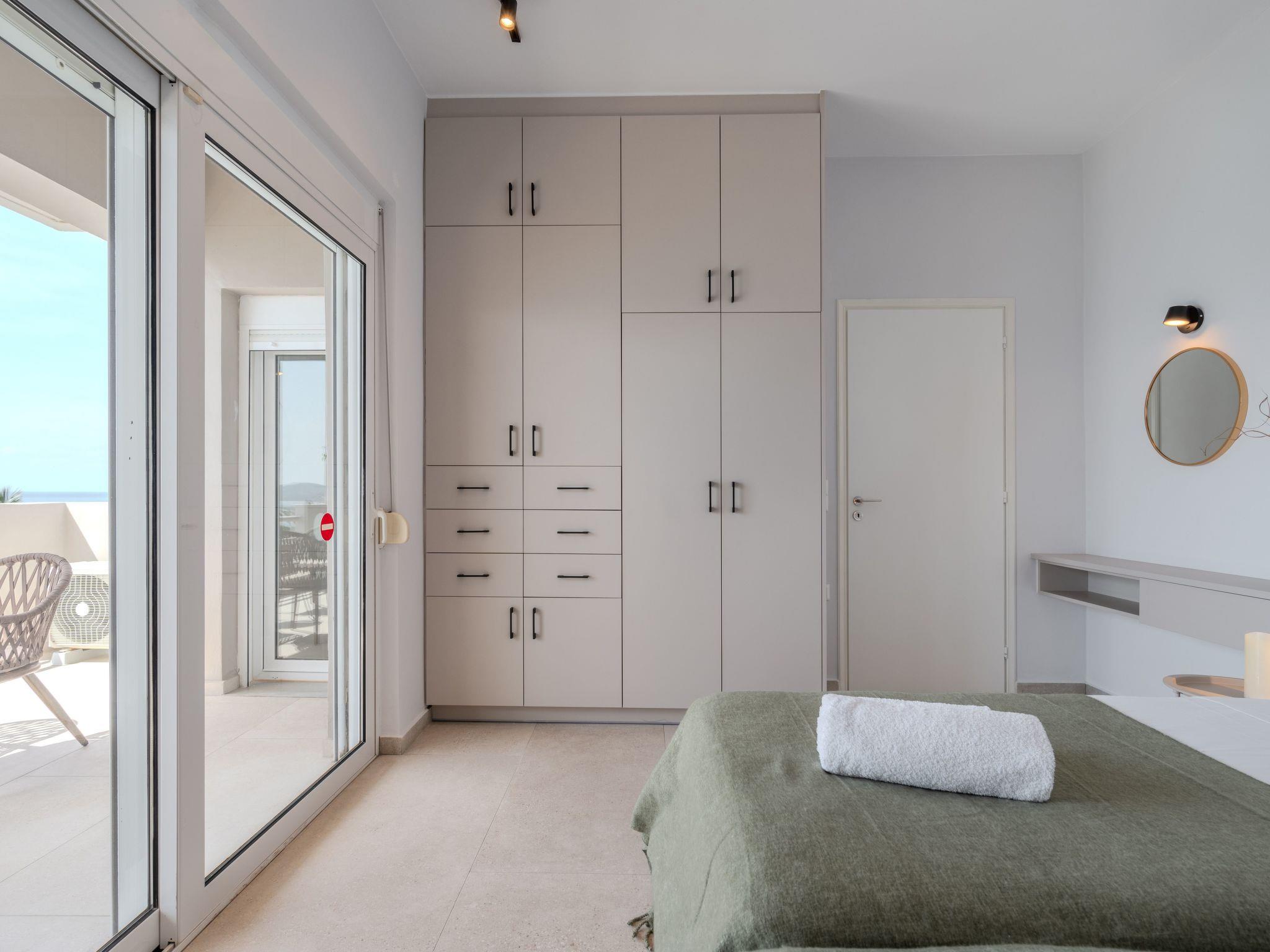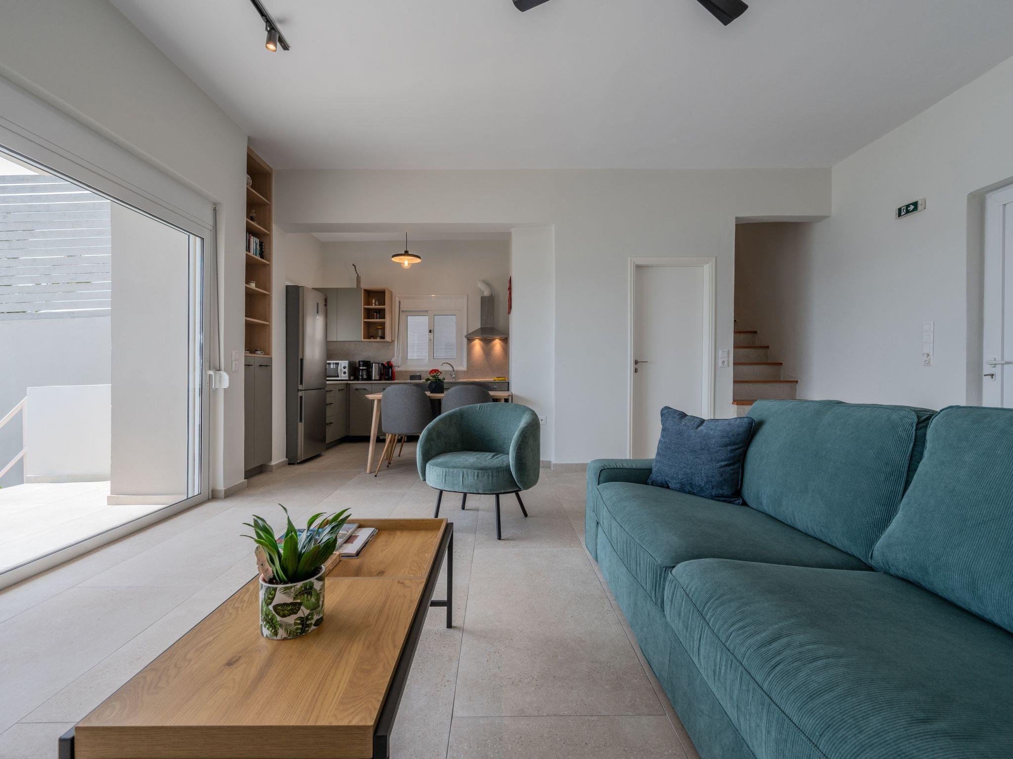 Identical in layout and elegance to Villa Chryssa, Villa Faye welcomes up to four guests into its bright and breezy interior. The open-plan living space includes a plush sofa, satellite TV, and a work desk. Step out onto the balcony to take in panoramic sea views as you dine outdoors or relax with a glass of wine.