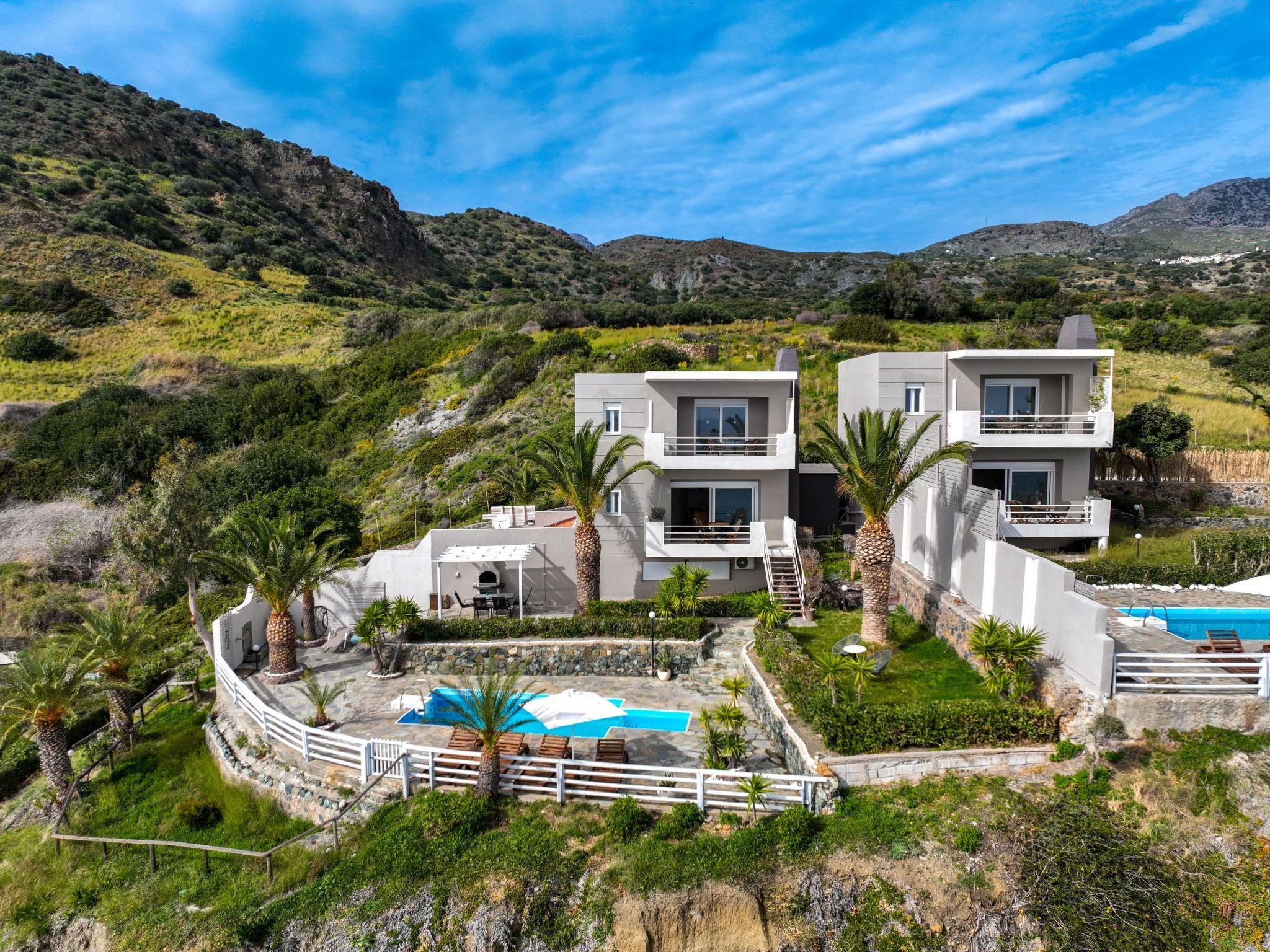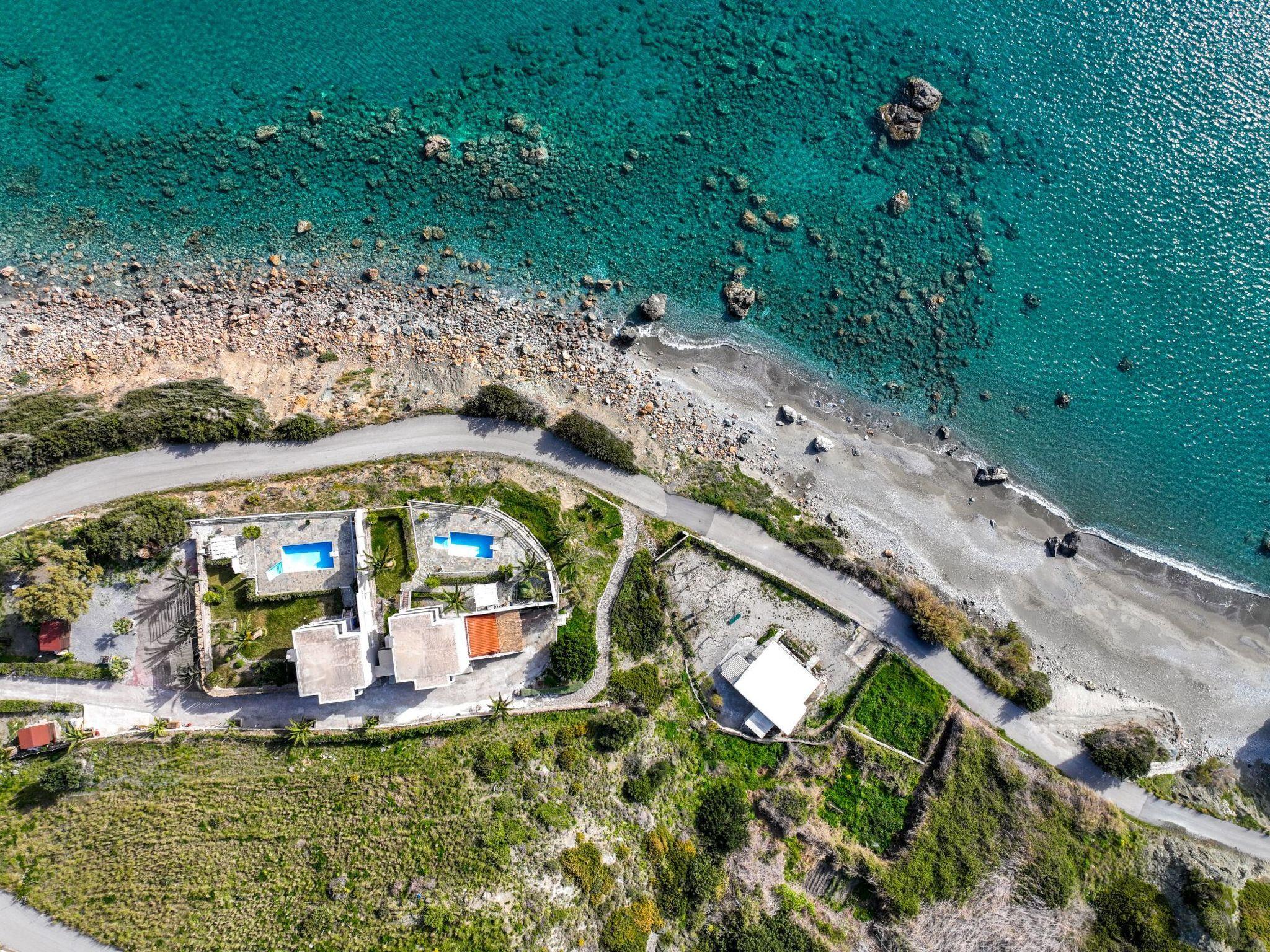 Nestled in a serene bay where rugged mountains meet the deep blue of the Libyan Sea, East of Preveli Villas offers a dreamy escape on Crete’s tranquil southern shoreline. Just 30 meters from the water’s edge, this peaceful seaside retreat includes two spacious 105 m² villas—each with a private pool—and a charming 50 m² beach cottage just steps from the sea.
