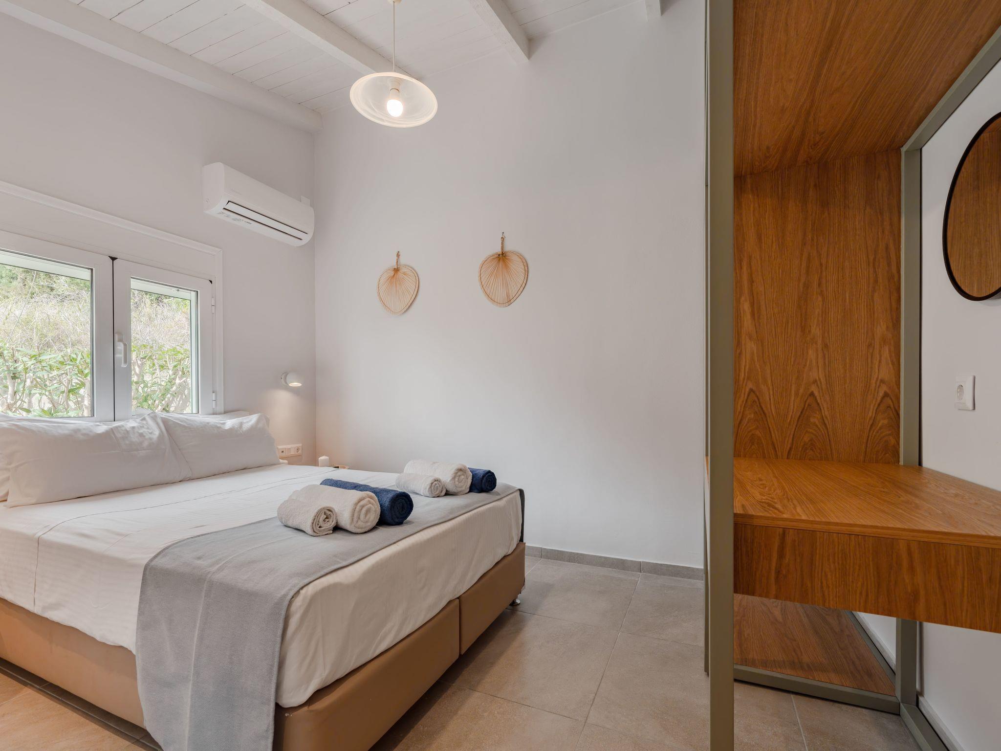 The house is a testament to privacy, comfort, and breathtaking panoramic sea views, accommodating up to four guests. The sunlit living spaces shine with modern amenities, featuring a fully-equipped kitchen and a sea-facing veranda. It is designed with your utmost comfort in mind, including thoughtful touches like free Wi-Fi, air conditioning, washing machines, and an outdoor barbecue area. Set against sweeping sea views and lush gardens, these interiors create a tranquil oasis for every guest, ensuring a comfortable and relaxing stay.
