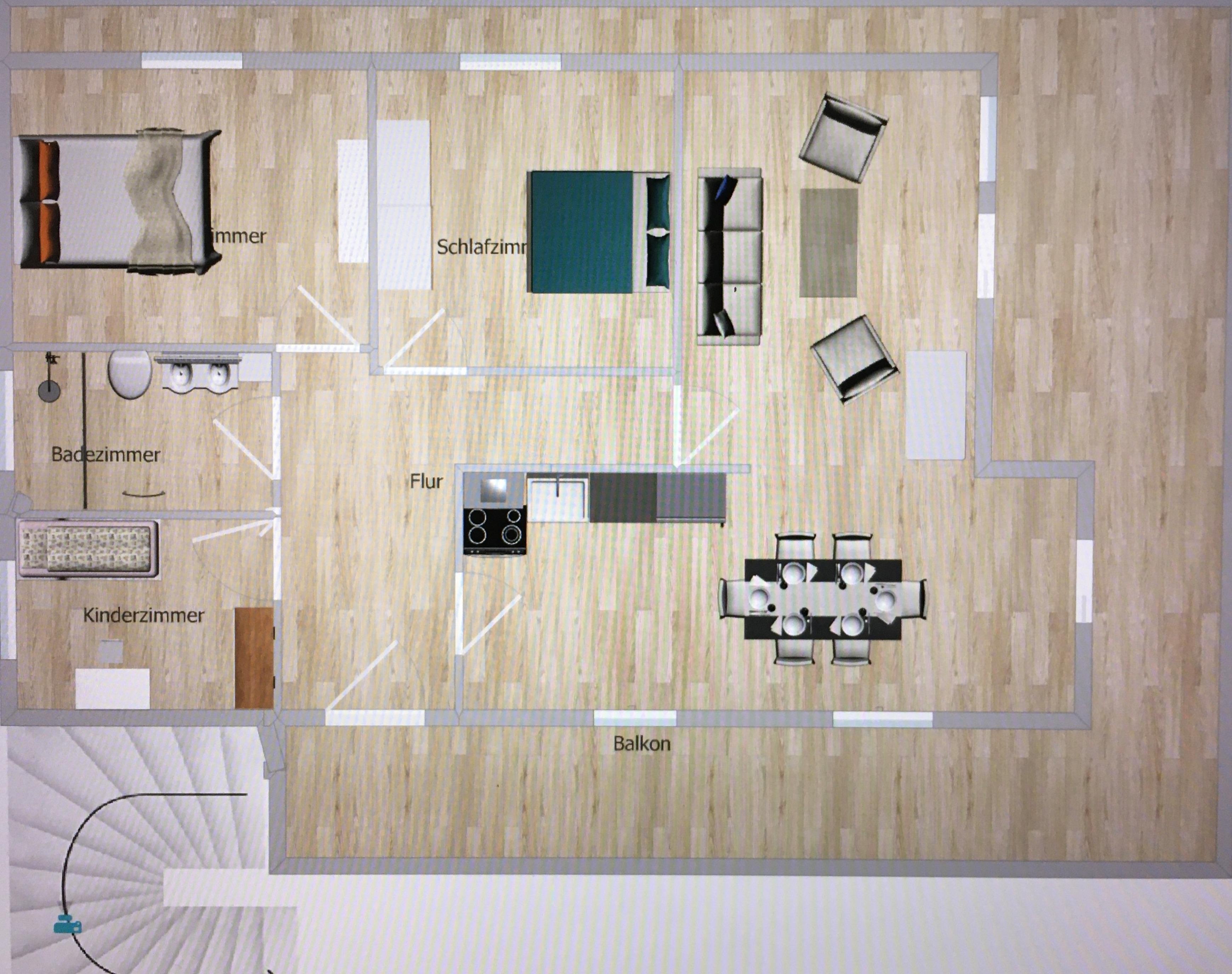 Das 1. OG ist über eine Außentreppe erreichbar.