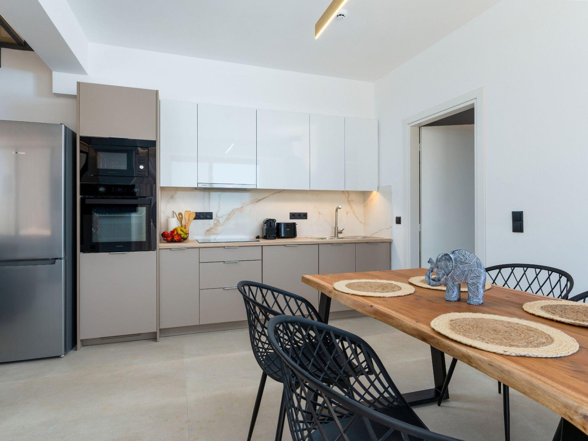 Inside, the villa offers a spacious open-plan living area, featuring plush seating, air conditioning, a 49" smart HDTV with satellite channels, and a Bluetooth stereo system to enhance your vacation vibe. The fully equipped kitchen is perfect for self-catering, offering everything you need to prepare meals, from a Nespresso machine for your morning coffee to a blender and dishwasher for easy meal prep.