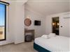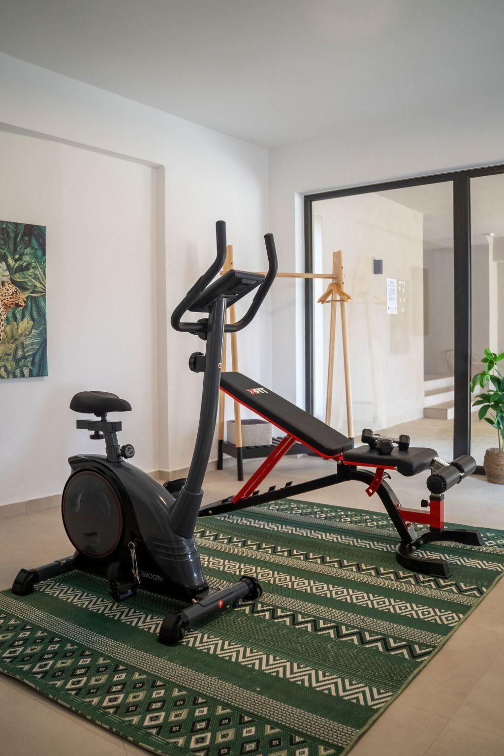 Upstairs, the master bedroom offers a double bed, a private balcony with sea views, an ensuite bathroom, and a satellite TV. The second bedroom has twin beds, its own ensuite, and satellite TV, making it ideal for friends or children. Additionally, foldable beds provide flexibility for larger groups or families.