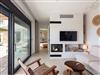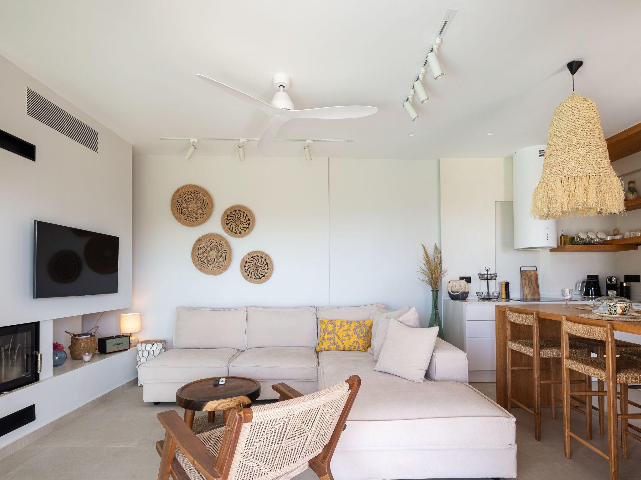 Step into the villa's open-plan living area, where you'll find a cozy and inviting lounge with comfortable seating, a built-in fireplace, and a 43-inch smart HDTV with satellite channels for your entertainment. The living room seamlessly connects to the dining area and fully equipped kitchen, perfect for enjoying home-cooked meals. With amenities including a Nespresso espresso machine, stove, oven, dishwasher, microwave, and blender, cooking becomes a pleasure.