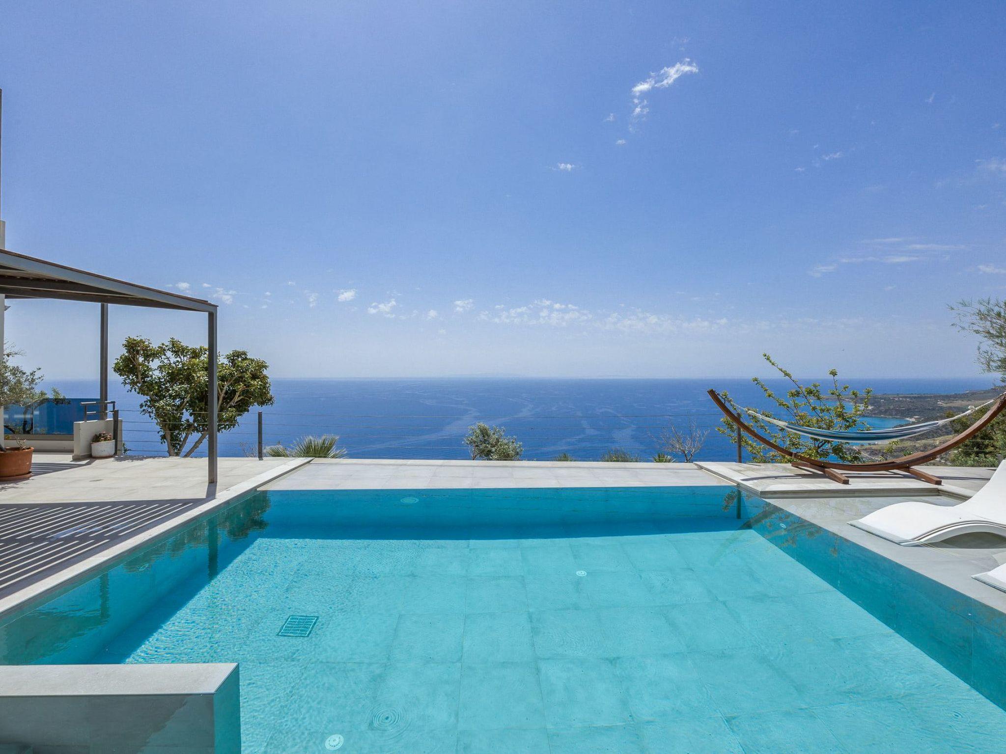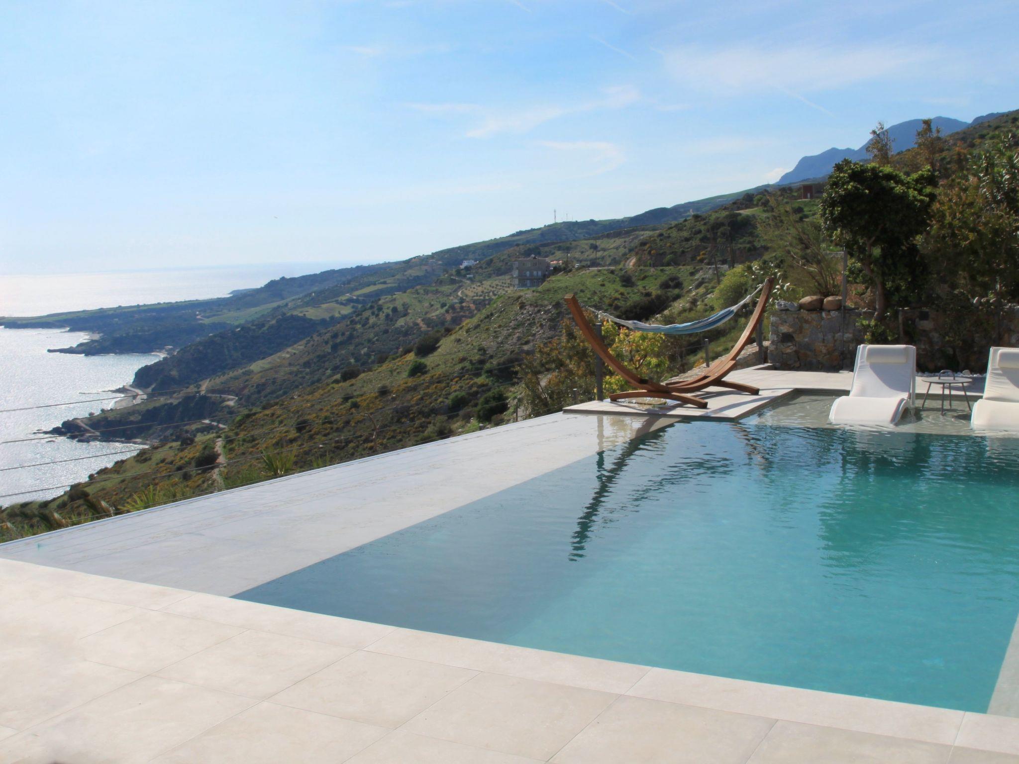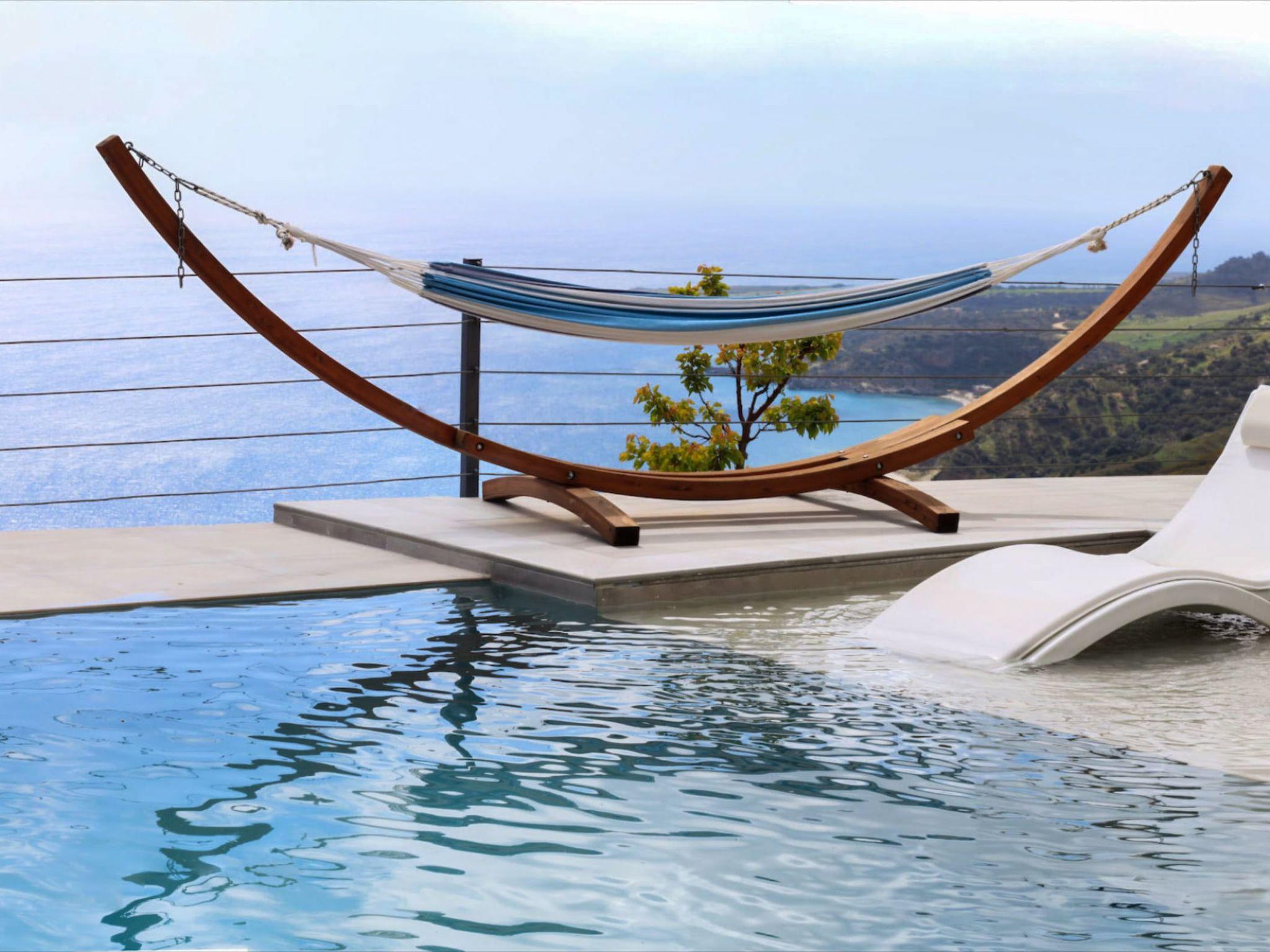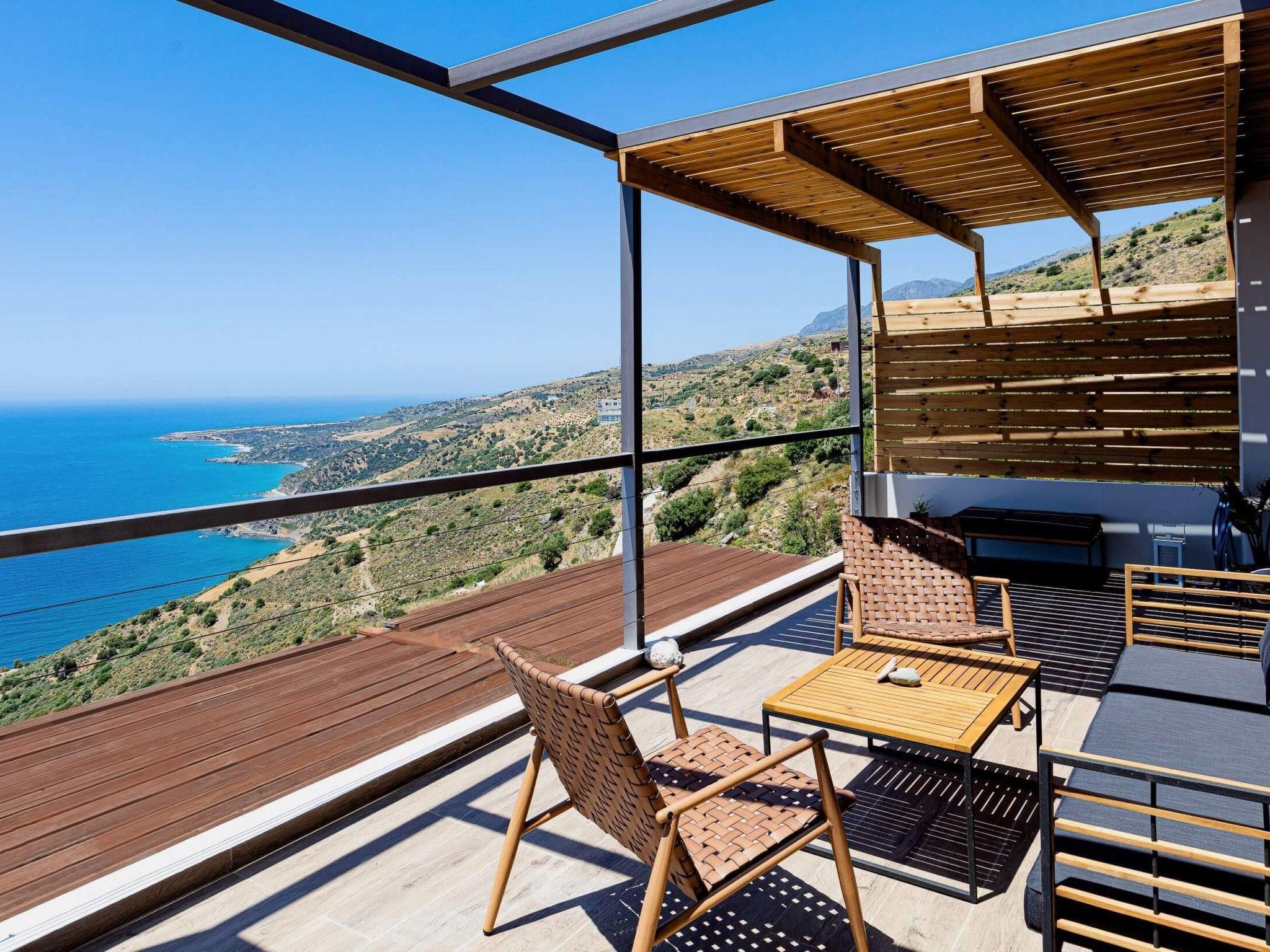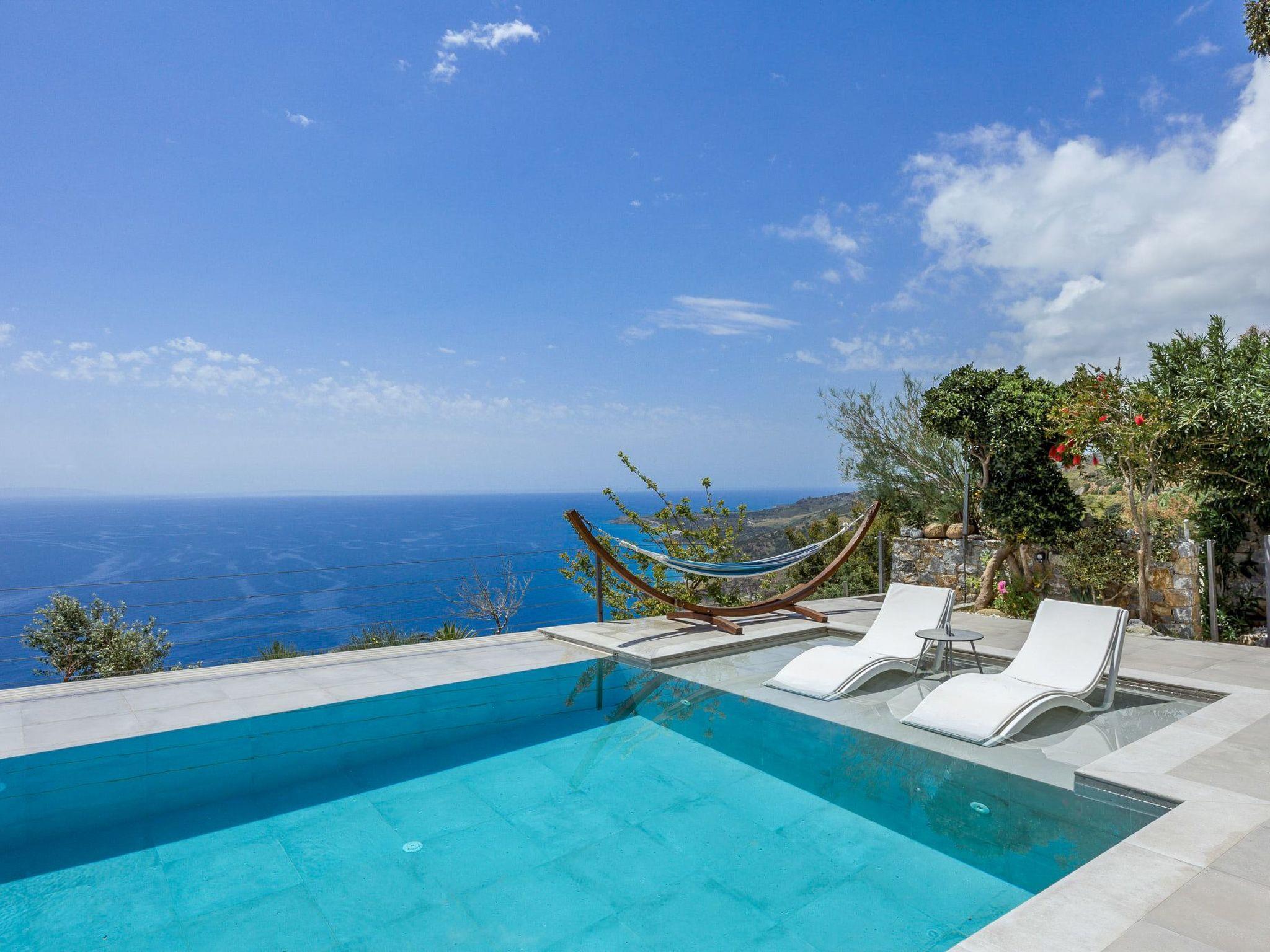 This Greek luxury villa is in the popular holiday destination of Rodakino (which literally translates as “Peach”), in South Crete. The villa is close to the quaint village of Plakias and is an excellent locale from which to explore various Cretan attractions. Villa Stefanos is home to modern, classy aesthetics and awe-inspiring sea views. Villa Stefanos’s lounge is tastefully furnished and equipped with a large TV and trendy sofas. The open-plan layout of the holiday home’s living area sees the dining and kitchen areas adjacent to the lounge and stylishly furnished and equipped with all the mod cons. The villa’s living area has large glass doors leading to a shaded balcony with outdoor dining furniture and a private swimming pool area complete with sunbeds, umbrellas, a hammock, and a shower. The luxury villa also offers access to a ping pong table and a vineyard. Villa Stefanos has 3 elegantly decorated bedrooms, each offering contemporary desk and wardrobe spaces. The first is a single bedroom on the ground floor and has one bed. The other two bedrooms are on the floor above and have two combined twin beds in each, with glass doors and a large balcony providing spectacular sea views. There is a full bathroom on each floor and a storeroom with a safe-deposit box on the ground floor. The Stephanos luxury holiday villa offers a welcome pack of fresh fruit, wine, and coffee capsules for guests to enjoy. A cleaning service is provided 3 to 4 days per week as required and there is private parking for 1 vehicle. Book your luxury vacation at Villa Stefanos and let its sophisticated style wash over you as you revel in the splendor of a perfect Greek getaway!