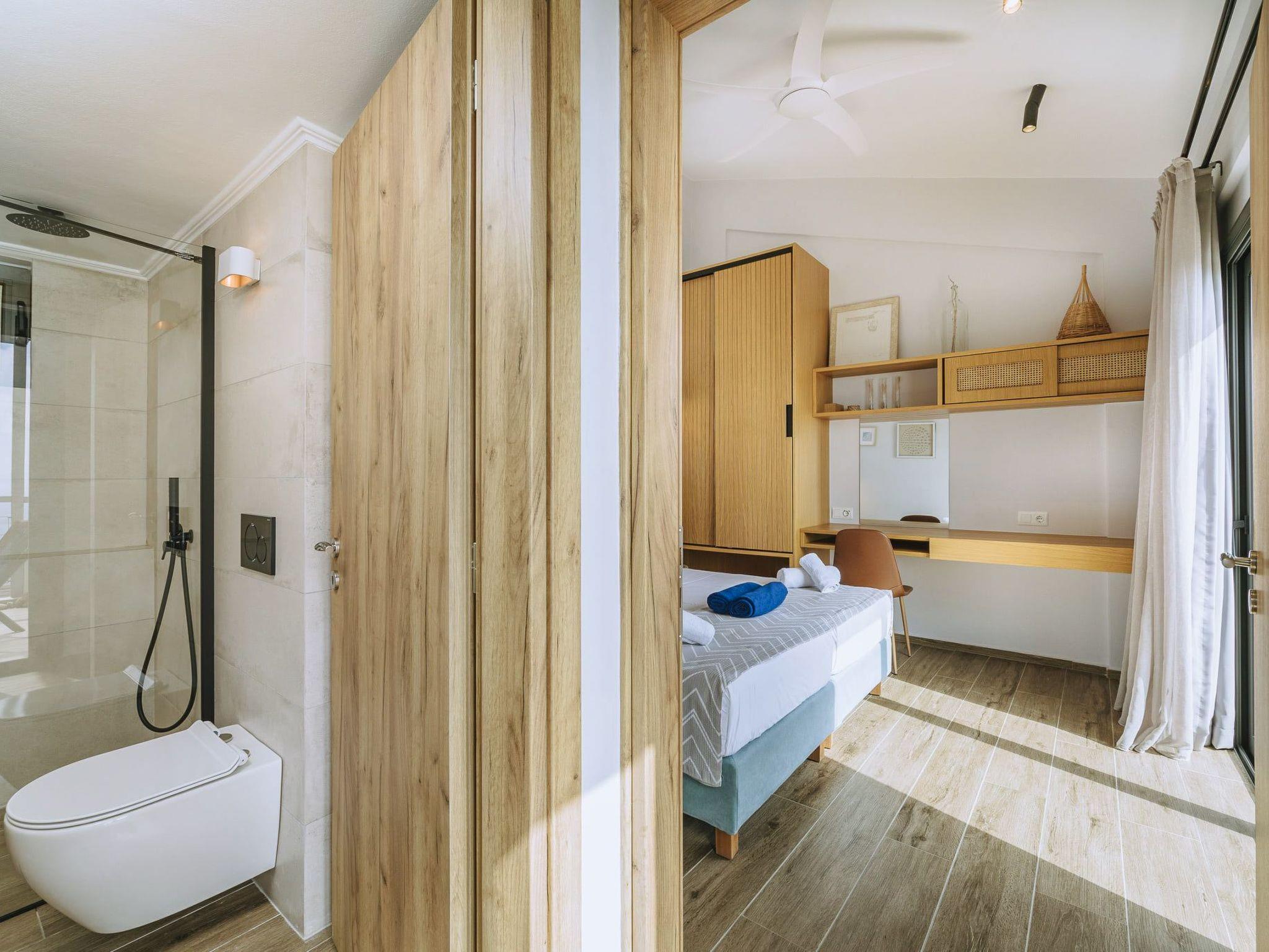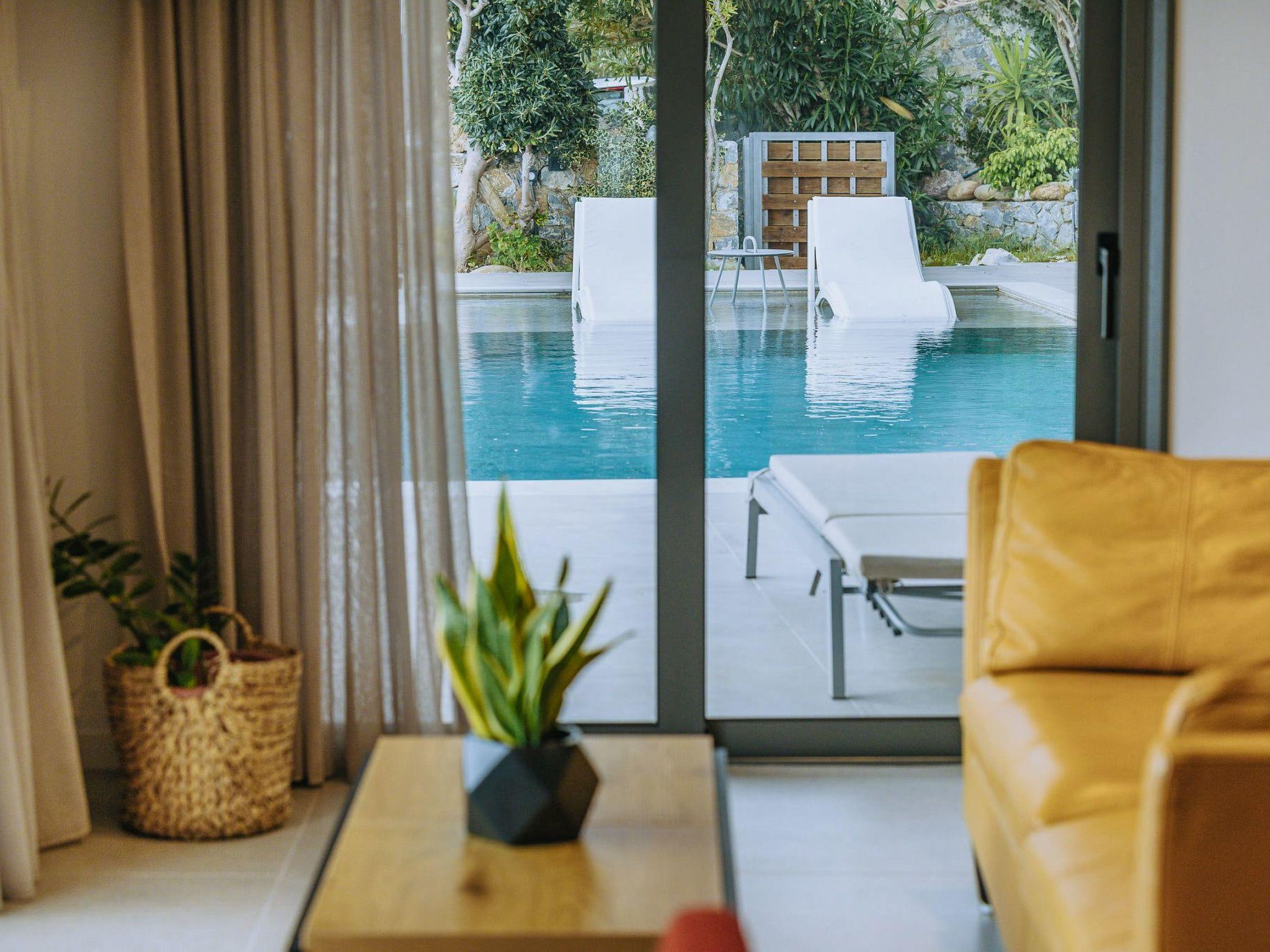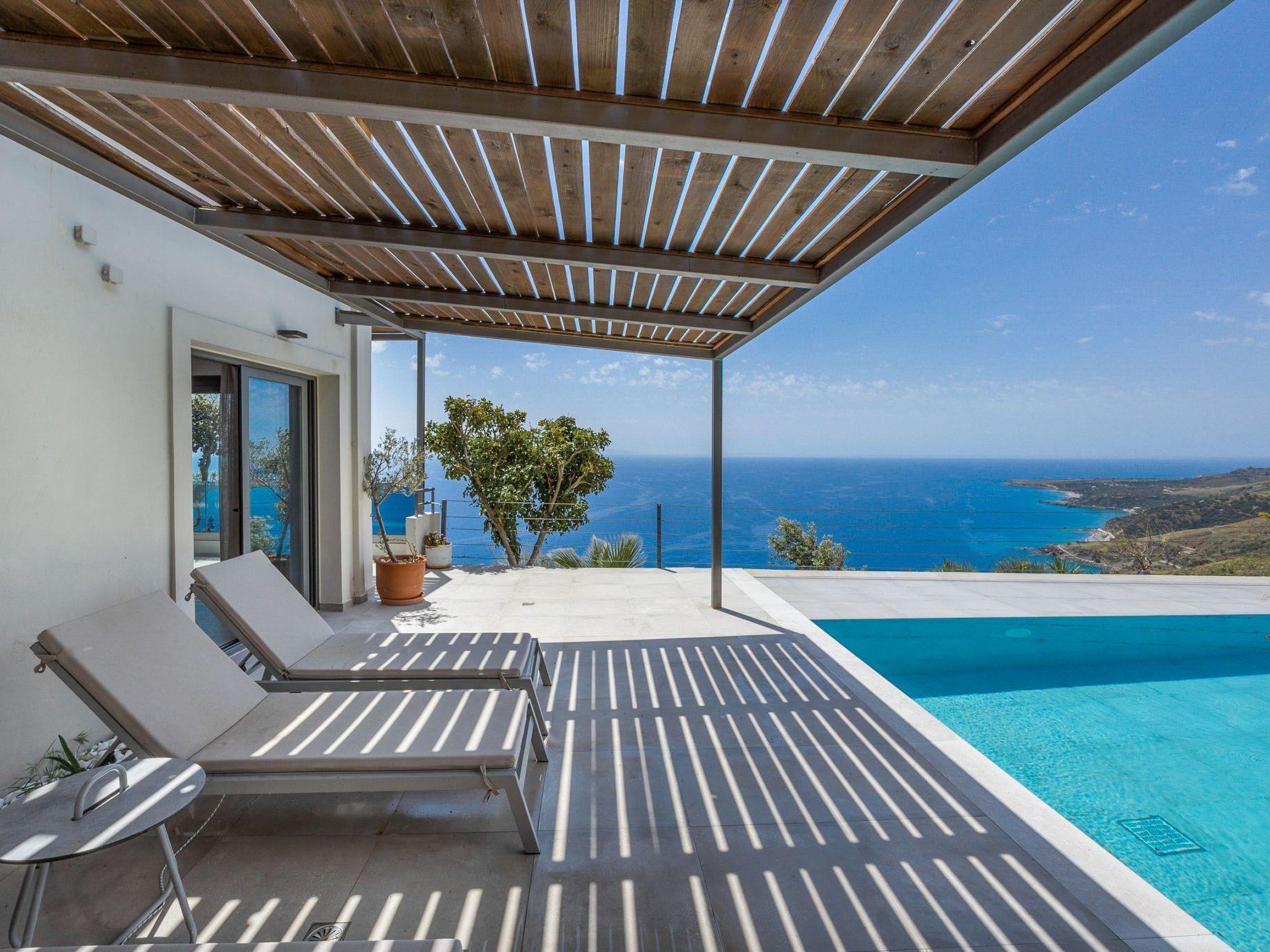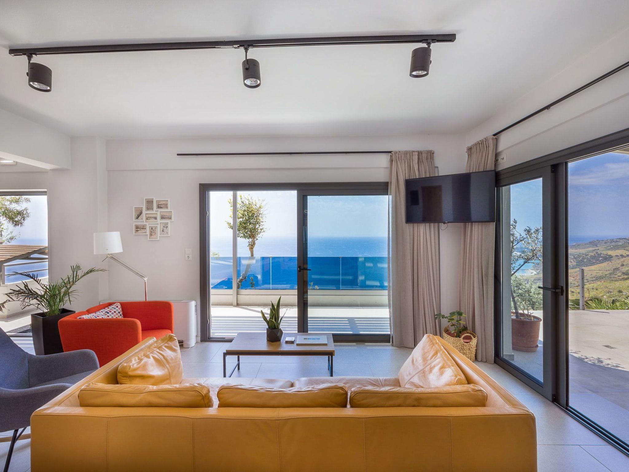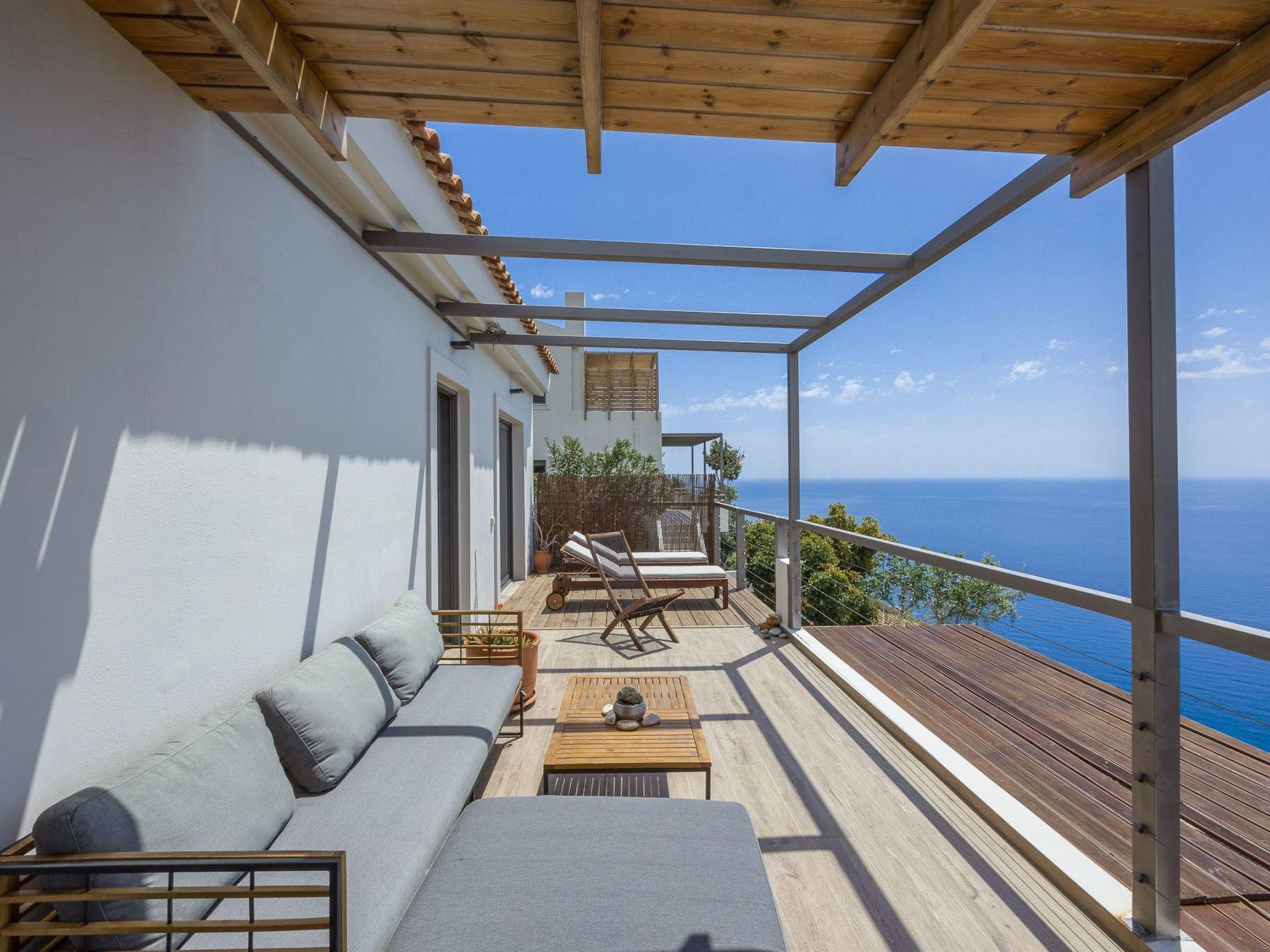 This Greek luxury villa is in the popular holiday destination of Rodakino (which literally translates as “Peach”), in South Crete. The villa is close to the quaint village of Plakias and is an excellent locale from which to explore various Cretan attractions. Villa Stefanos is home to modern, classy aesthetics and awe-inspiring sea views. Villa Stefanos’s lounge is tastefully furnished and equipped with a large TV and trendy sofas. The open-plan layout of the holiday home’s living area sees the dining and kitchen areas adjacent to the lounge and stylishly furnished and equipped with all the mod cons. The villa’s living area has large glass doors leading to a shaded balcony with outdoor dining furniture and a private swimming pool area complete with sunbeds, umbrellas, a hammock, and a shower. The luxury villa also offers access to a ping pong table and a vineyard. Villa Stefanos has 3 elegantly decorated bedrooms, each offering contemporary desk and wardrobe spaces. The first is a single bedroom on the ground floor and has one bed. The other two bedrooms are on the floor above and have two combined twin beds in each, with glass doors and a large balcony providing spectacular sea views. There is a full bathroom on each floor and a storeroom with a safe-deposit box on the ground floor. The Stephanos luxury holiday villa offers a welcome pack of fresh fruit, wine, and coffee capsules for guests to enjoy. A cleaning service is provided 3 to 4 days per week as required and there is private parking for 1 vehicle. Book your luxury vacation at Villa Stefanos and let its sophisticated style wash over you as you revel in the splendor of a perfect Greek getaway!
