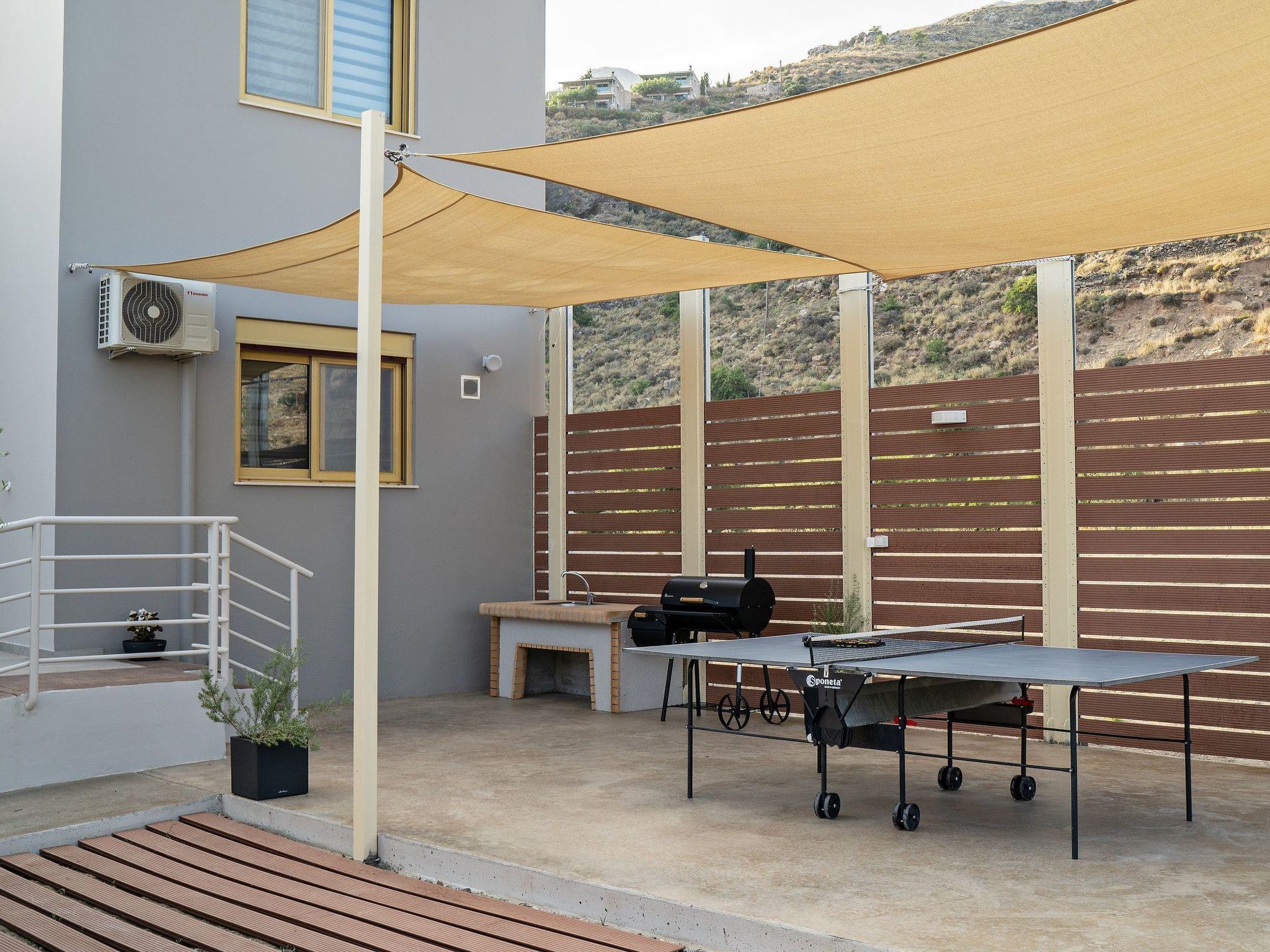Welcome to Plakias sunset villa, located at Mariou village, at the outskirts of the lively town of Plakias in Rethymno ! Unforgettable holidays are guarantee in a beautiful villa, just 4km from the sandy beach of Plakias, restaurants and shops ! This newly built, four bedroom villa blends harmoniously with the beautiful landscape and offer gorgeous views of the Cretan sea, and the mountains. The modern and elegant decoration promises days and nights of relaxation. Plakias sunset villais a two storey house and its interior occupies a space of 200 m2. It accommodates up to 9 guests and is ideal for families and groups of friends who seek relaxation and memorable family moments. Villa features four lovely bedrooms (two double, and two with twin beds), one of which are on the ground floor and the other three on the first floor. Also, all bedrooms are sunny and airy. All bedrooms on the first floor havebalconies with breathtaking sea views. In addition there is a relaxing sitting area (veranda) on this floor where you can enjoy the beautiful sunset of Plakias. On the ground floor, is the fully equipped kitchen & the dining area with direct access to the pool where a beautiful garden with children’s playground, barbeque and table tennis are. A comfortable living room with a fireplace, located on this floor as well. The villa provides also 3 bathrooms (one with Jacuzzi). The design on both floors creates a cozy atmosphere and modern environment. In most areas you can enjoy the fantastic unobstructed view of the area and the sea! The outdoor space of Villa Plakias sunset provides everything you need for a memorable family holiday, including a 30 m2 private swimming pool, equipped with sun beds, umbrellas, where you’ll love spending your time, just enjoying the sun and the summer breeze! Furthermore, there is an outdoor sitting area, where you can treat yourself to nice glass of wine or just prepare a homemade meal in the BBQ facilities for the whole family are also available while your kids play right next to you, at the children’s playground. Spend some quality time with your loved ones and make the most out of your stay! Check out is 11:00 latest and check in is 15:00 earliest.