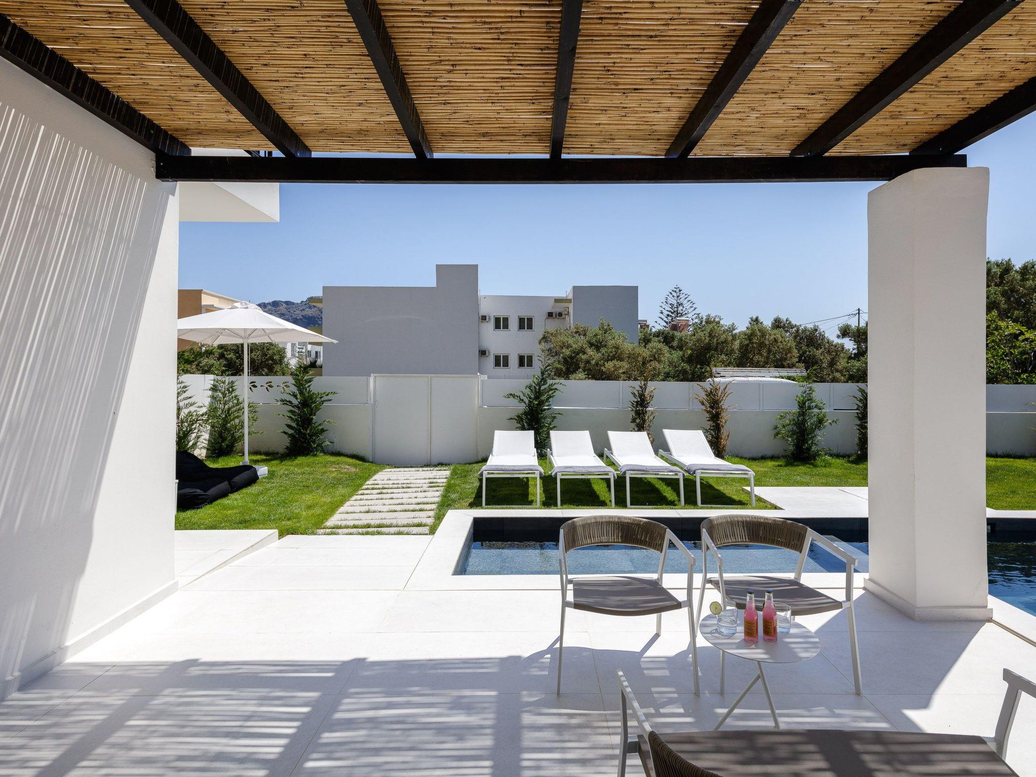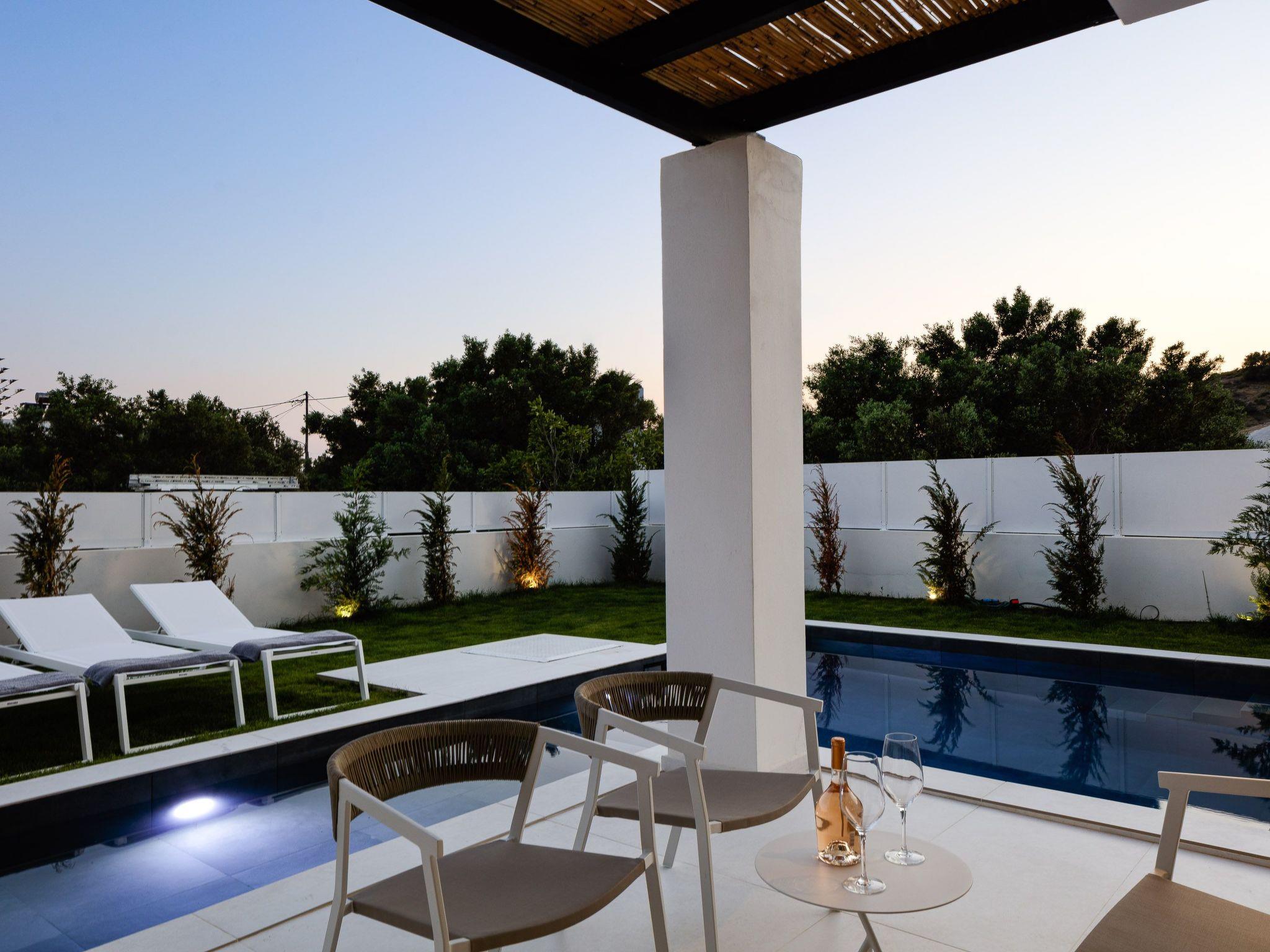 Exterior Area:-First of all, all the exterior areas of the property are private and also provide full privacy - 16m2 swimming pool and depth 1.50- 3 x 1.50 m2 kids pool and depth 0.60m- Fully equipped portable barbecue area with gas- outdoor dining tables under shadows with views to the pool and the surrounding landscape- Different places to relax under a shade or under the sun along with sun beds, umbrellas, dining tables or exterior sofas- Parking spaces