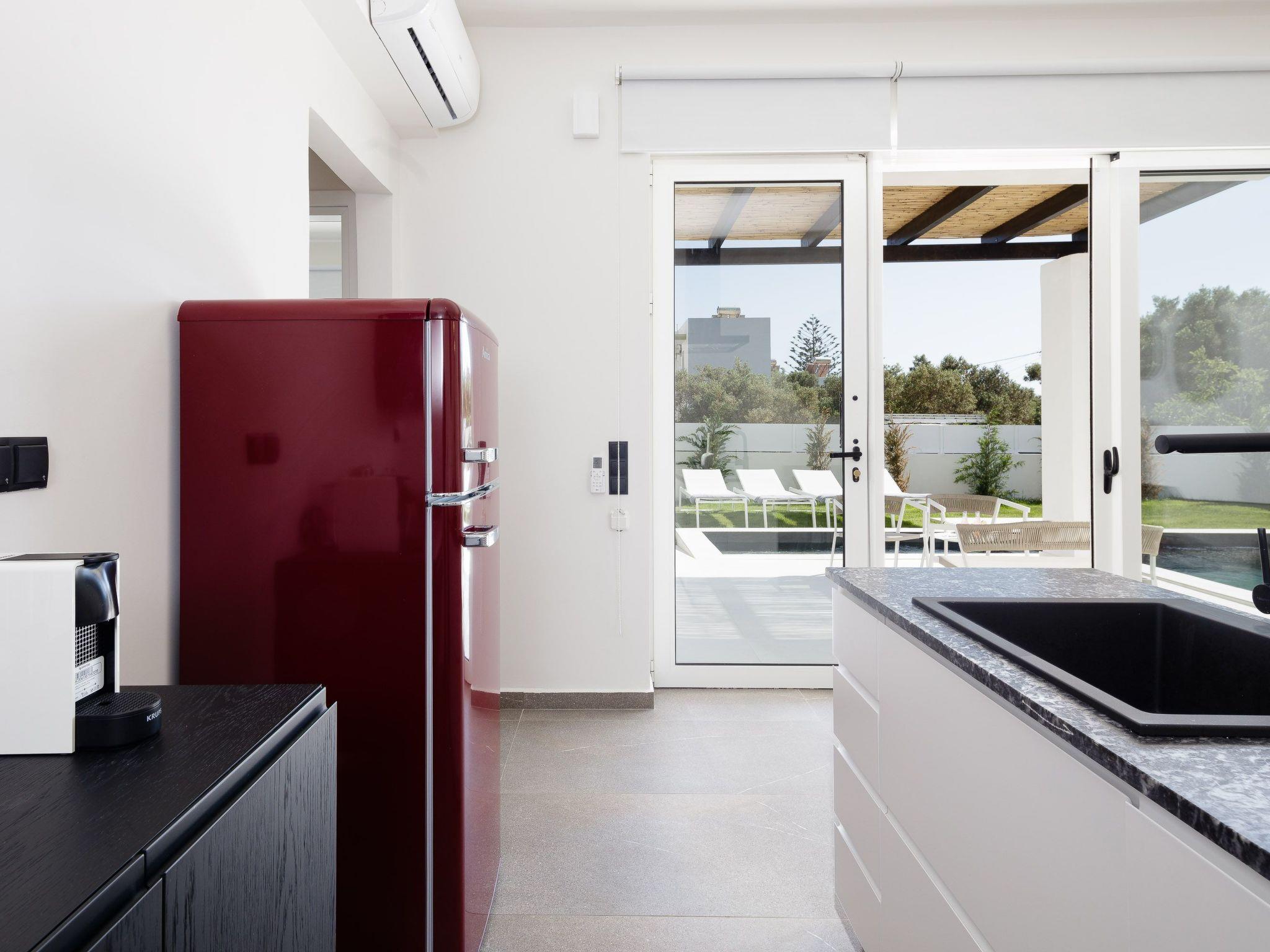 This Crete luxury villa is in the renowned holiday region of Rethymno. The Casa Filo Rosso villa can accommodate 7 adult guests in its light, airy, stylish, and relaxed setting on the ever-popular south coast of this Greek resort island.The living room is elegantly decorated in contemporary tones with ample comfortable seating for guests, a sound system, and board games for entertainment. There is air-conditioning provided throughout the premises. An open-plan kitchen and dining area also boasts a relaxed modern look and comes with all the required conveniences, including a 4-ring stove, an oven, dishwasher, freezer, fridge, toaster, microwave, a filter coffee machine, and a Nespresso.There are 3 guest bedrooms at the Casa Filo Rosso holiday villa, each with air-conditioning and 32-inch smart TVs. The sumptuous master bedroom has a king-size bed, balcony, and full ensuite bathroom, while the 2nd upstairs bedroom has also a double bed, a balcony, and a full ensuite bathroom. The downstairs bedroom has 2 single beds. There is also a WC and shower downstairs for guests. In addition, a fold-out bed is available to accommodate 1 extra guest if required and can be placed in any of the bedrooms.The villa has an exquisite outdoor entertainment area, complete with a private pool, comfortable seating, BBQ, dining facilities, and a children’s play area. Furthermore, the vacation rental offers parking for 3 vehicles. A welcome pack is provided as well as a cleaning service and amenities such as toiletries and towels.Secure your ideal Greek holiday now at Casa Filo Rosso and let its elegance envelope you in comfort and style!