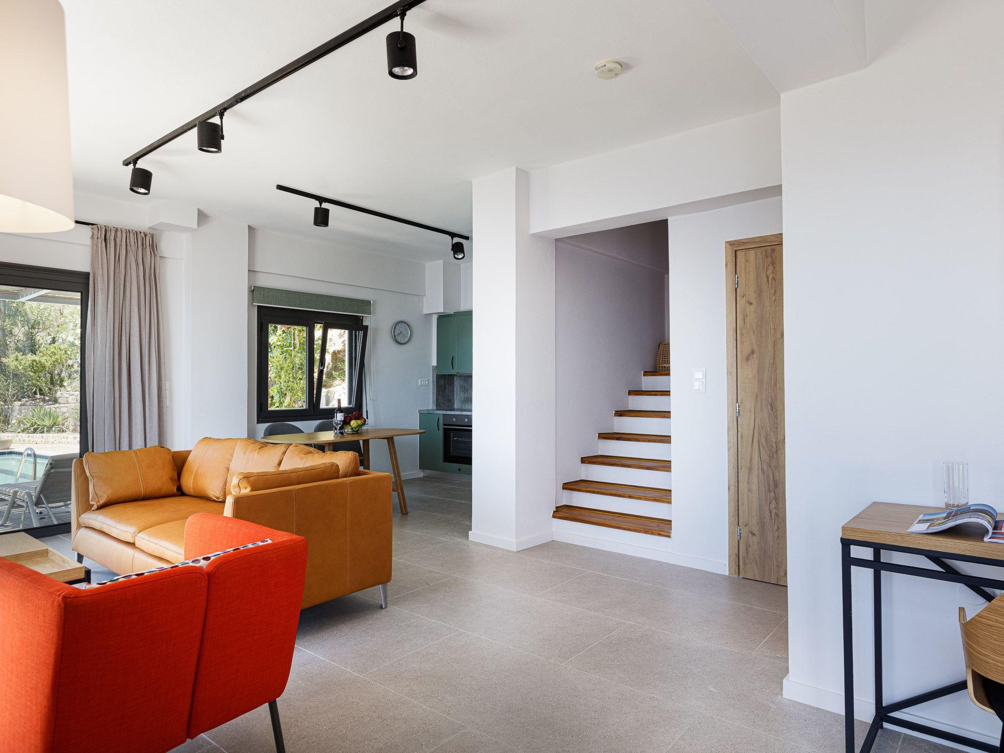 Each villa, spreading over two floors and covering 112 sqms, can comfortably accommodate up to 5 persons. The interior design exudes luxury, with every room facing the sea to ensure that guests can always enjoy the dramatic scenery of South Crete. Tastefully decorated, the villas provide all necessary amenities for a holiday marked by comfort and luxury, including privacy in their sea-view verandas, large balconies, and private swimming pools, all within their own expansive garden-areas.