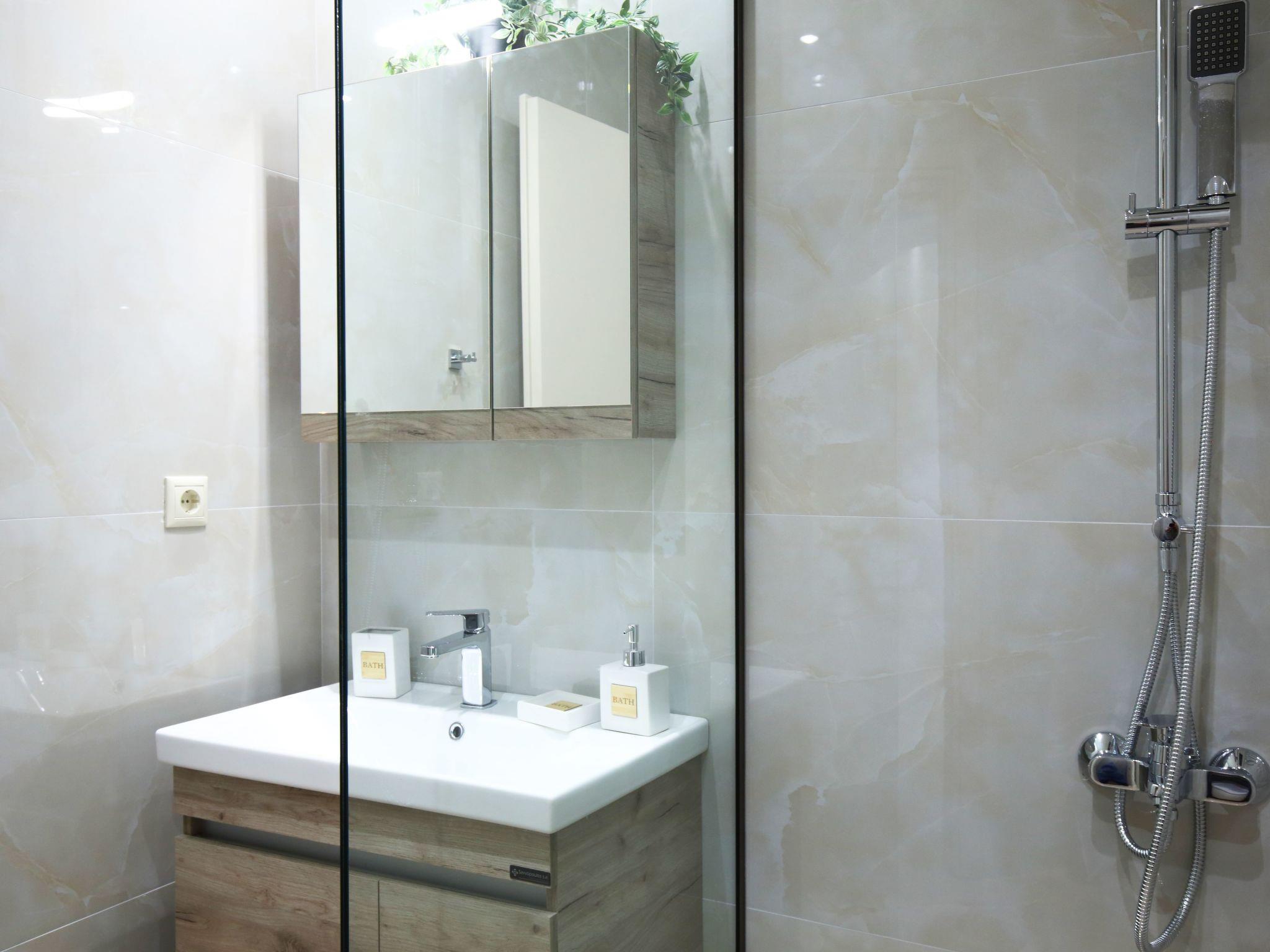 Inside, Villa Thanasis unfolds in a warmly inviting interior, where every detail has been carefully curated for your comfort. The heart of the villa features a spacious living room with a stunning stone-built fireplace, creating a cozy ambiance for relaxation and social gatherings. Adjacent to the living room, the open plan kitchen comes fully equipped with everything needed for culinary explorations. An additional convenience is provided by a bathroom with a shower on this level, ensuring all your needs are met with grace and style.