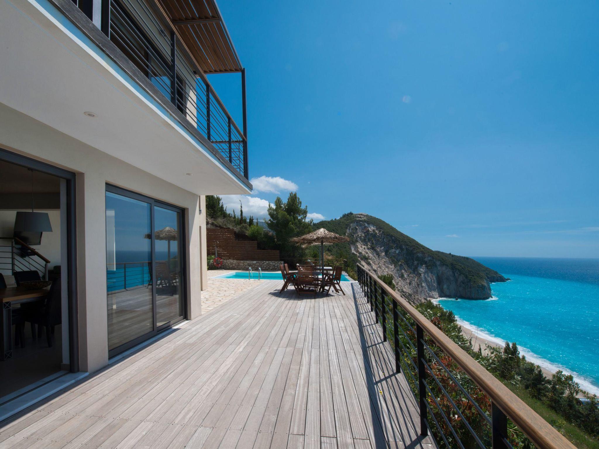 It's the only property above Milos Beach, one of the most beautiful beaches of Greece. Enjoy your privacy there even on crowded August days.This modern built villa offers total privacy, luxury and relaxation in one of the most secret and beautiful beaches of Greece. Inside benefits from: The ground floor you have the fascinating living room that offers beautiful sea views from every corner, due to wall sized glass sliding doors.The room is elegantly furnished with comfortable sofas from where you can enjoy the beauty that surrounds you or just watch your favorite TV programs. A dining area is set on the other side of the room with a modern 7 seat dining table. An open-plan kitchen is perfectly integrated in the living room . The kitchen is fully equipped with brand new appliances so you’ll enjoy preparing your favorite dishes with a view.A spacious twin bedroom is located on the ground floor. It is fitted with two single beds, has large wardrobes and glass sliding doors which drive to the terrace and let the light invade the room. There is an en-suite bathroom with Jacuzzi column.Going a few stairs up, next to main entrance, you have the second bedroom, fitted with a double bed, large wardrobes and en-suite bathroom with Jacuzzi bath. Also with sliding glass doors and a big balcony which faces the fantastic beach and the sea below.The third bedroom has a king size bed and is located on first floor, has large wardrobe, a lounge area fitted with two armchairs and a coffee table placed near the glass door that opens to a lovely terrace from where you can admire an amazing sea view. This bedroom also has an en-suite bathroom , fitted with Jacuzzi bath and high quality accessories.Outside benefits from:A west facing terrace which is accessible from the living room and one bedroom. The terrace is furnished with comfortable rattan sofa, armchairs, a 8 seat dining table and sun lounges where you can really enjoy your holiday and the best Mediterranean Sunsets.The 9 x 6 cutting edge pool is right in front of the terrace and is also surrounded by a thick layer of green grass.Changeovers on Sunday or Saturday (in principal).If bookings allow it, we can be flexibleFlights to our local airport Preveza are available from many European countries including UK, Holland, Germany, Austria, Switzerland and more. From Preveza airport you can either take a bus, taxi or rent a car to Lefkada. ATHENS TO LEFKADA by CAR is approximately 385 Km. You can reach Lefkada by car, via the bridge that connects Lefkada with the mainland . By BUS they are frequent KTEL bus routes to Lefkada from Athens, Thessalonica, Patras, and other major Greek cities. From Athens, bus service is daily and travel time is 4/5 hours. From Thessalonica, bus service is 2 times the week and travel time is 5 hours. There are daily flights from Athens International Airport, to Aktio Preveza Airport and also from Corfu Airport.We are happy to prearrange a taxi transfer for you from Preveza airport to the villa and give any advice on travel.All services, air conditioning, towels, linen, electricity, water, final cleaning are included in the price. No extra costOur concierge can meet you at Lefkas town or at Agios Nikitas village and escort you to the villa and help with your luggage. Luggage storage is not a problem.The following description is a first draft, which is still awaiting revision. Please contact our Customer Service if it contains any gaps.Beachfront modern villas with private pool and breathtaking viewThe beach villas are situated on Lefkas island on the West coast of the island. Just a fifteen minute drive from Lefkas town and two minutes from the pretty seaside village of Agios Nikitas.Ground floor you have the fascinating living room that offers beautiful sea views from every corner, due to wall sized glass sliding doors.The living area is elegantly furnished with comfortable sofas from where you can enjoy the beauty that surrounds you or just watch your favorite TV programs. A dining area is set on the other side of the room with a modern 7 seat dining table. An open-plan kitchen is perfectly integrated in the living room . The kitchen is fully equipped with brand new appliances: oven, microwave, vitro ceramic, espresso and regular coffee machine, dishwasher, refrigerator, freezer, toaster, water kettle and all kitchen utensils are provided so you’ll enjoy preparing your favorite dishes with a view.One double bedroom is located on the ground floor. It is fitted with two single beds, has large wardrobes and glass sliding doors which drive to the terrace and let the light invade the room. There is an en-suite bathroom with Jacuzzi column.Going a few stairs up, next to main entrance, you have the second bedroom, fitted with a double bed, large wardrobes and en-suite bathroom with Jacuzzi. Also with sliding glass doors and a big balcony which face the fantastic beach and the sea below.Third bedroom has a king size bed and is located on first floor, has large wardrobe, a lounge area fitted with two armchairs and a coffee table placed near the glass door that opens to a lovely terrace from where you can admire an amazing sea view. This bedroom also has an en-suite bathroom, fitted with Jacuzzi and high quality accessories.A west facing terrace is accessible from the living room and one bedroom and is furnished with comfortable rattan sofa, armchairs, a 8 – seat dining table and sun lounges where you can really enjoy your holiday. You can enjoy there the best Mediterranean Sunsets. The 9 x 6 cut edge pool is right in front of the terrace and is also surrounded by a thick layer of green grass.The beach villas are the only villas on Milos Beach. A stroll down your own private steps and you are on the beautiful sandy beach and the waters edge.The villa is approximately a 30 minute drive for Preveza airport, and 1 hour 30 minutes from the port of Igoumenitsa.LEFKAS nestles away in the center of the main Ionian Islands and is the only 