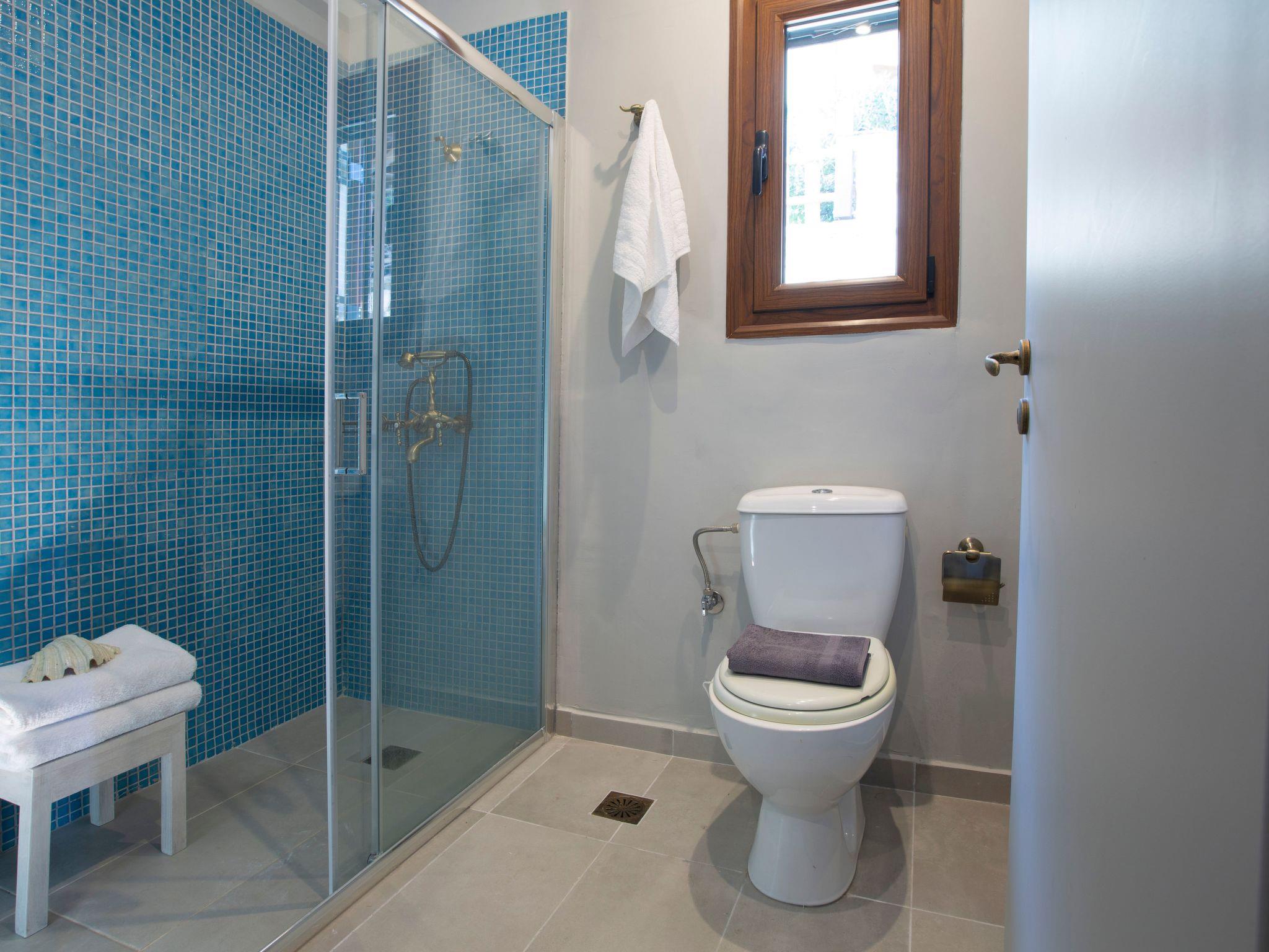 Villa Artemis is thoughtfully divided into a main house and an adjacent guesthouse, catering to privacy and space for all guests. The main house features an open plan kitchen and living area, bathed in natural light from the wide sliding glass doors that offer easy access to the swimming pool area and showcase the villa's remarkable sea views. Comfort is paramount, with two bedrooms upstairs equipped with in-room showers, en-suite WCs, and large windows that frame the unparalleled beauty of Lefkada’s seascape. The guesthouse provides additional privacy with its two single beds, which can be transformed into a king-size bed upon request, accompanied by an en-suite shower room and WC, ensuring every guest enjoys a personalized and restful stay.