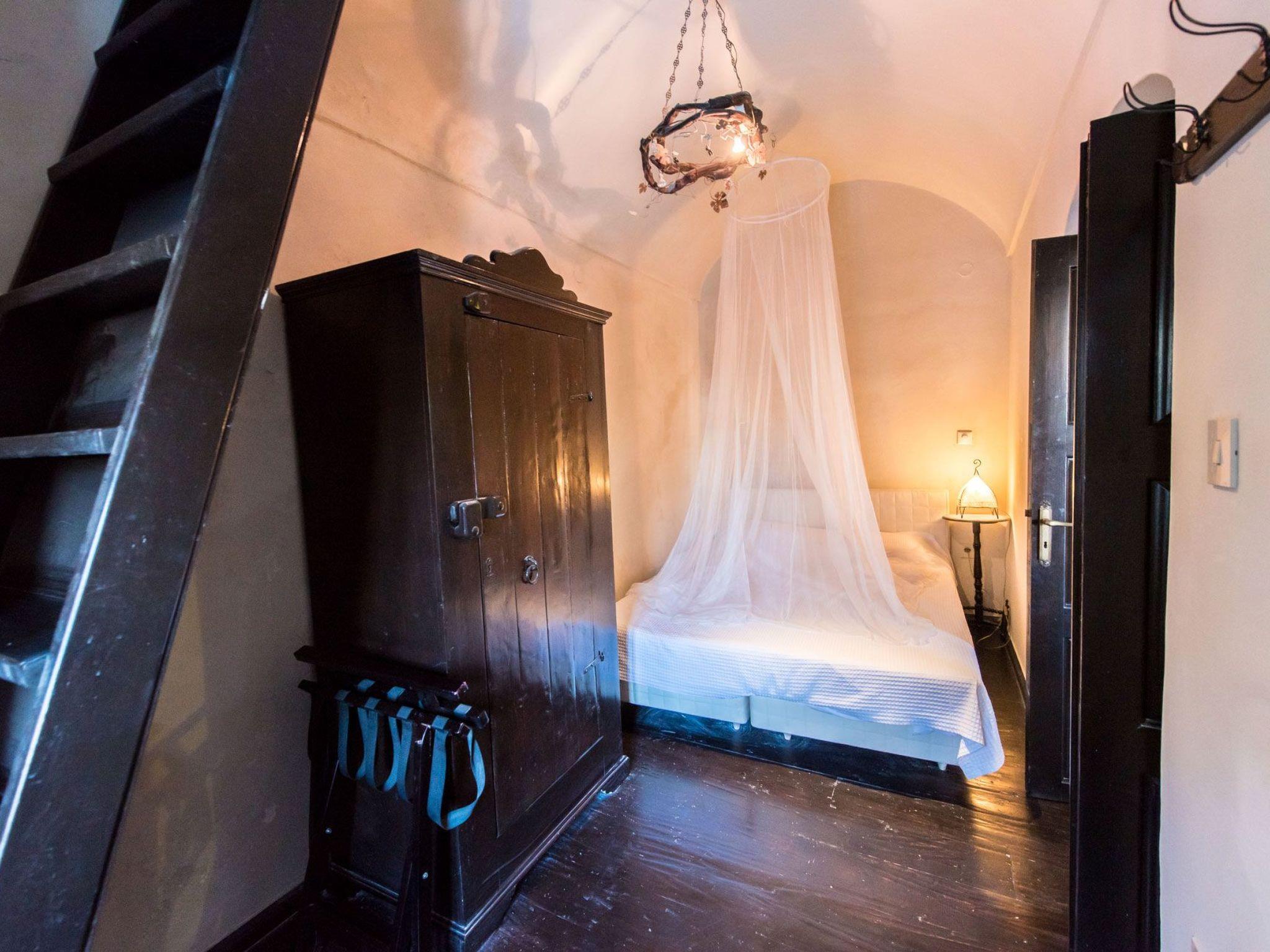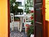 The manor house was renovated with modern amenities, preserving its character and style, and is therefore very popular among many photographers. You go through the double doors in the courtyard into the spacious living and dining room with magnificent vaulted ceilings and original wooden floors. It provides a sofa suite, satellite TV and a dining table with chairs. The two bedrooms, each with a double bed, are accessed from the central living room. The shared bathroom consists of a shower, washbasin and toilet. The kitchen with a stone archway is fully-equipped with Smeg kitchen appliances. Free wireless Internet access is available.