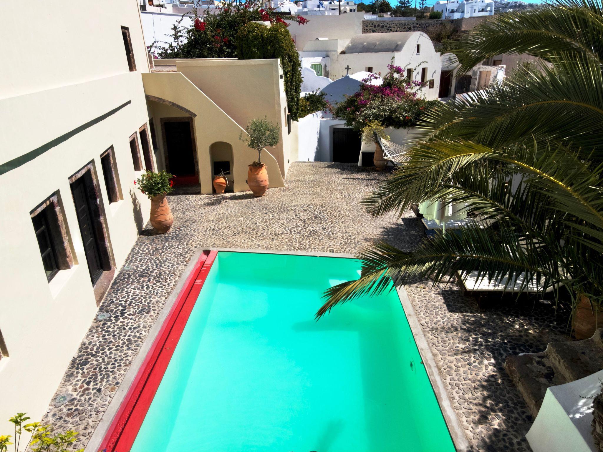The accommodation enjoys an excellent location in the idyllic Megalochori on the island of Santorini in the Aegean. The traditional village is not very well known yet among tourists and so is a hidden gem on the island.