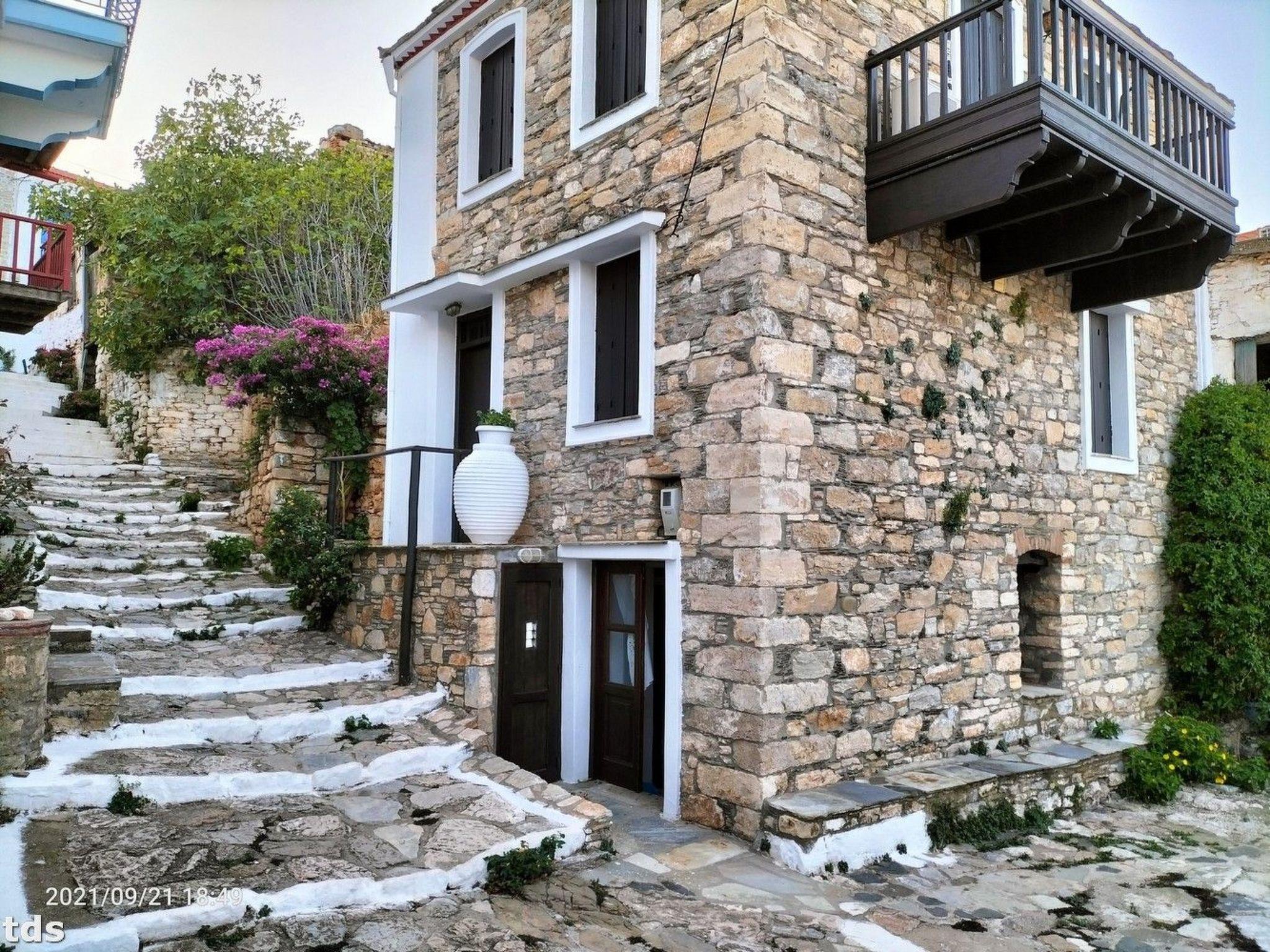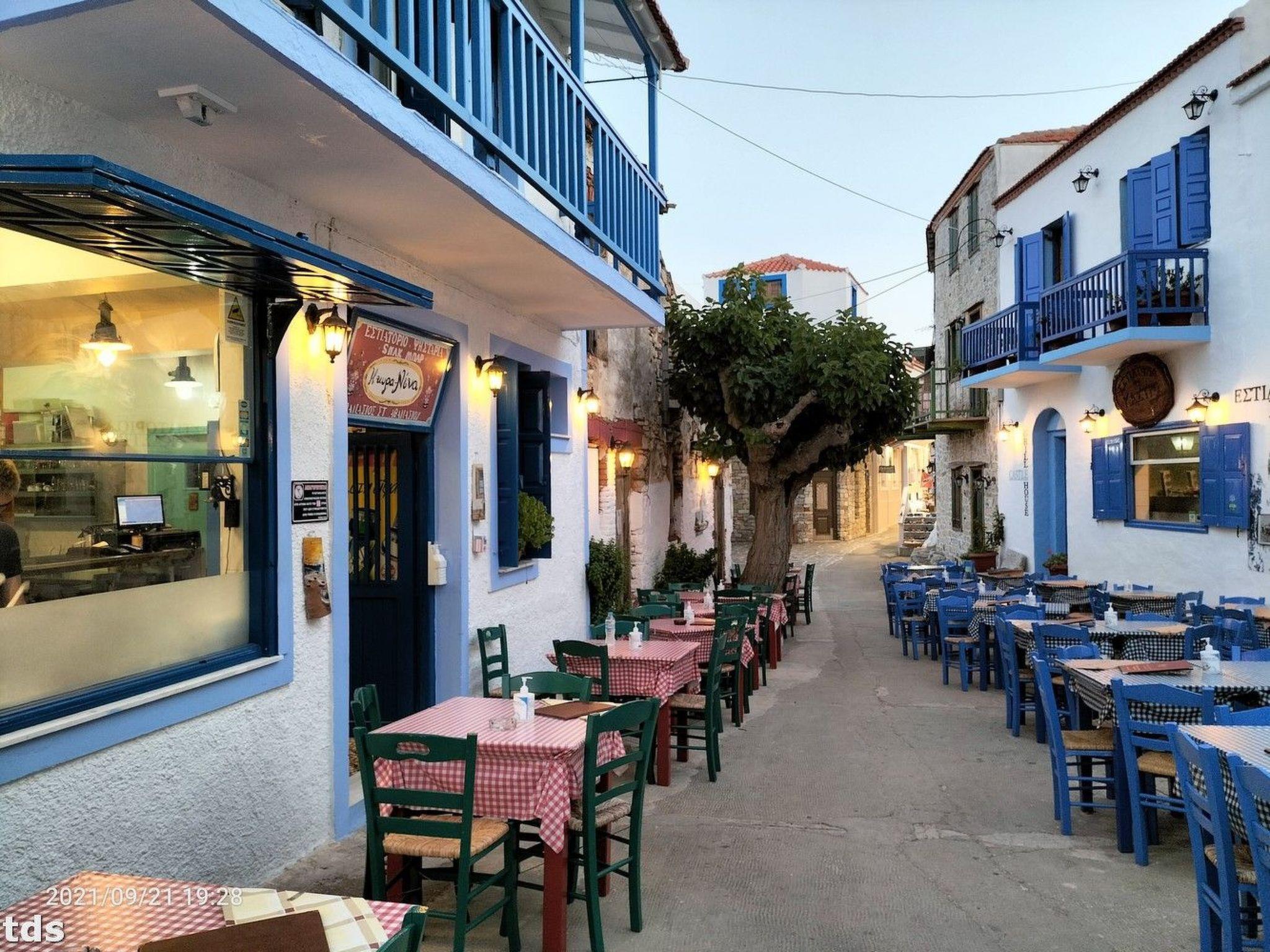 Outside your charming accommodation, the lively hustle and bustle of Alonnisos old town awaits you. Even though the flat does not have its own outdoor area, the surrounding alley invites you to enjoy the authentic island ambience. A short walk will take you to the nearby amenities and to a public car park, only about 200 metres away, which can be used free of charge - a practical solution for guests who want to explore the surrounding beaches and the sea by car.