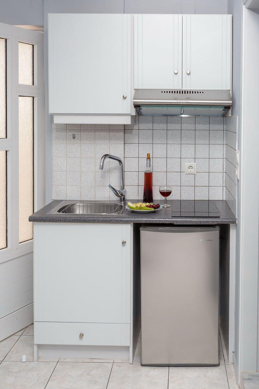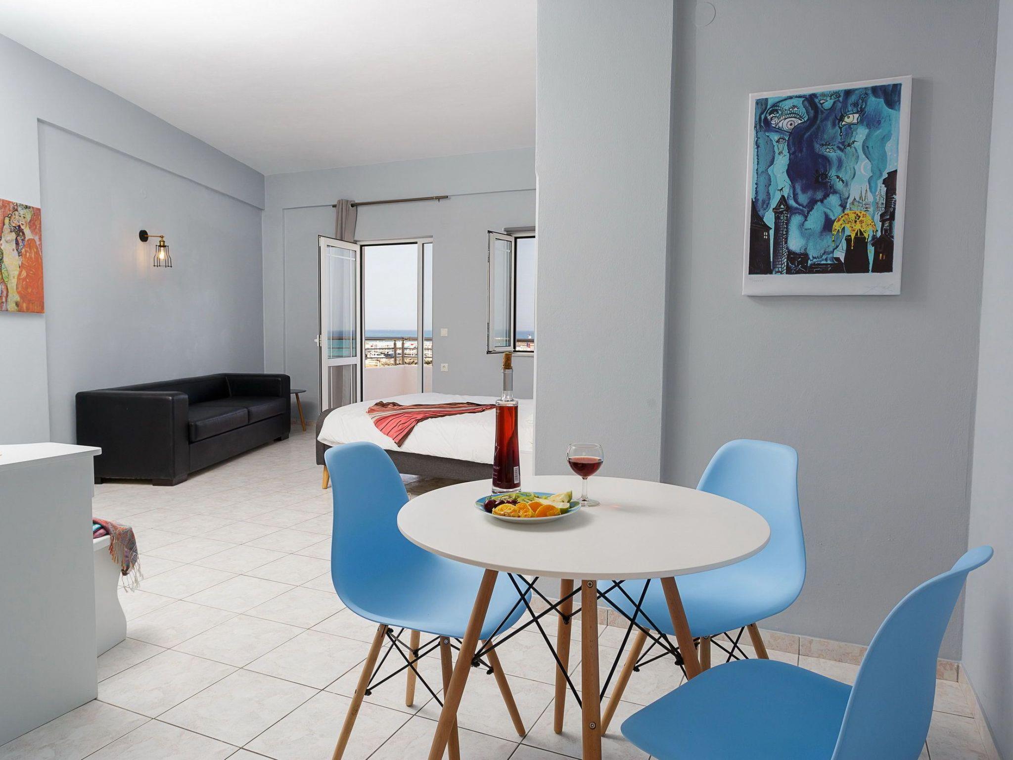 Sunset & sea view studio-1 was renovated on 2021 and consists of an open plan bedroom with kitchenette and a bathroom with shower. The studio offers its own balcony with marvelous views of the sea and the sunset. The studio offers a double bed (160*200) . The kitchenette is equipped with pots, pans, plates etc. There are also a mini fridge and a stove.