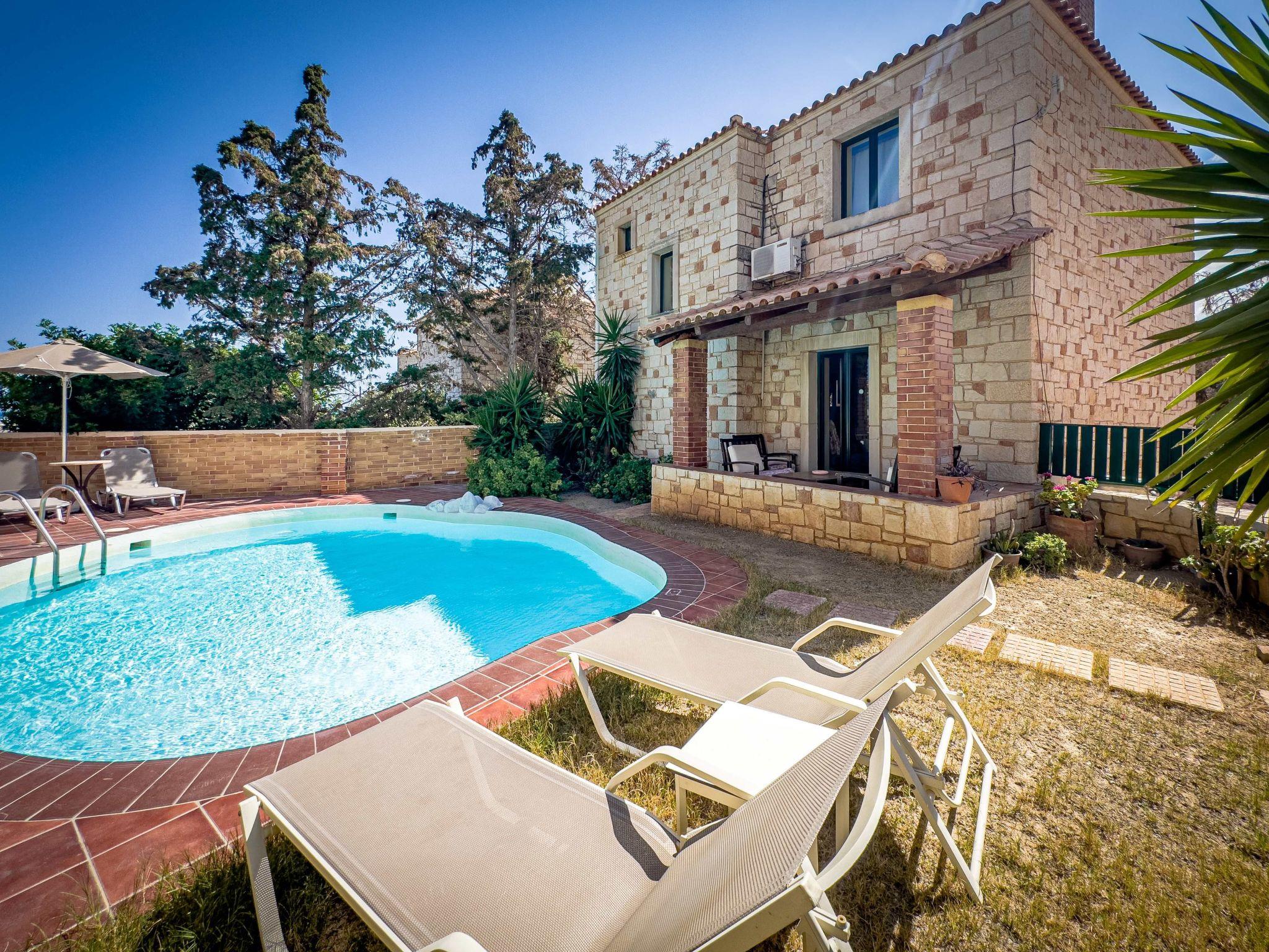 Villa Sagini can accommodate up to 6 pax. It consists of 2 bedrooms with a double bed, 1 bedroom with two twin beds, and a bathroom at the first floor. At the ground floor lies the kitchen with open plan living room, WC and the fireplace.
