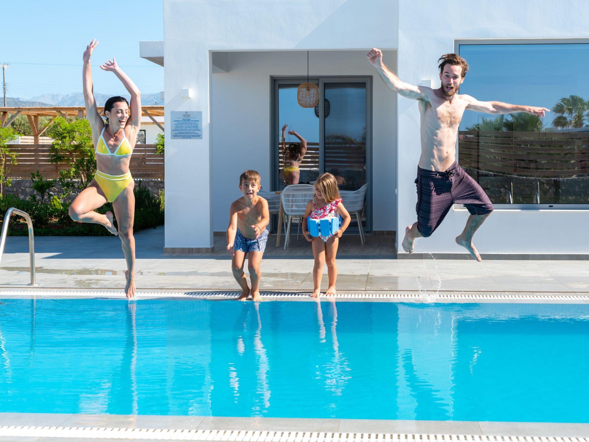 All our villas include a private garden with a swimming pool, parking space, and free WiFi connection.