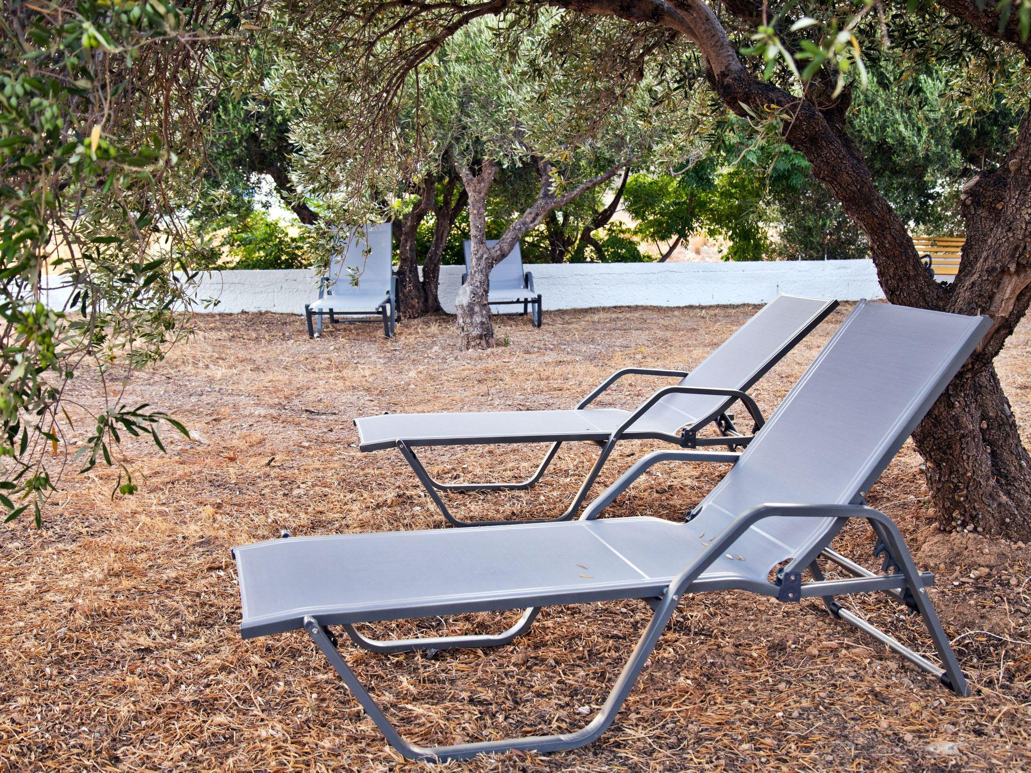 The exterior of New Aurora Apts Studios encapsulates the essence of Cretan paradise with beautifully manicured gardens filled with local flora, olives, and a variety of trees. Guests can find solace under the shade of olive trees, enjoy a meal at the barbecue area, or let their children play at the playground. Offering more than just scenery, the complex includes an outdoor shower, hammocks for a leisurely rest, garden sunbeds for basking in the sun, and a fenced compound ensuring a safe play area for children. With added conveniences like free Wi-Fi and private parking, the outdoor spaces cater to all needs for rest and recreation.
