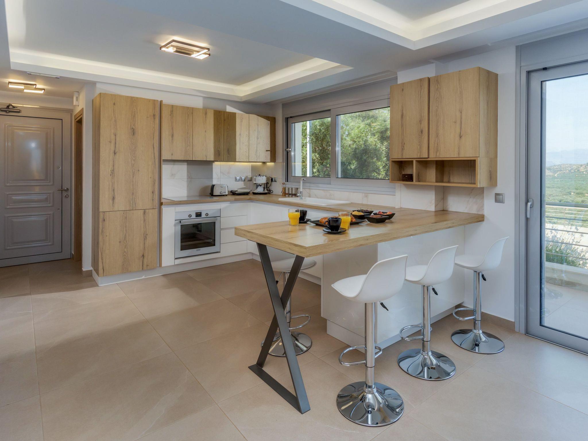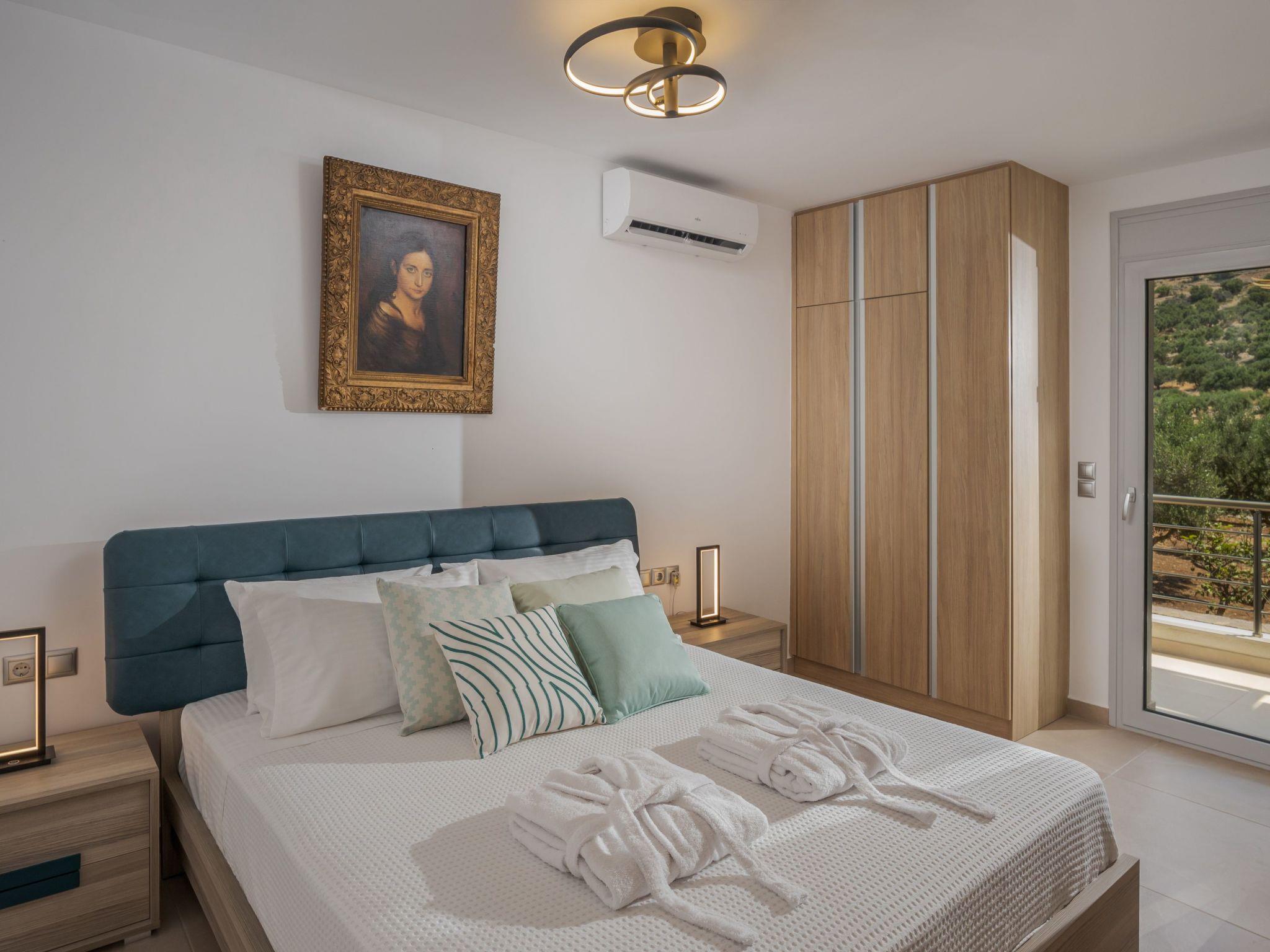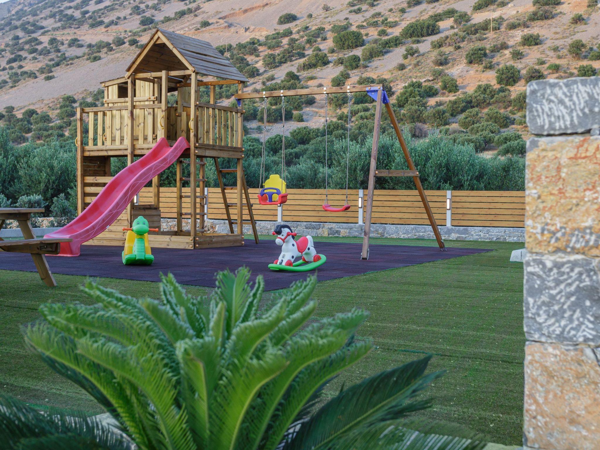 The outdoor entertainment area is extremely stylish, with neutral tones and contemporary furnishings that add sophistication and elegance to the gorgeous surroundings. Guests can enjoy the large swimming pool and relax on the poolside, enjoying the extraordinary views as well as the use of the outdoor shower. Additionally, the villa offers an 8-seater dining table and excellent BBQ facilities. There is also a wonderful children’s play area for kids to enjoy. Villa of the Hill has private parking for 2 vehicles. Secure your dream vacation now at Villa of the Hill in Crete and let its sophistication and charm wash over you in a wave of Greek holiday bliss!
