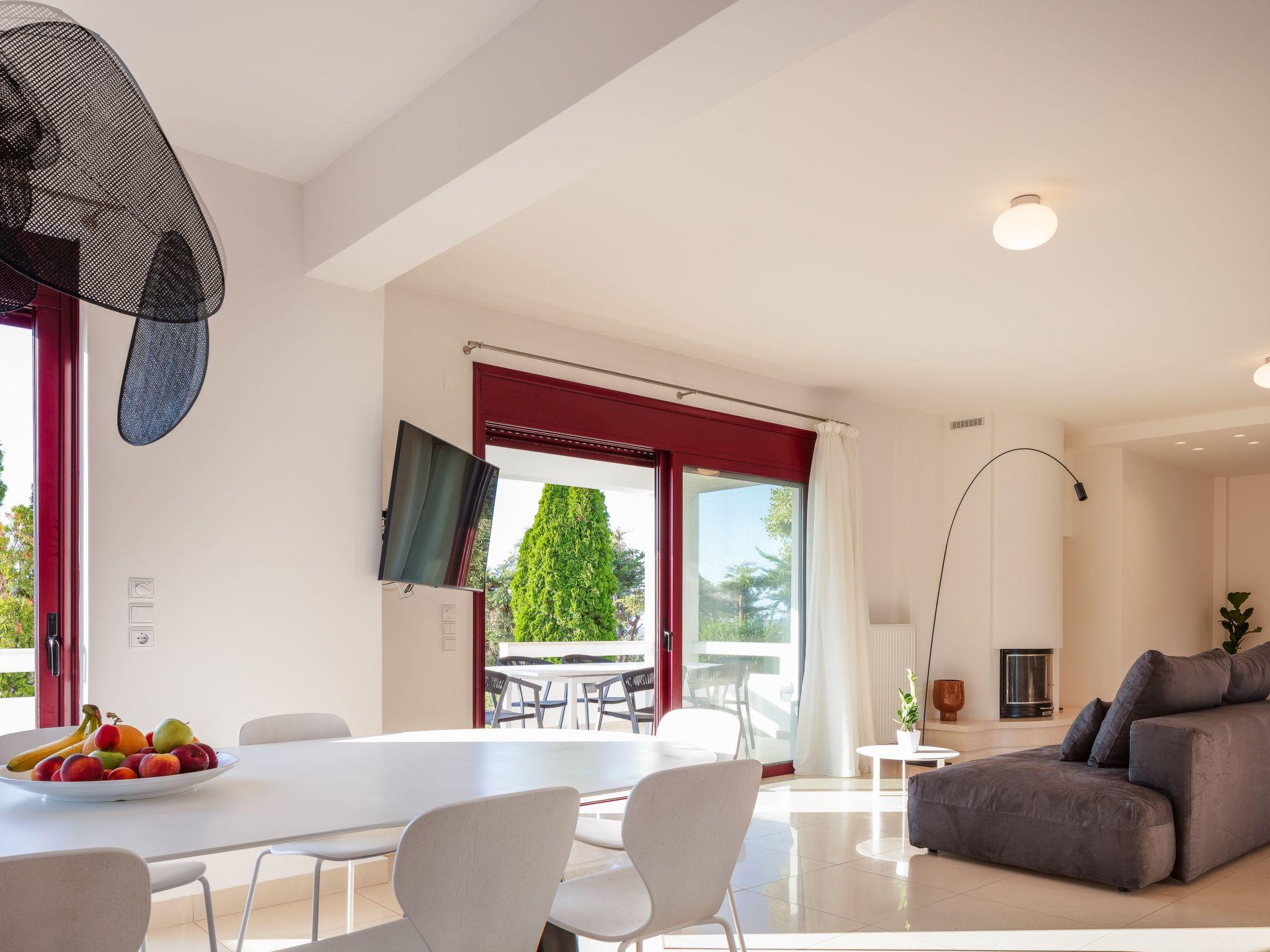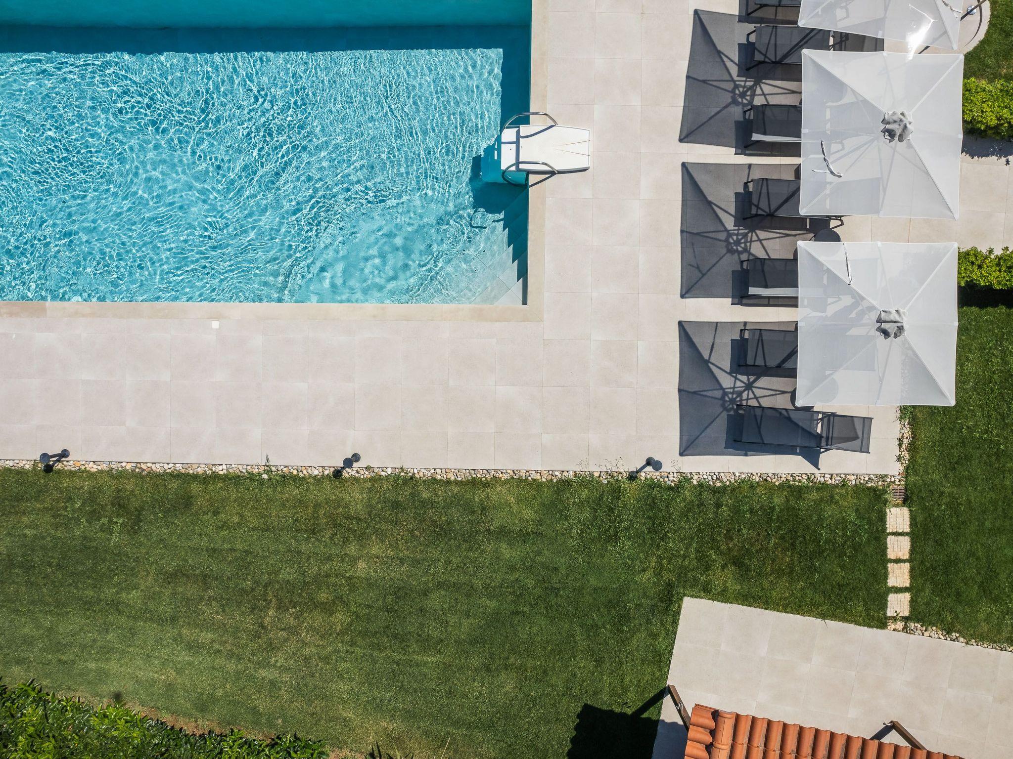 Fully equipped barbecue area which also contains a wood oven and a sink. The barbecue area includes a dinning table. A unique area of the house for relaxing under sun-umbrellas or for playing with your kids in the grass area. In addition to the pool (can be heated upon request with extra charge)and the barbecue areas which are next to the garden. Sun beds and pool umbrellas are there for your relaxation.
