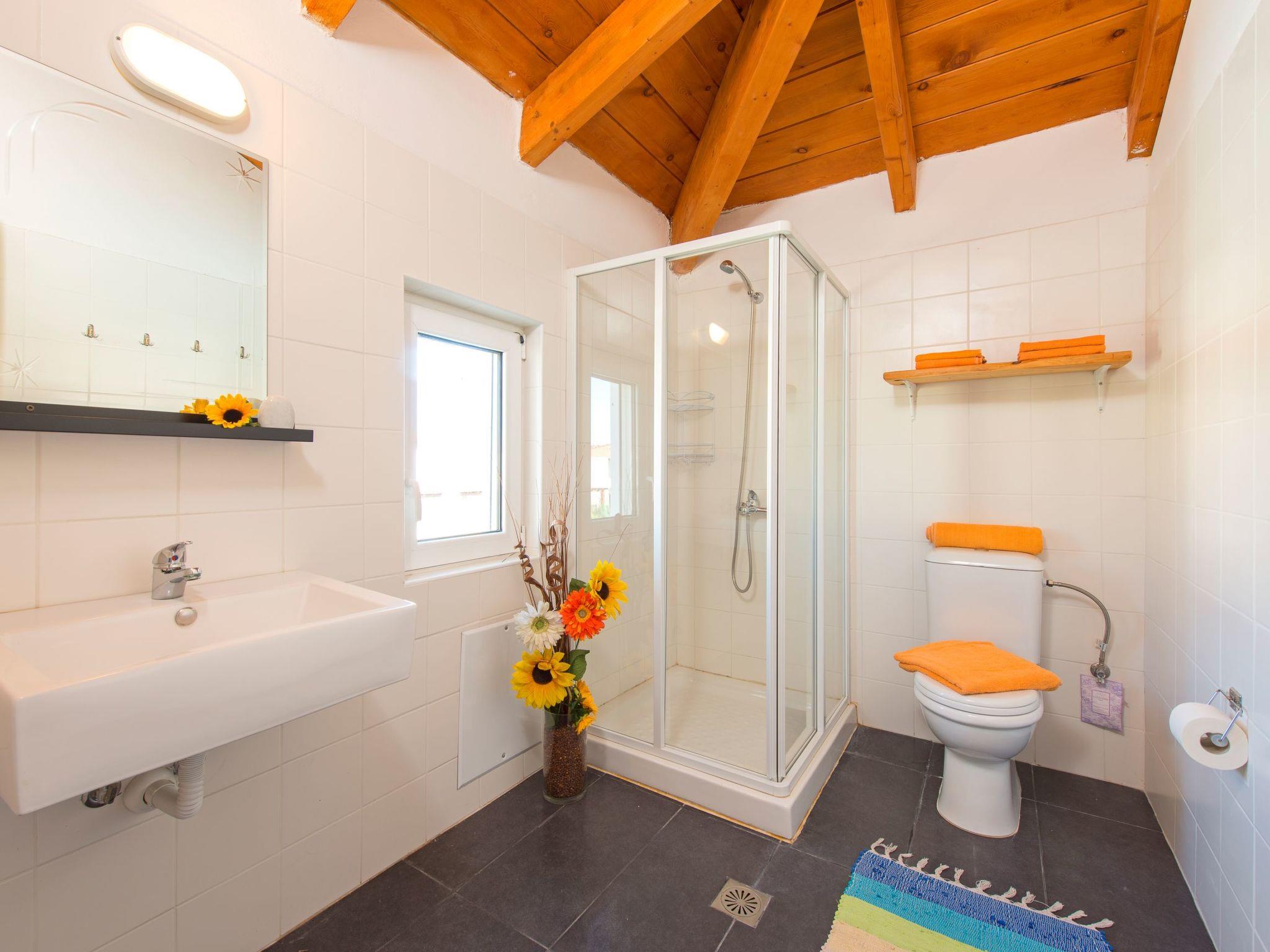 Upstairs there is a spacious bathroom with two double bedrooms and a family room with (double bed and a single bed).