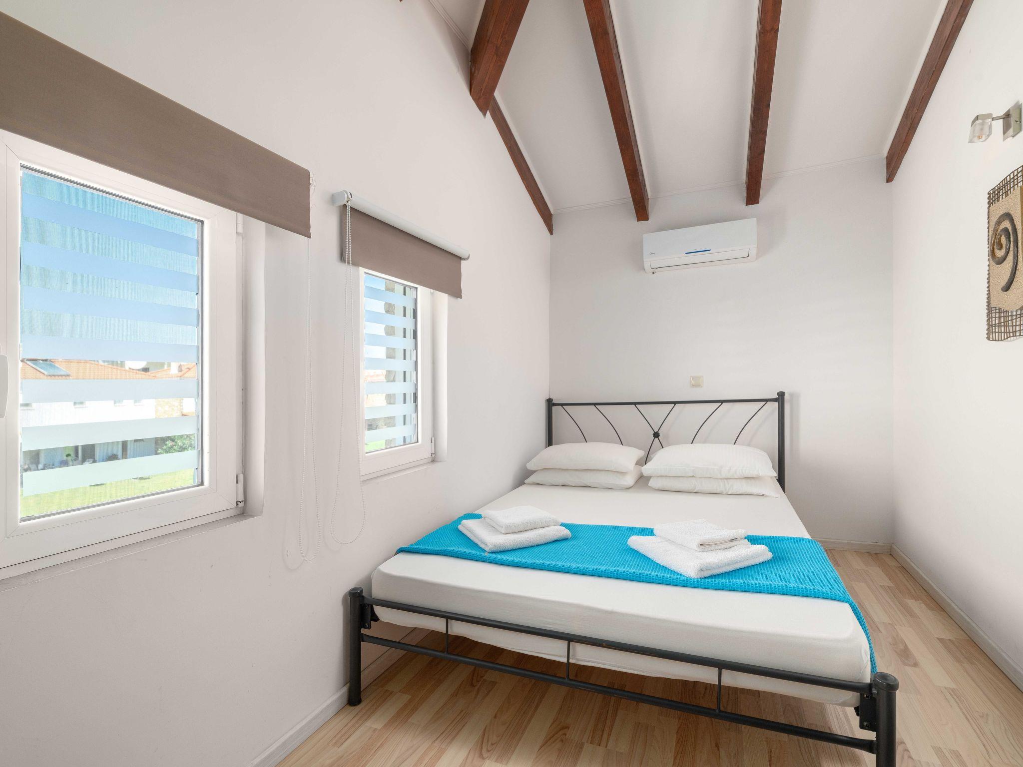 These modern Greek-style house is only 300m from the beach and with a beautiful view of the surrounding mountains. Cozy semi-detached house with modern comforts and a big common swimming pool. Everything you need is on a walking distance!
