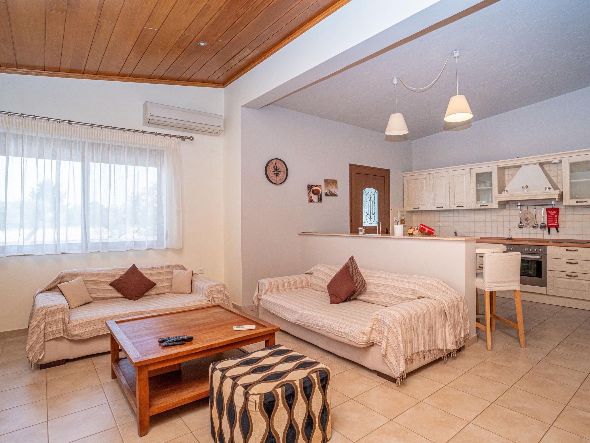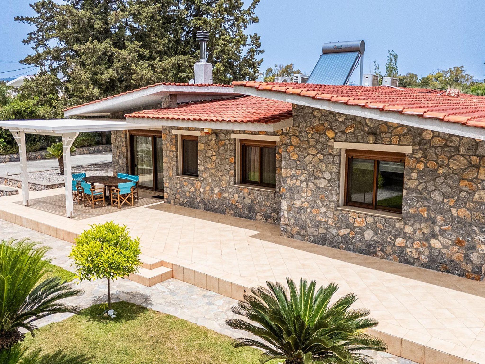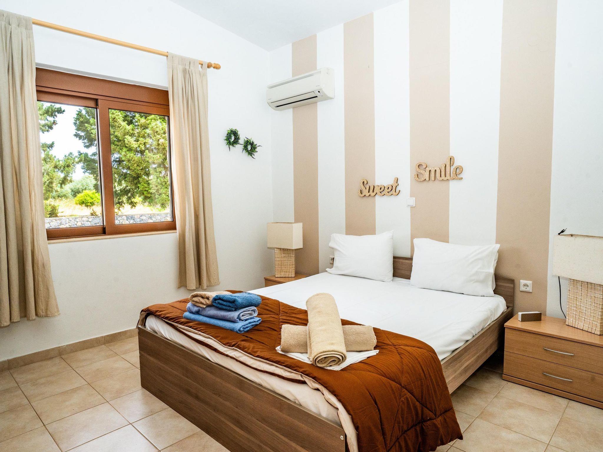 Madia Villa is situated in Kolympia Village and offers a dreamy private swimming pool as well as a relaxing Jacuzzi. Villa is really close to the nearest beach, only a 2 minute drive. The Villa is perfect for up to 6 people and is well designed to offer you a complete relaxation and memorable holidays in Rhodes.Madia villa has 3 modern bedrooms, 2 of them with double beds and 1 of them with single beds. There are 2 bathrooms in the house, each has a shower. There’s an open plan kitchen in warm colors accompanied from the sitting area. The kitchen is fully equipped for any meal preparation. Also, at the same space there’s the wide living room in relaxing tones along with the screen TV. There’s a free Wi-Fi access throughout the property. Outdoors, guests will find their wonderful private swimming pool with its sunbeds as well as a Jacuzzi. Also, there’s a playground for kids to enjoy some carefree moments and be happy. Prepare to relax and clear your mind under the Aegean sun. There are BBQ facilities and a sitting area so as you can enjoy a gathering with your loved ones.