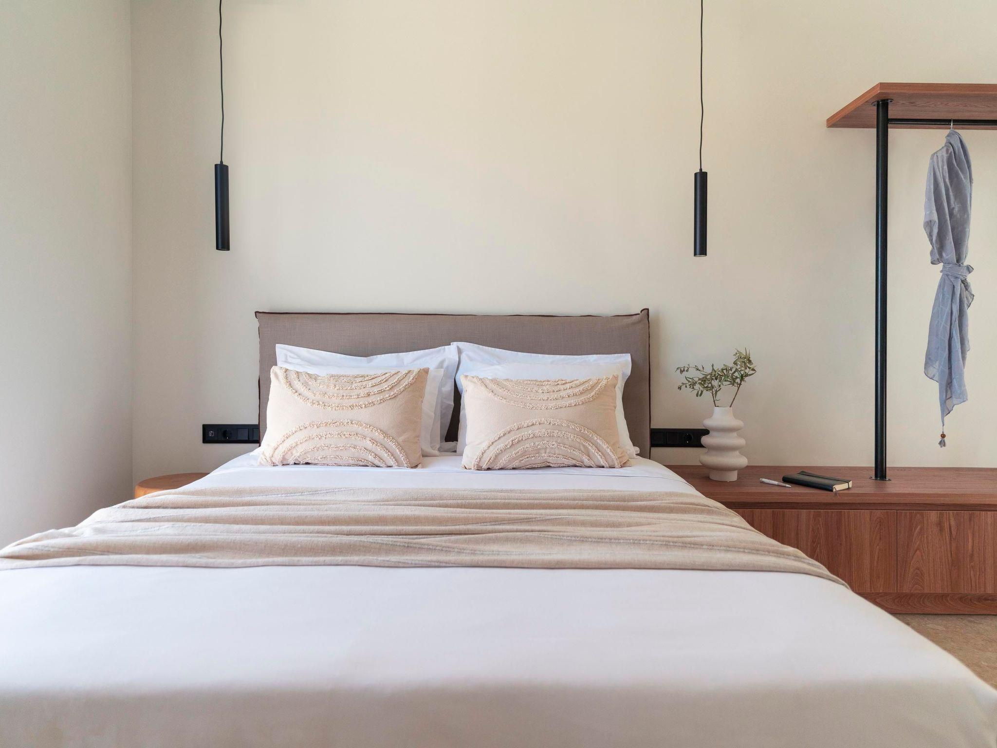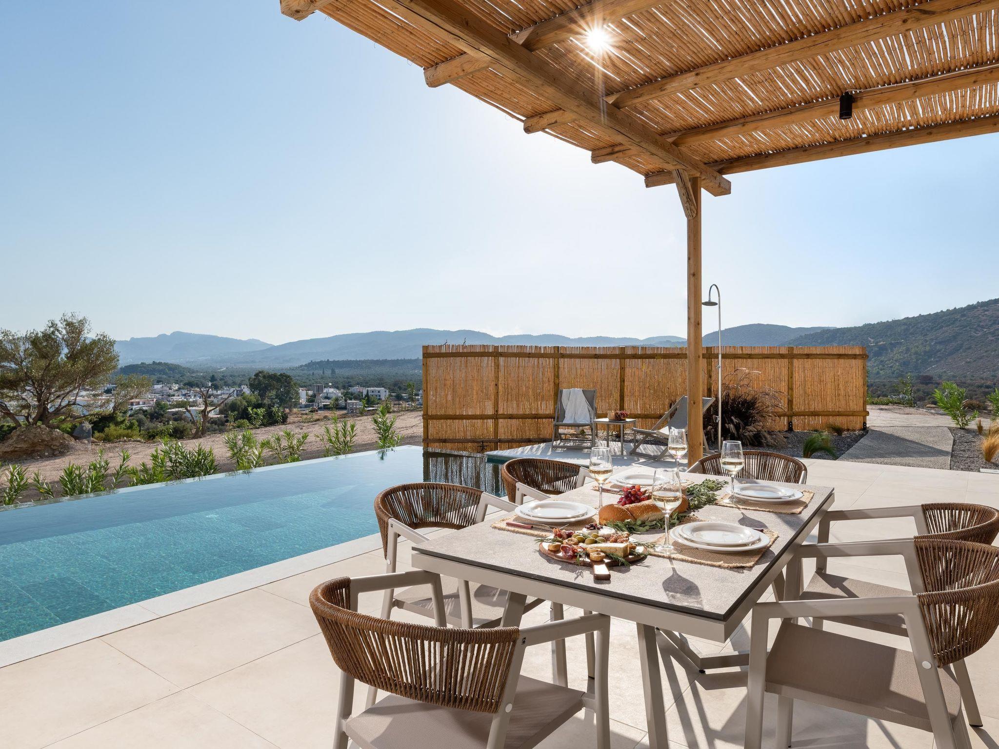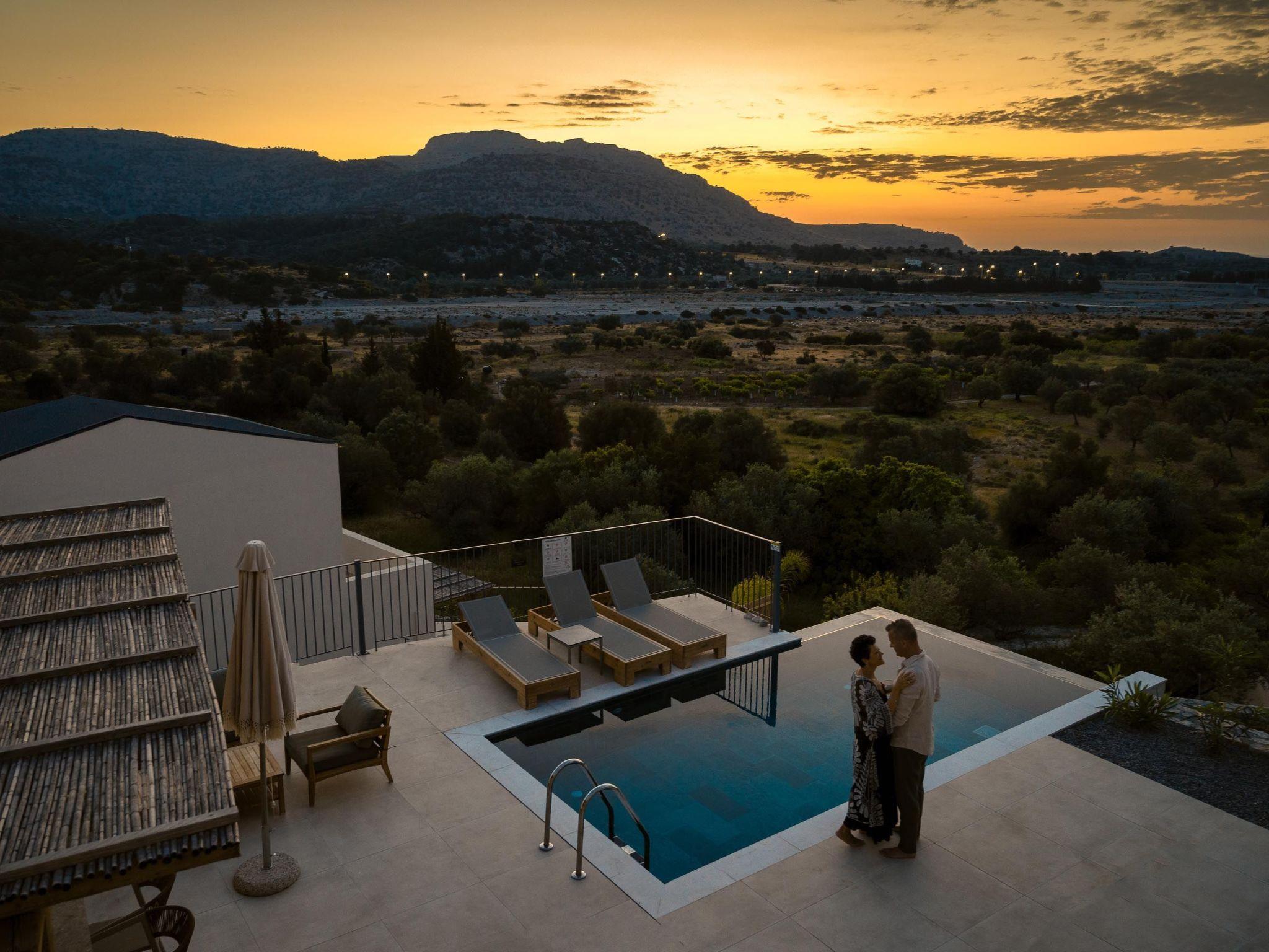 Massari Hills Luxury Living are 15 fantastic brand-new properties designed in unique minimal architecture with unique warm-colored details. They are located in Massari, only a 5-minute drive from Charaki beach. All of the modern villas provide you with all comforts, private swimming pools and patios in a unique design. There is an outdoor sharing gym and each villa offers a BBQ installation. Each property accommodates up to 8 guests.
