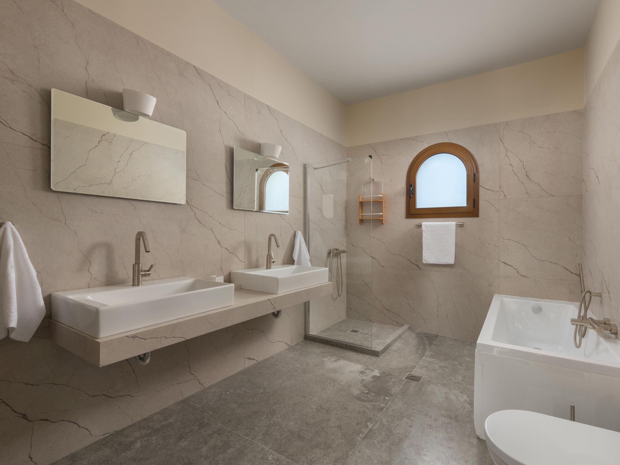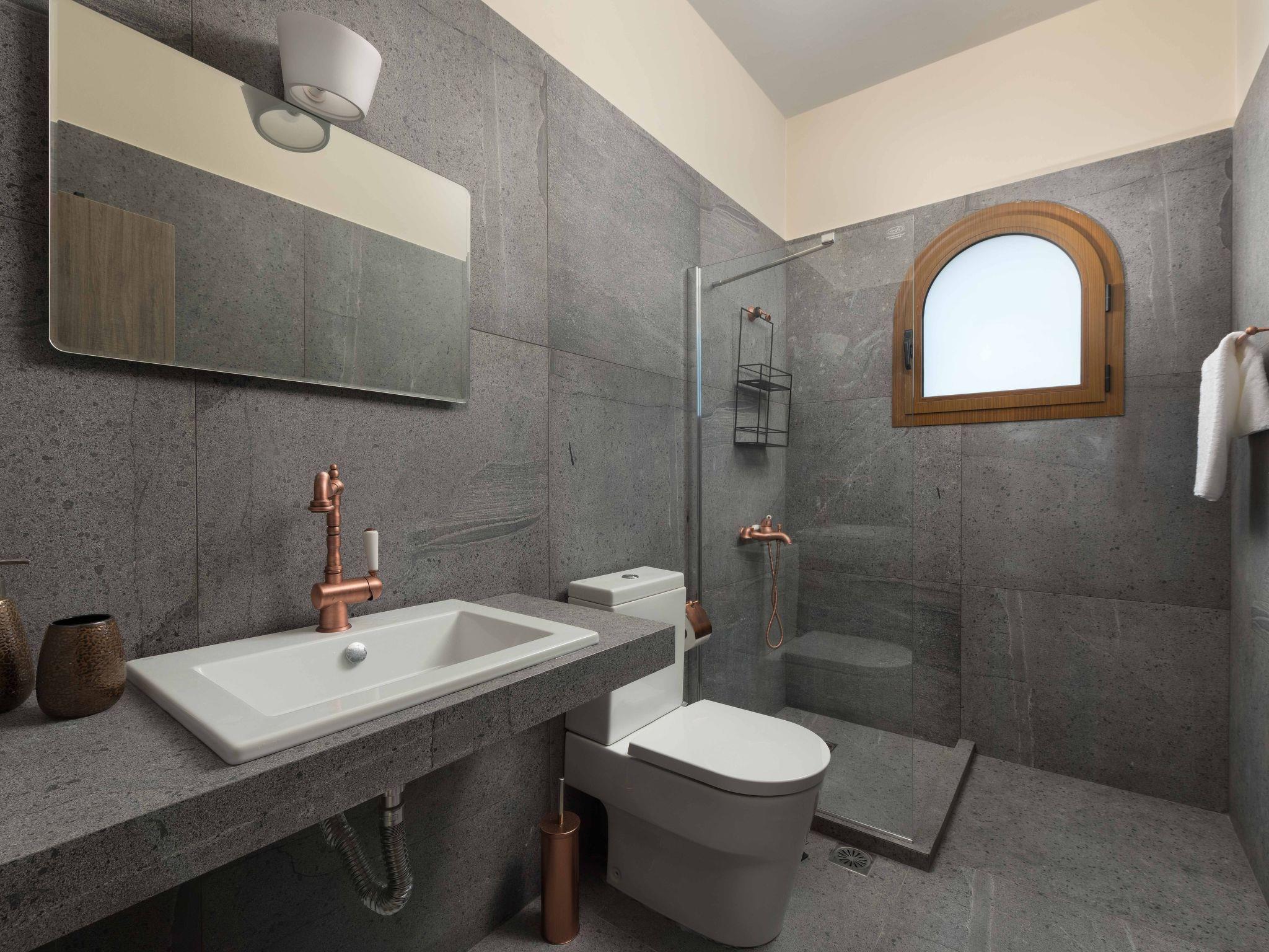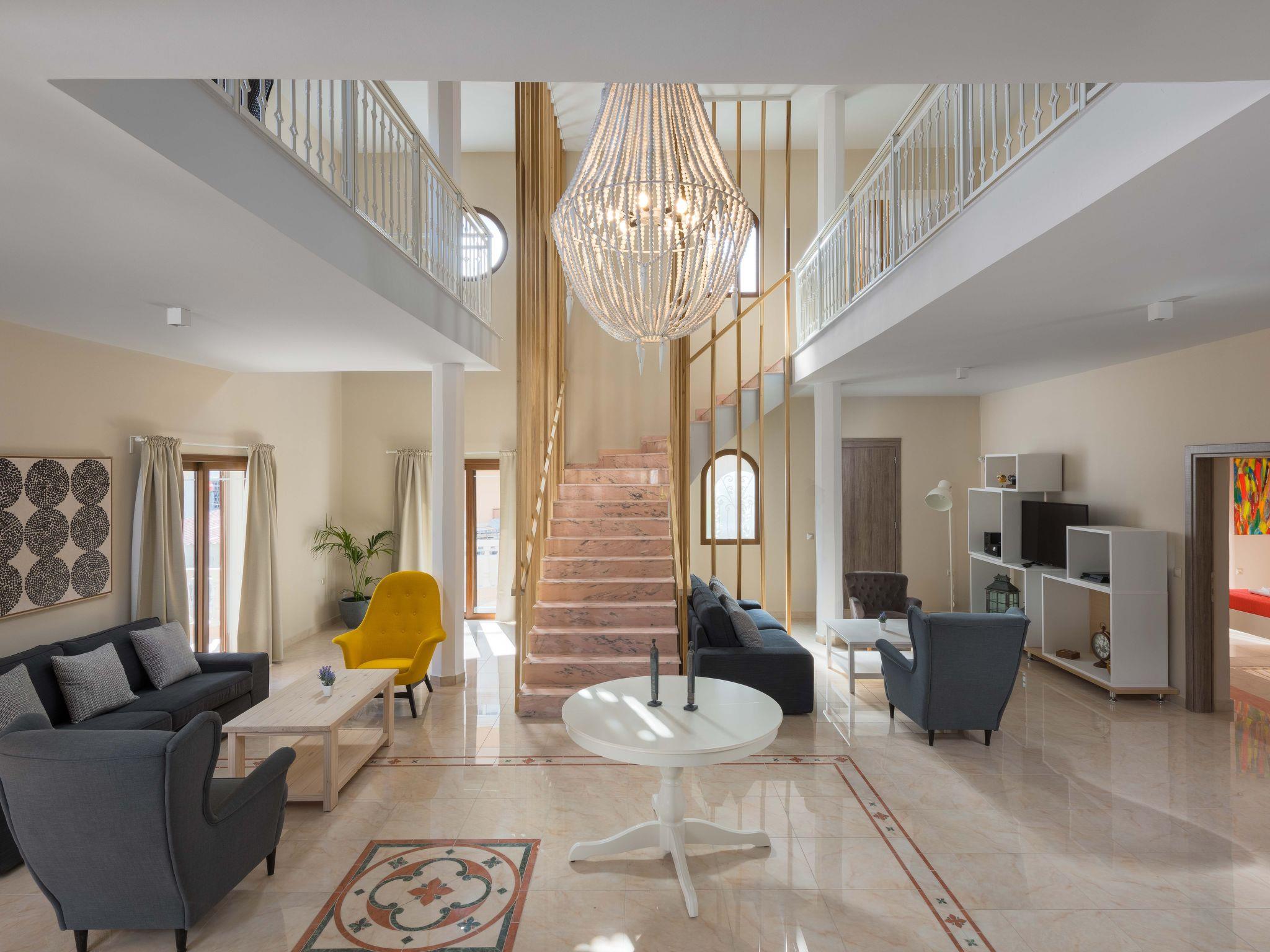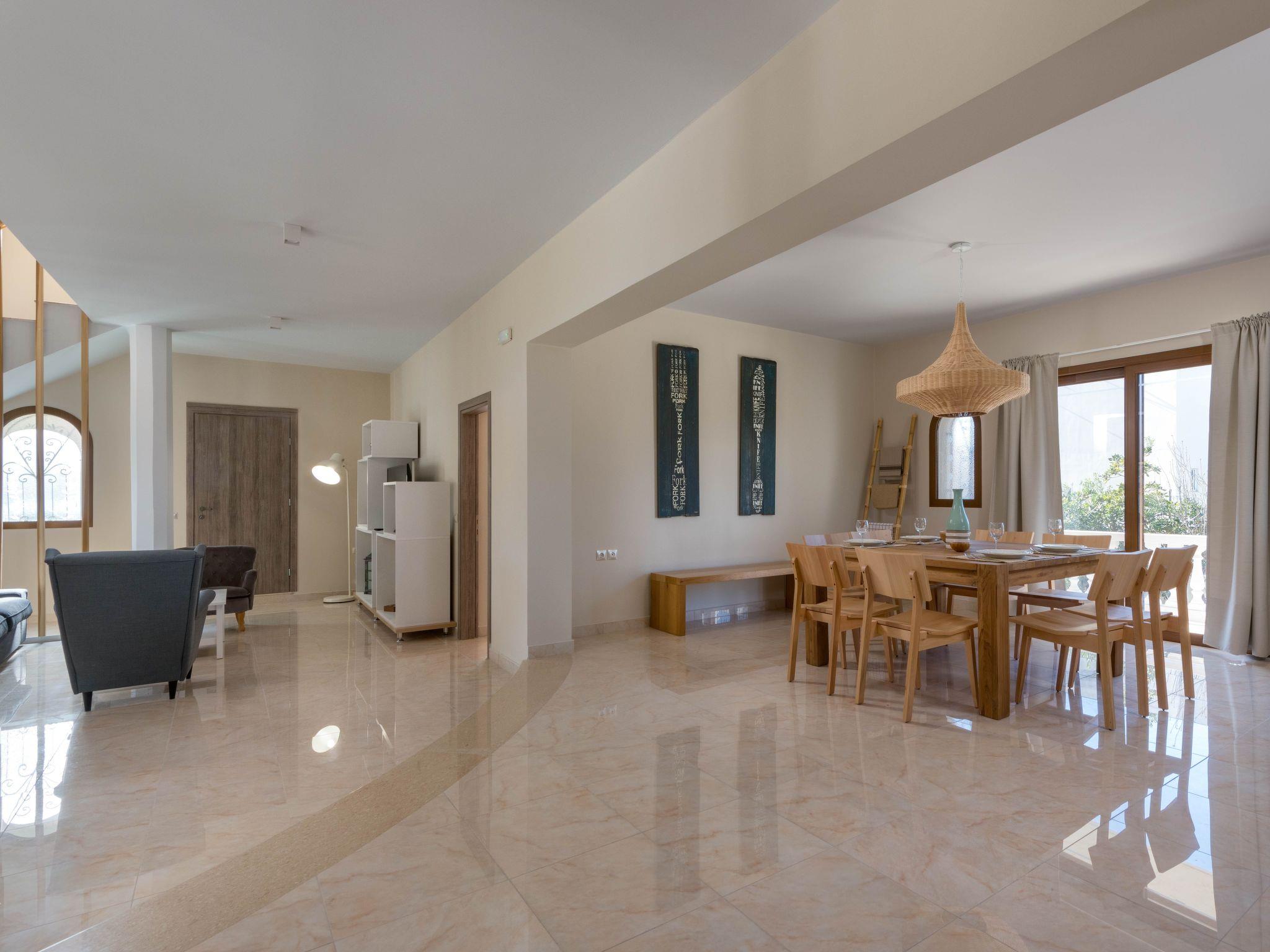 Evelyn Villa is located in the unspoiled east side of Rhodes and offers 2 private swimming pools, a normal and a baby one. The nearest popular beach, Stegna, is only a 10-minute drive away. Evelyn Villa offers a perfect holiday accommodation for up to 12 guests and combines large spaces, elegant design and luxury. The villa is equipped with photovoltaic panels, which provide a renewable and sustainable source of energy. Experience sustainable living in our green villa. Both the interior and exterior spaces are designed to provide guests with everything they need for a great holiday and a memorable stay.