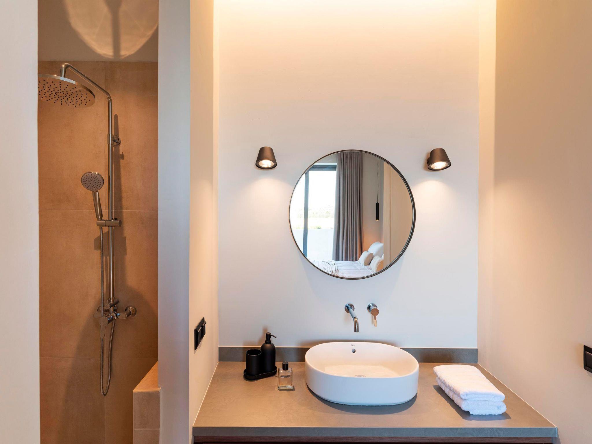 Each incredible villa hosts up to 8 guests. There are 3 fully air-conditioned bedrooms with unique decorations. All of the bedrooms offer ensuite bathrooms with a shower. Also, there is a shared WC. There’s a fully equipped kitchen in warm colors, suitable for any meal preparation accompanied by the seating area and the living room. The living room sofa easily turns into a comfy double sofa bed. There’s a smart TV and free WIFI access throughout the property. Outdoors, there’s a private swimming pool with sunbeds and a seating area where you can relax under the rays of the Aegean sun. You can spend your time by your private swimming pool or enjoy a fresh meal prepared in the BBQ installation. Also, there is a shared outdoor gym, so you can stay fit t throughout your holidays in Rhodes. This amazing property and the beautiful location make the perfect match for a memorable stay and unforgettable holidays in Rhodes!