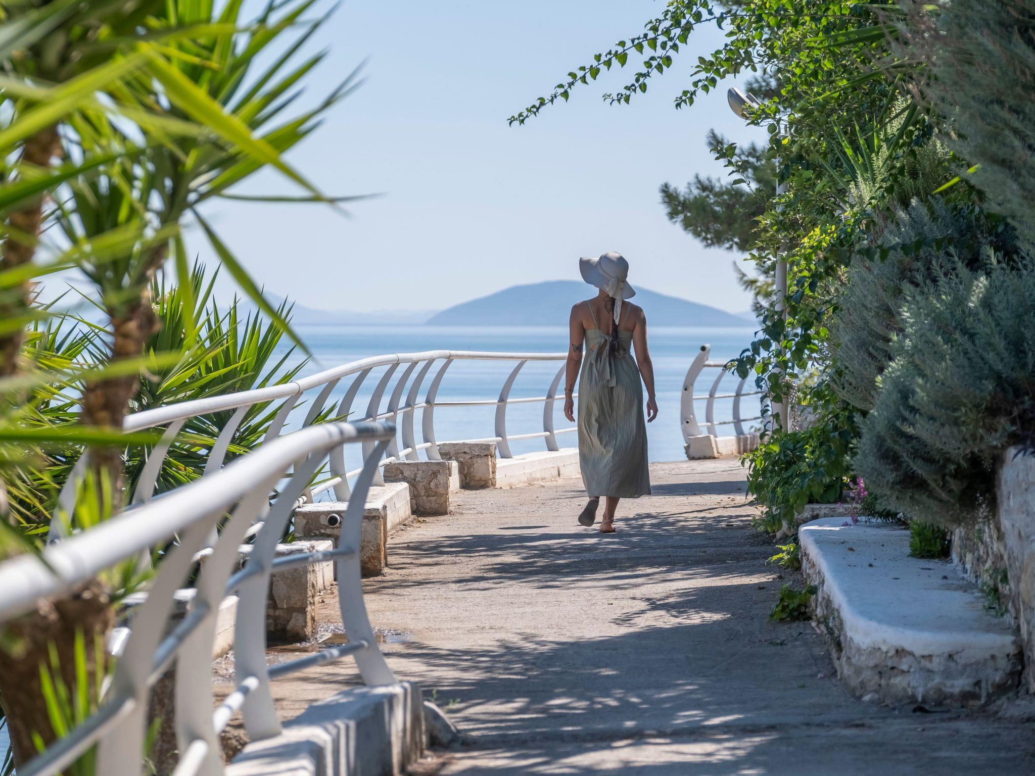 There is a big balcony with dining table and two sun beds. In the garden there is a bbq in common area which you can use free of charge. Our steps drive direct to small beach front of the apartment. Also following a path front of the apartment in walking distance you will drive in village center where you will find two public beaches with sun beds, restaurants, coffee shops and shops.
