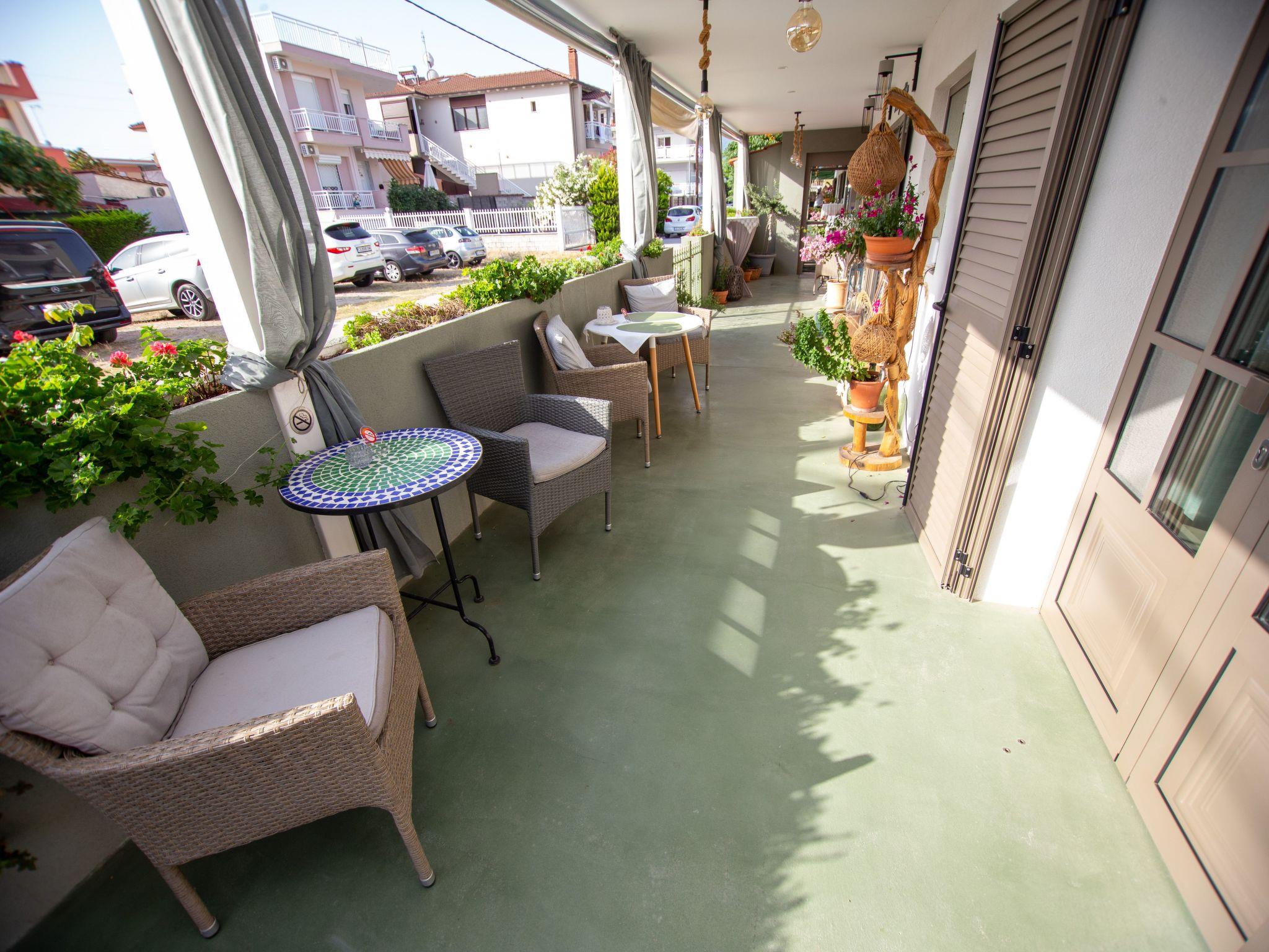 Our flat house is located in the centre of Nea Vrasna. Very quiet and yet very central. The 8 km long sandy beach is only 4 - 5 minutes walk (230m.). All shopping facilities as well as bars and the many taverns are within walking distance. The bakery is only 100 metres from the house. Thessaloniki airport is 90 km away. You can reach the airport in one hour via the new A2 motorway.