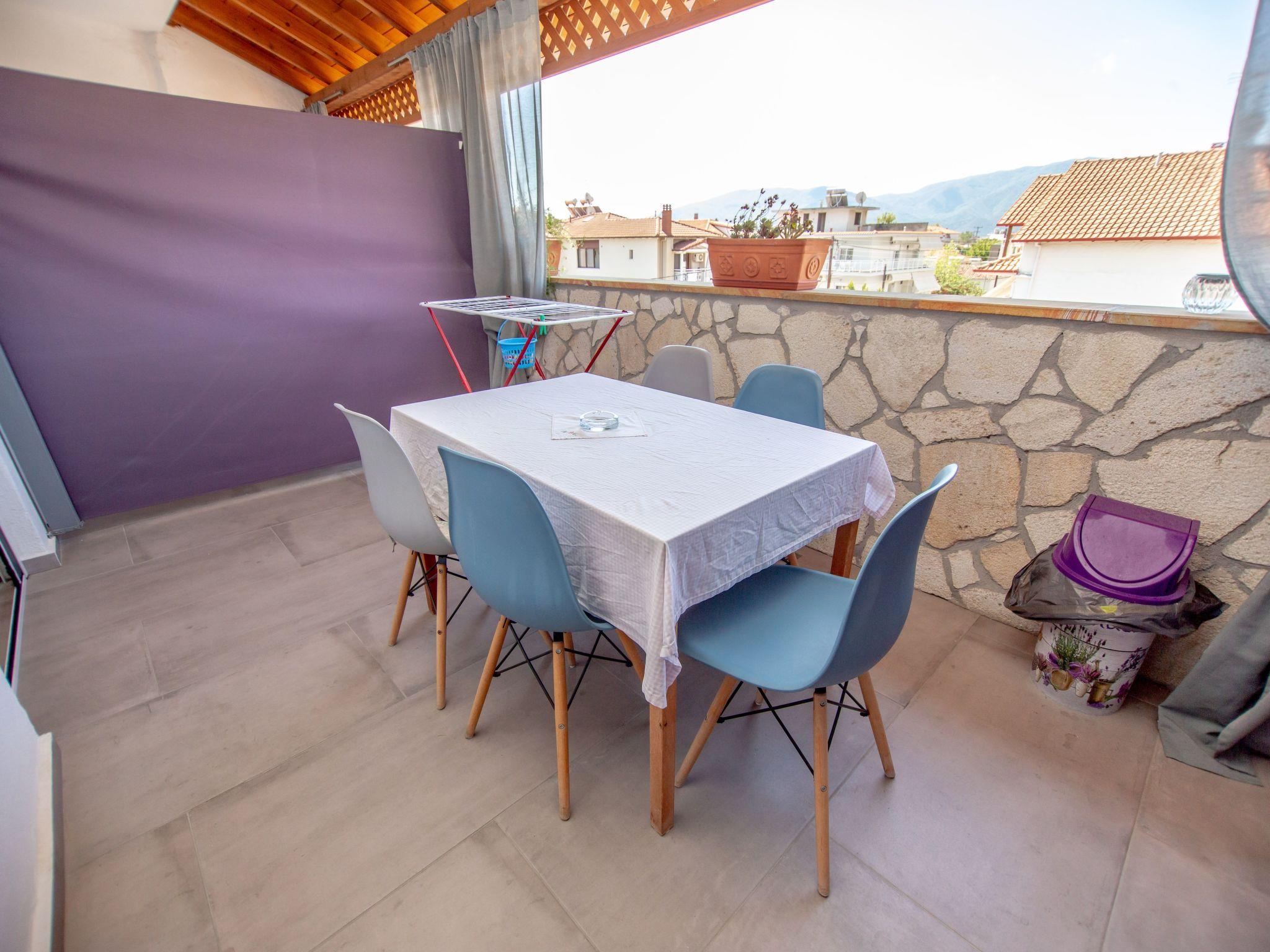 Our house is only 230m. from the beach! The flat house is located in the centre of Nea Vrasna. Very quiet and yet very central. The 8 km long sandy beach is only 4 - 5 minutes walk (230m.). All shopping facilities as well as bars and the many taverns are within walking distance. The bakery is only 100 metres from the house. Thessaloniki airport is 90 km away. You can reach the airport in one hour via the new A2 motorway.