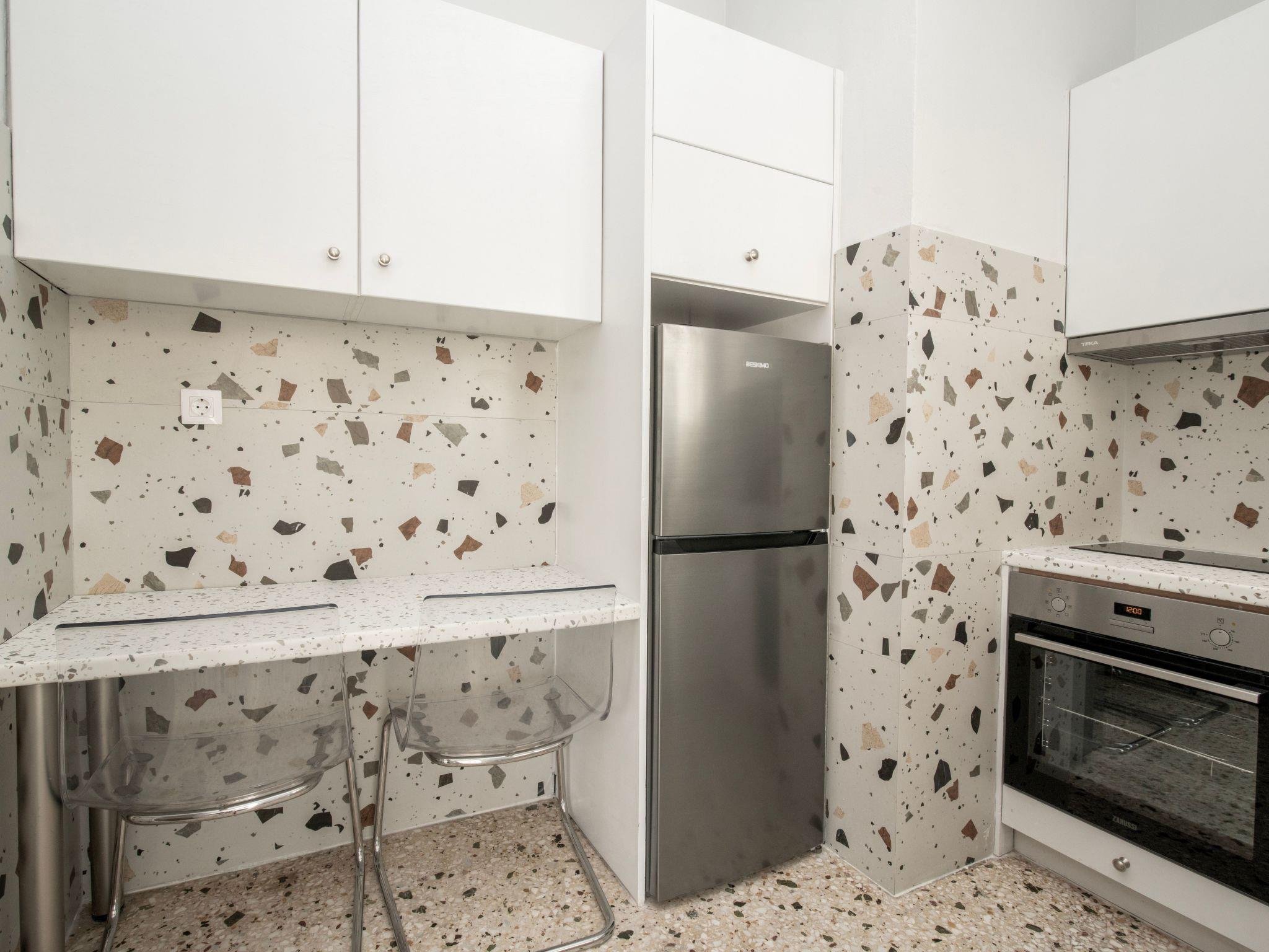 The interior of this house is meticulously arranged to ensure your utmost comfort and convenience. It features a fully equipped kitchen with a 3-plate stove, mini oven, coffee machine, espresso pot, and a filter coffee maker to kick start your mornings. The living areas are cooled with both ceiling and standing fans, providing a respite from the Athenian sun, alongside a smart TV for your entertainment. Essential amenities such as a washing machine and clothes dryer are exclusively available to enhance your stay.