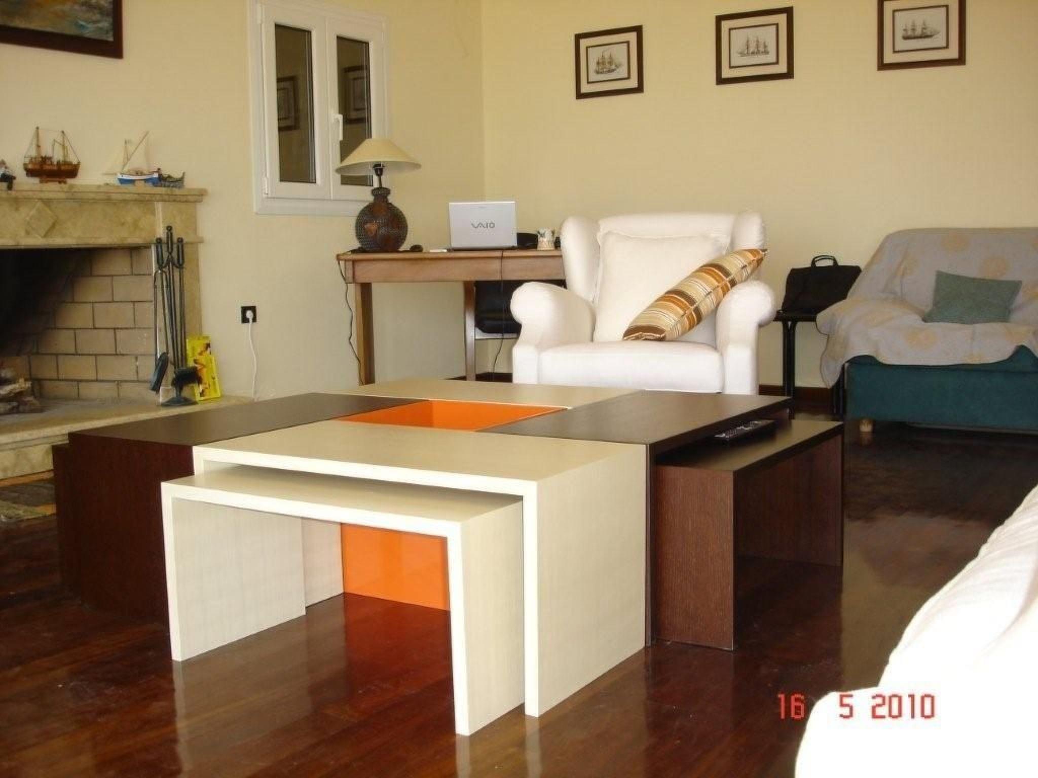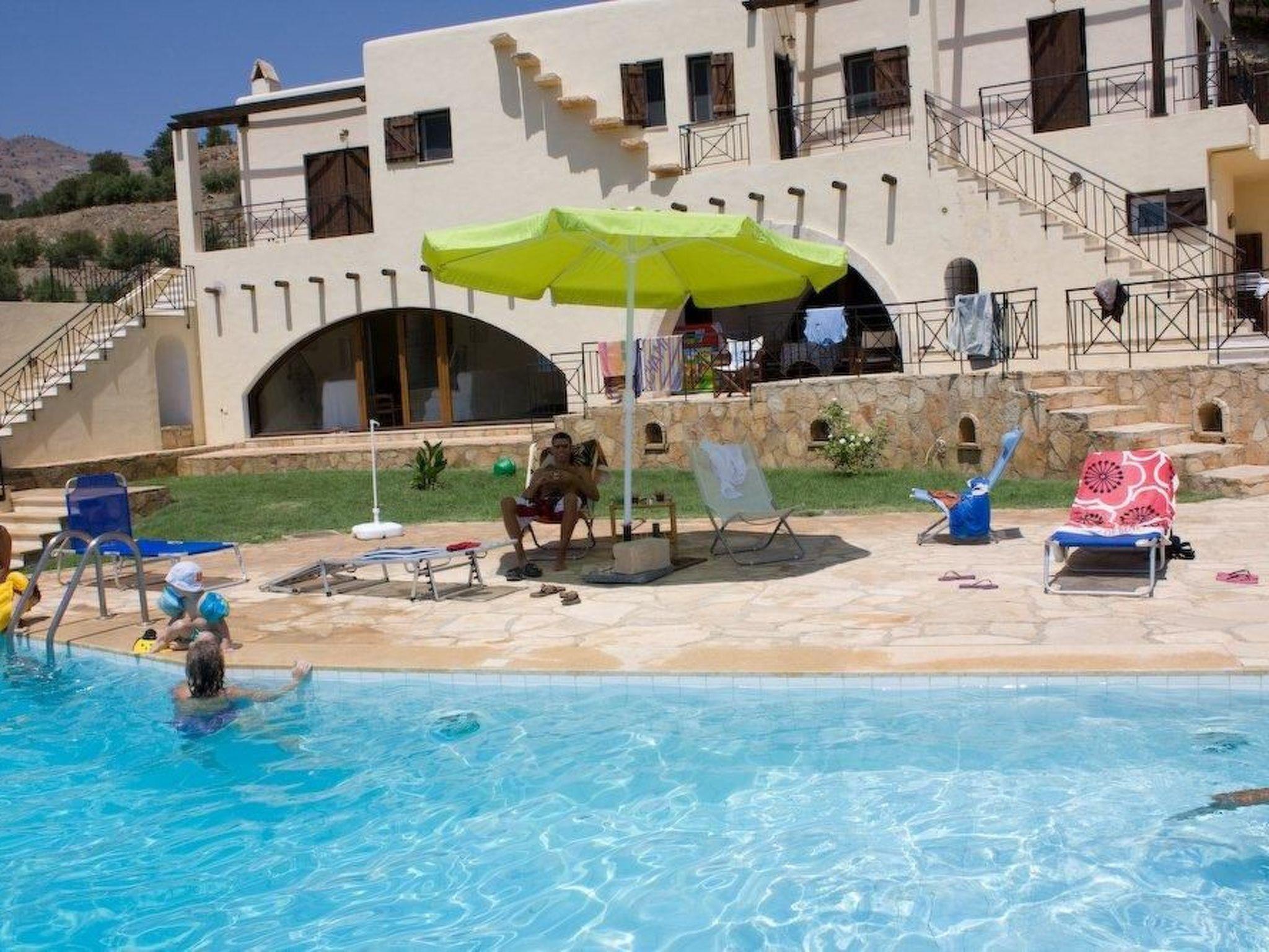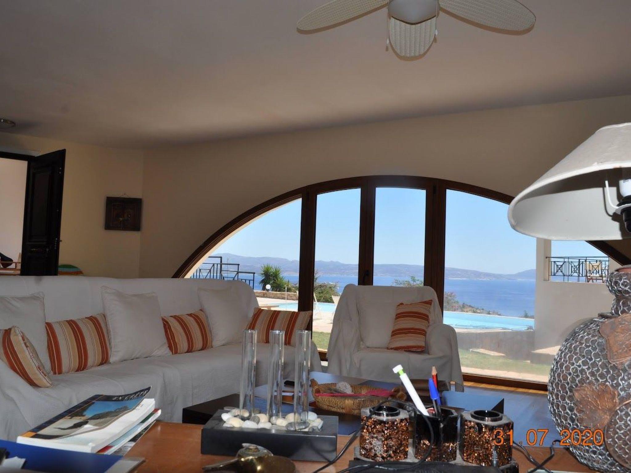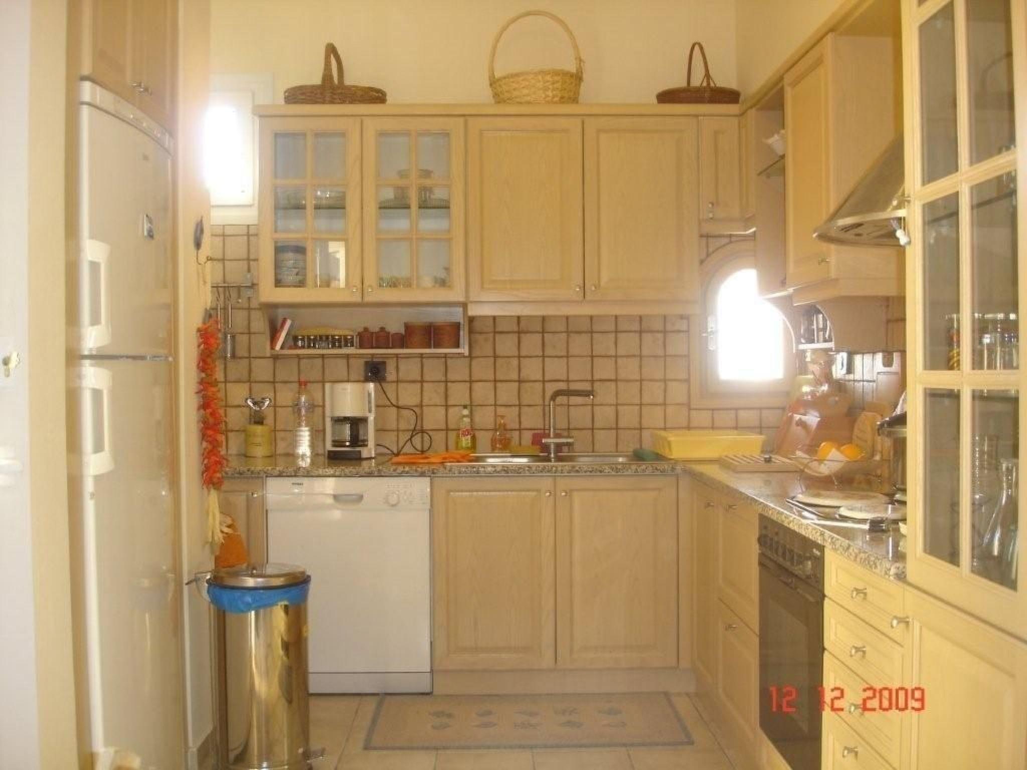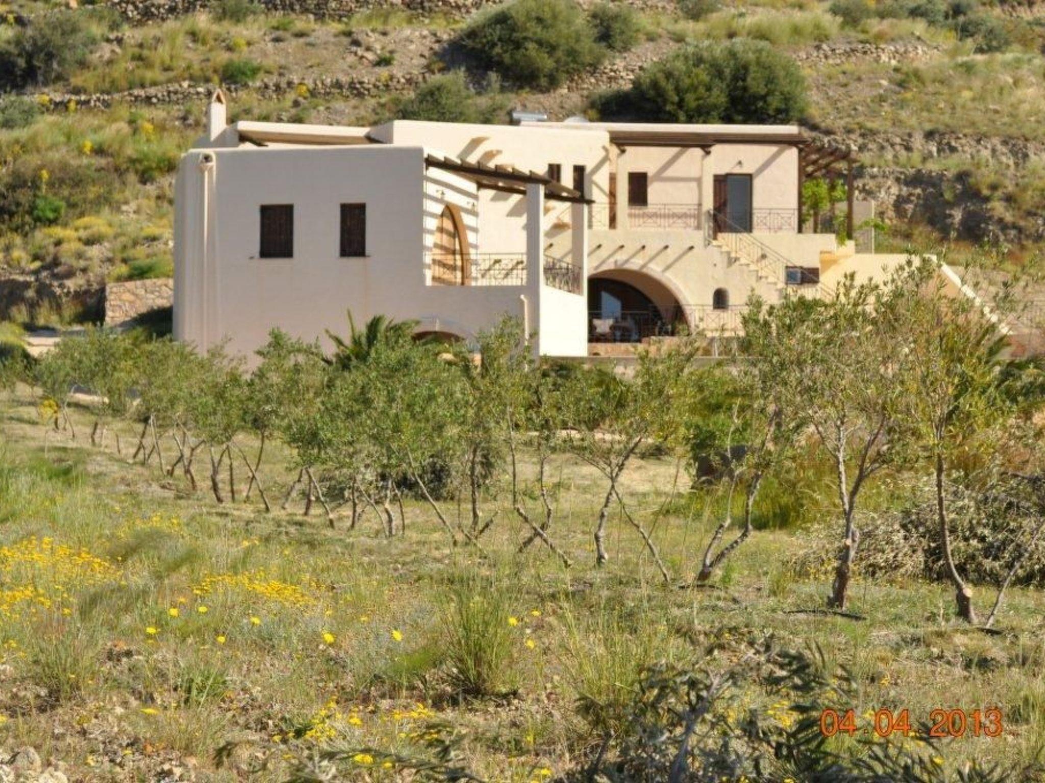 Some informations concerning the house The house, situated on the hill Platyvola over the beach of Agia Galini Village, stands in the middle of 8.300 m2 property which also includes 170 small olive trees and 67 vines. A marvelous view to the sea extends from the house and the whole property. We can see the islands of Paximadi, the villages of Agia Galini and Matala and the surrounding hills of very old olive trees. The architectural design of the house is inspired from the Cretan construction style of the post Minoan period. The house complex is formed by two different buildings: the main house “Spiti” and the secondary house “Paraspito”. The Paraspito is our guest house. On the first floor there is a large bedroom, a bathroom with WC, a kitchenette, a dining room and a large balcony. At the ground floor are the swimming pool’s WC and a covered area, cool and shady used as an eating place. Conforming to the style of the post Minoan period, the house complex is surrounded by a wall. Cretans used such walls as a defense against pirates that often visited the south part of Crete. In our case the wall, is the swimming pool’s wall! From the guesthouse’s balcony we can directly dive at the deepest part of the swimming pool, which is a 14x7 meters overflow type. NB the swimming pool remains closed from 15 November to the end of March every year. Looking out from the living room of the main house, you see the blue water of the swimming pool becoming one with the blue of the sea. The property’s main entrance is a heavy metallic rolling gate flanked by beautiful bougainvilleas. As you enter you find two stone covered alleys. One goes to the entrance of the court under the guest house and one goes to the garage. As we open the garage’s wooden rolling door we enter an area of 200 m2. Here is also stored a small boat with a 25hp Mercury outboard engine. It is at your disposal for fishing or fun. The left part of the garage houses the pool room and its equipment. We go up through a slated stair and arrive to the swimming pool patio, an area covered with Cretan flat ceramic colored stones and a grass court. At our left there is a 100 m2 swimming pool. In front of us is the guest house and at our right the main house. We enter the main house by a wooden door under an arched area where we take our breakfast at summer. We walk in the living room on iroco wooden floor. All floors of the house (salon, dining room, corridors, internal stair and bedrooms) have wooden iroco with the exception of the bathrooms and the kitchen. At our right side there is the dining room adjoining a fully equipped kitchen and a WC. The wooden staircase takes us to the first floor. Here are four large bedrooms, each one with its own bathroom and WC. Each bedroom has its own large balcony with a beautiful view to the sea. From the balcony of the master bedroom we can go down to the court through an external slated stair.