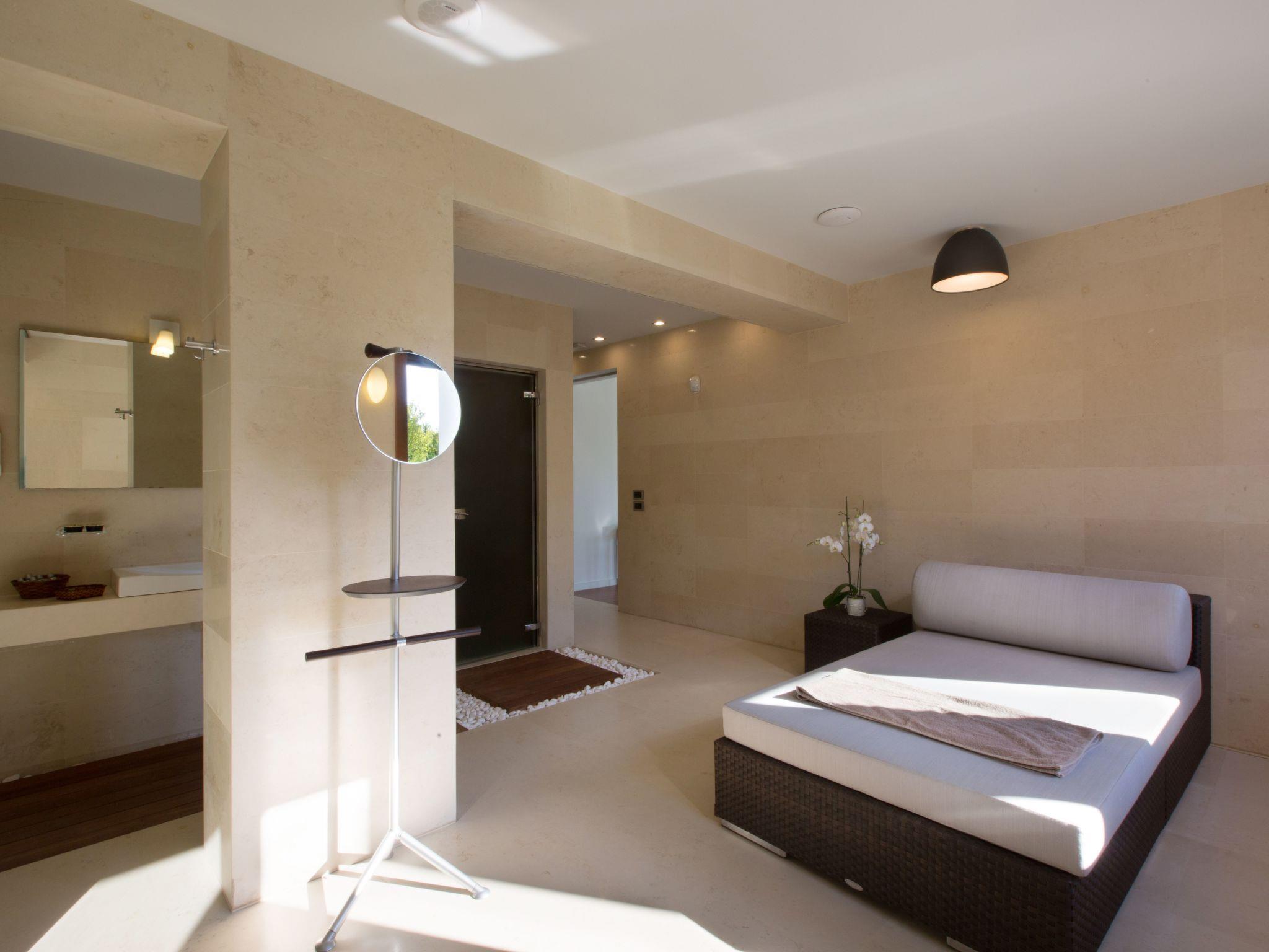 Further down on that same floor level you find both the fully equipped gym and also the relaxing spa area with a Turkish steam bath, a Scandinavian sauna and a massage space, all of them overlooking the garden.