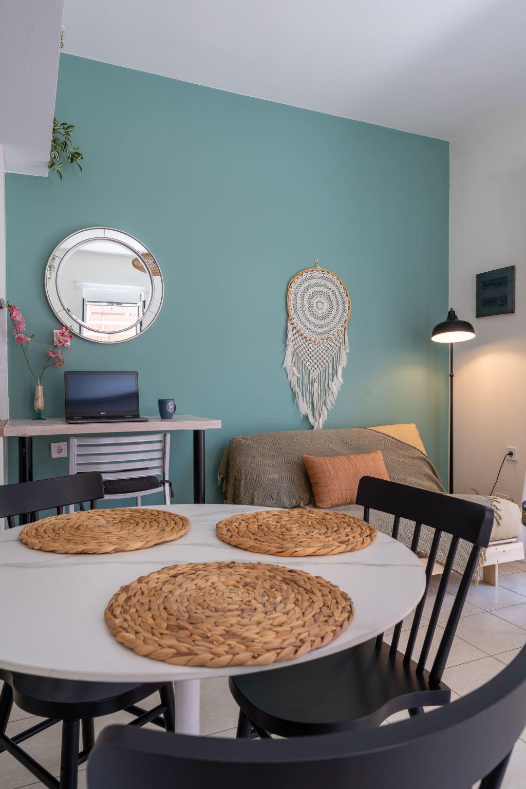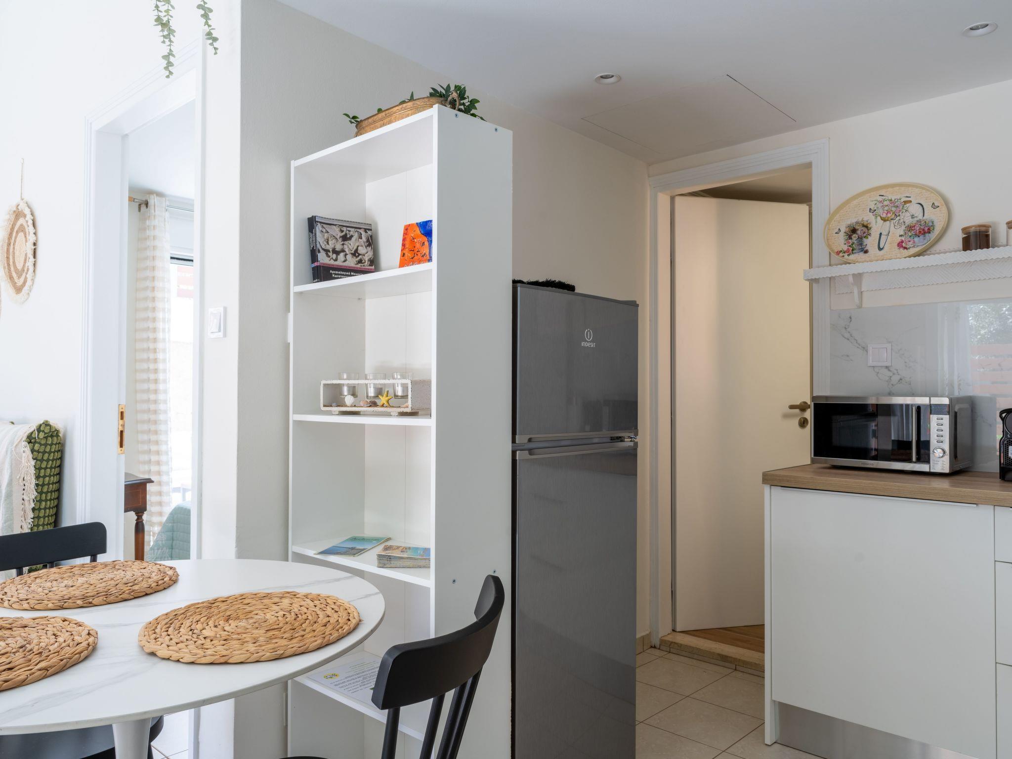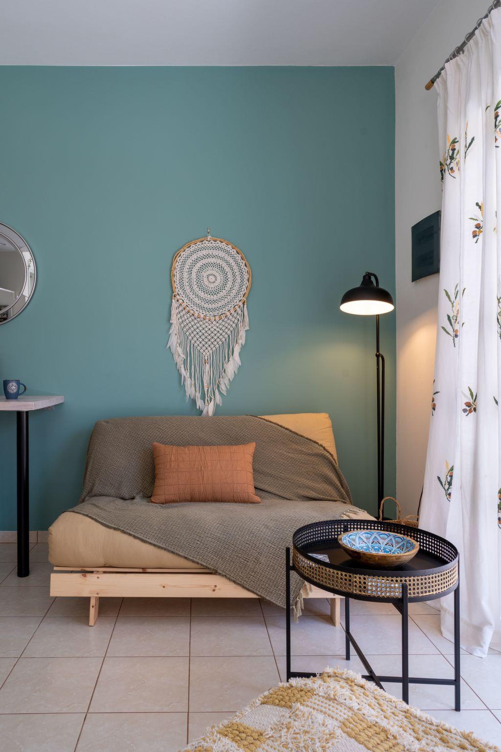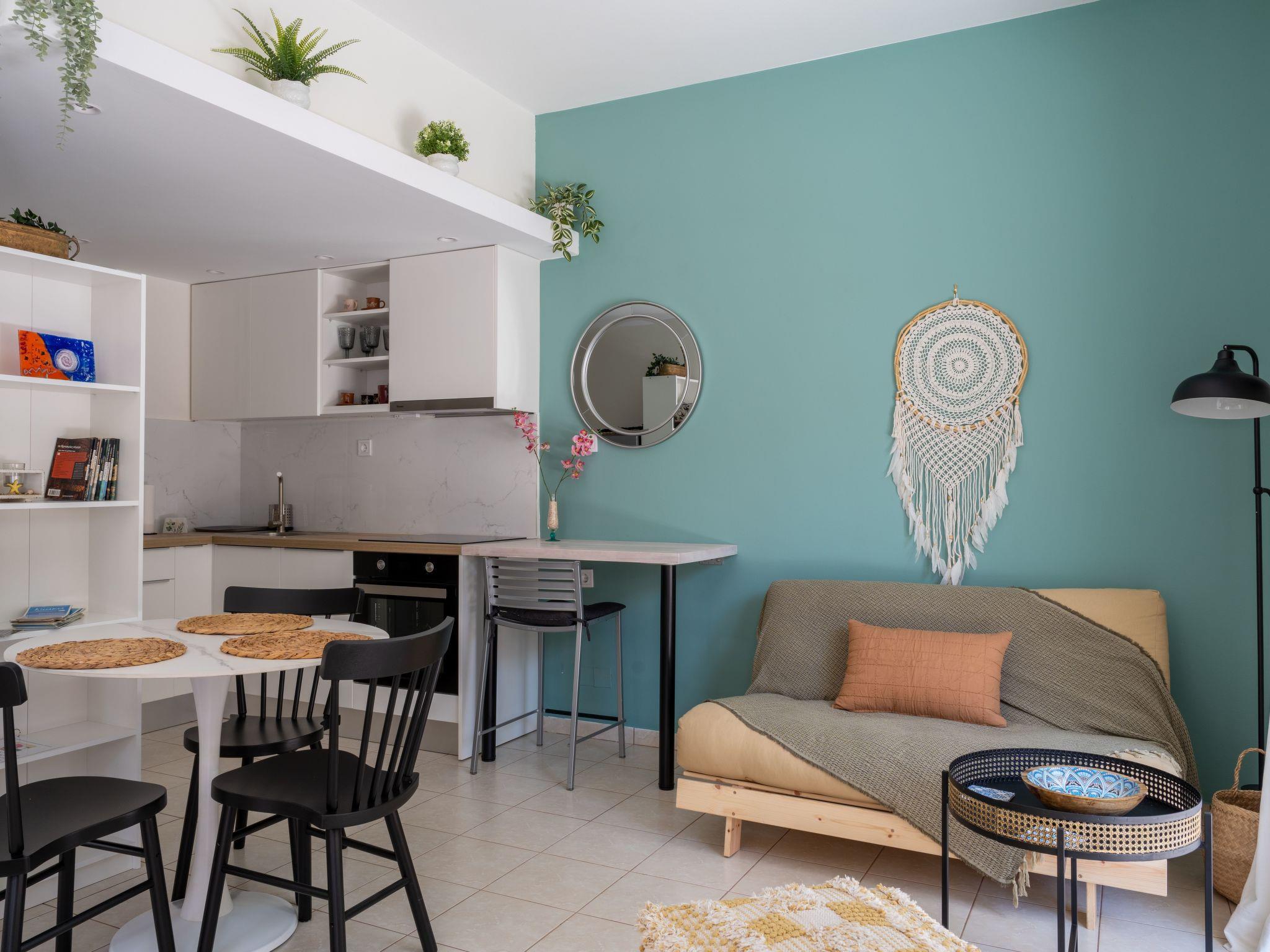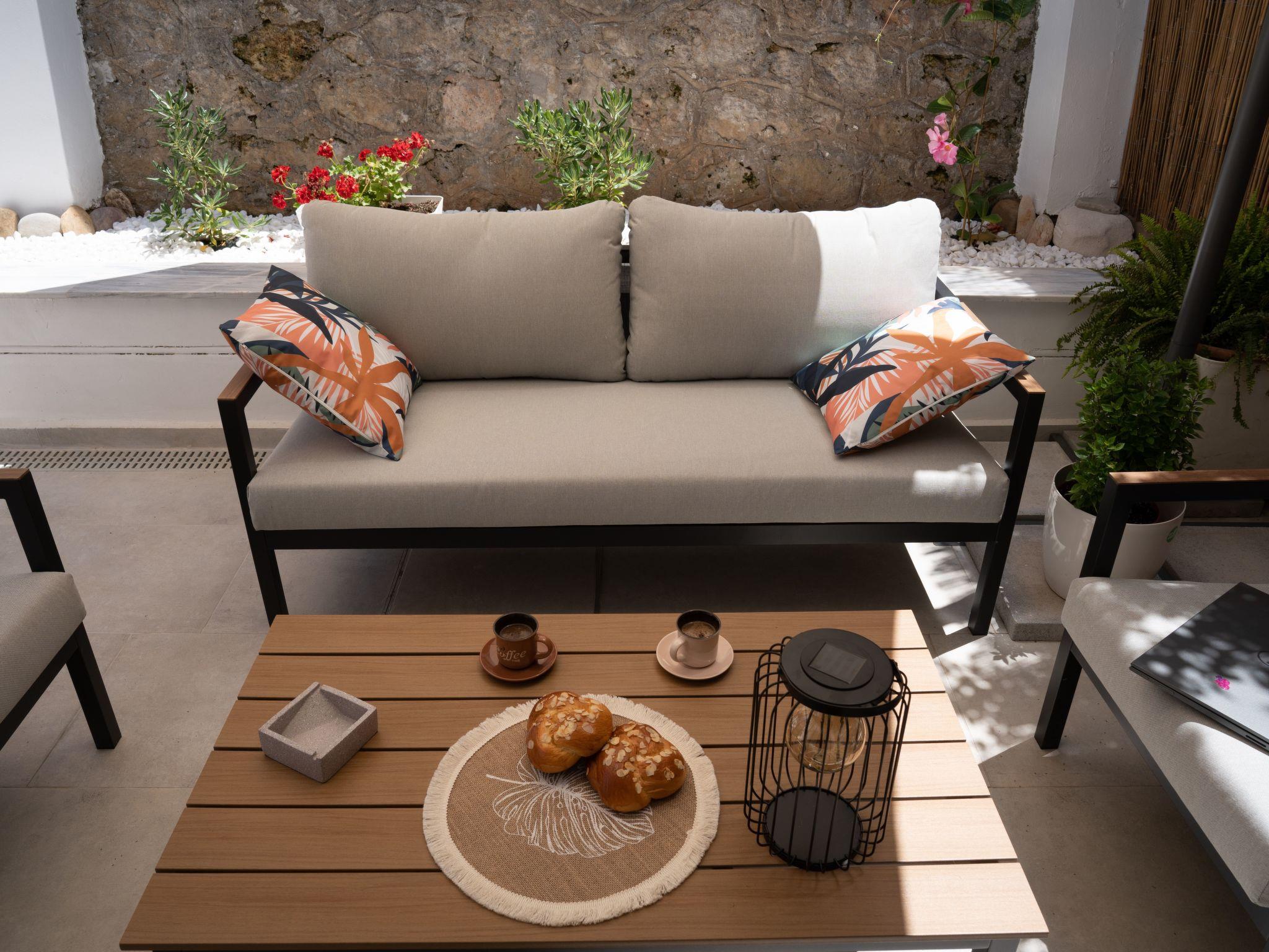We have renovated this apartment and decorated it with love for hospitality, style and personality, making sure it is functional and simple, but also unique, so that it expresses us. To get to the apartment you have to go down a few steps from the street side to find yourself in the corridor that communicates with the other two apartments on the ground floor, which is surrounded by courtyards and gardens. In the open space you will find two living rooms with a day sofa (single bed) and a semi-double sofa bed (1.40 m) that can comfortably sleep an adult or two small children. There is a comfortable kitchen equipped with all the necessary utensils and appliances for cooking and a dining table for 4 adults and a bar surface suitable for work. We prepared a very special bedroom, with an idea of exoticism and romance, which communicates with a private front yard.