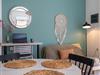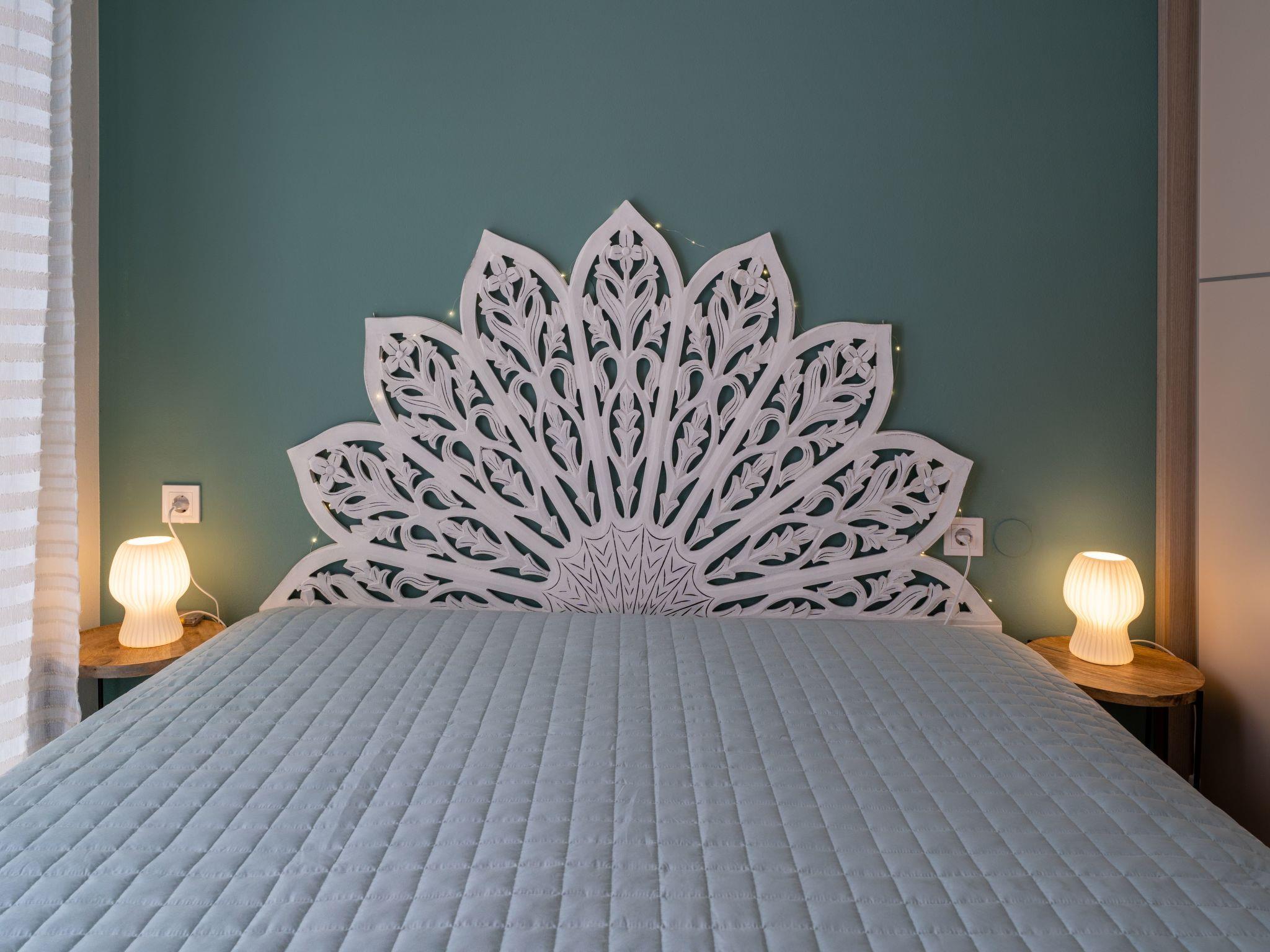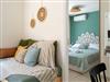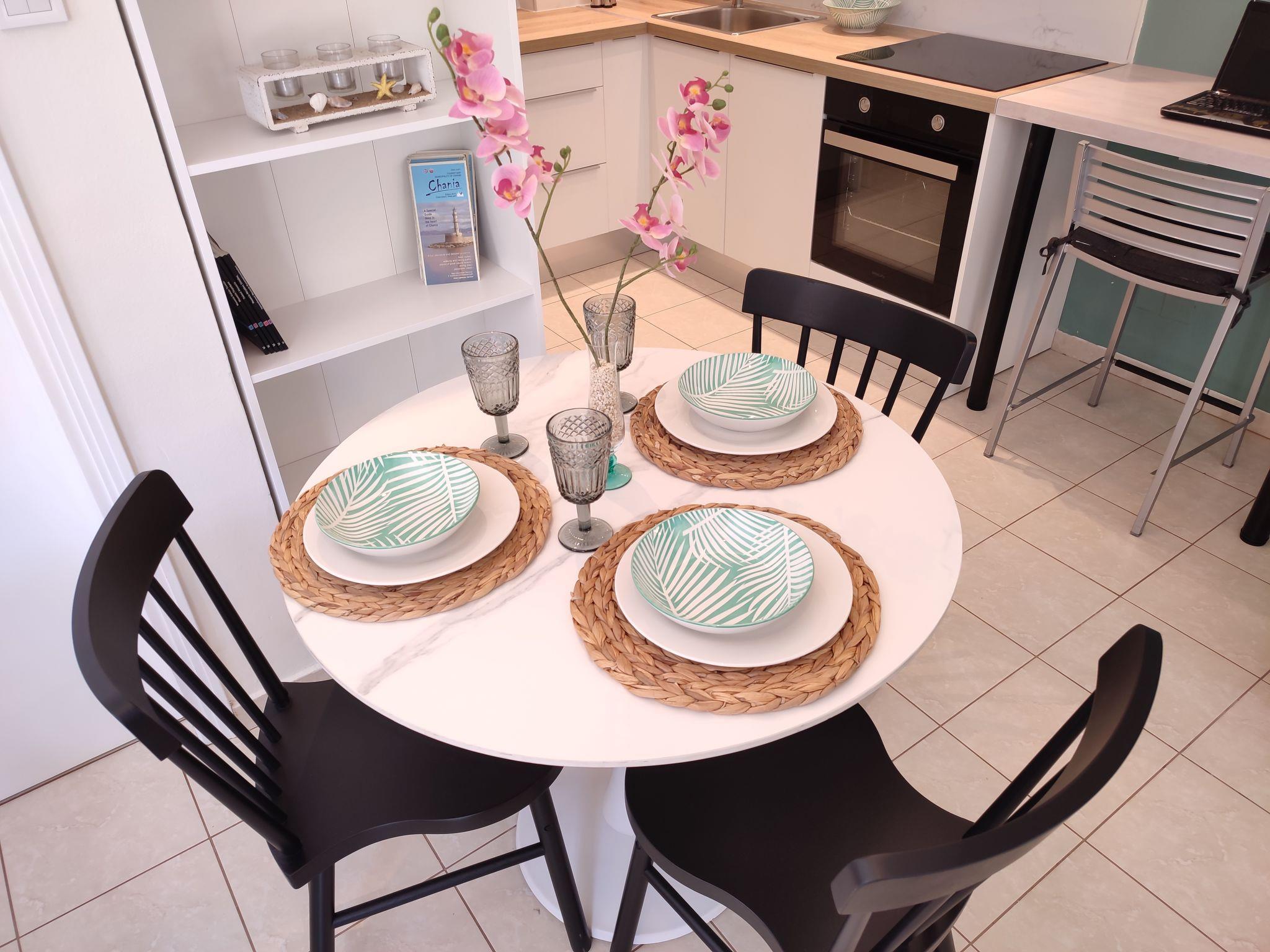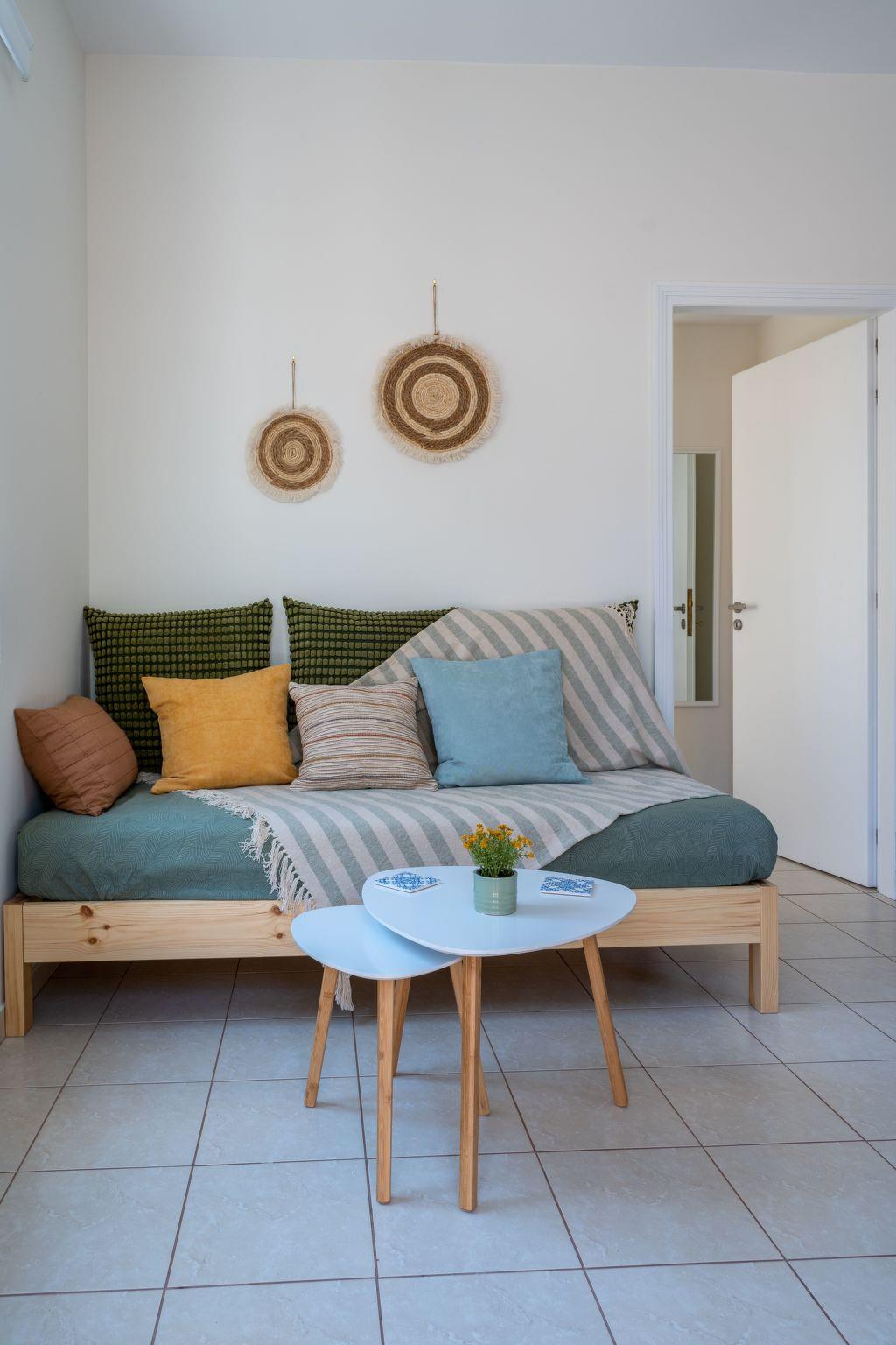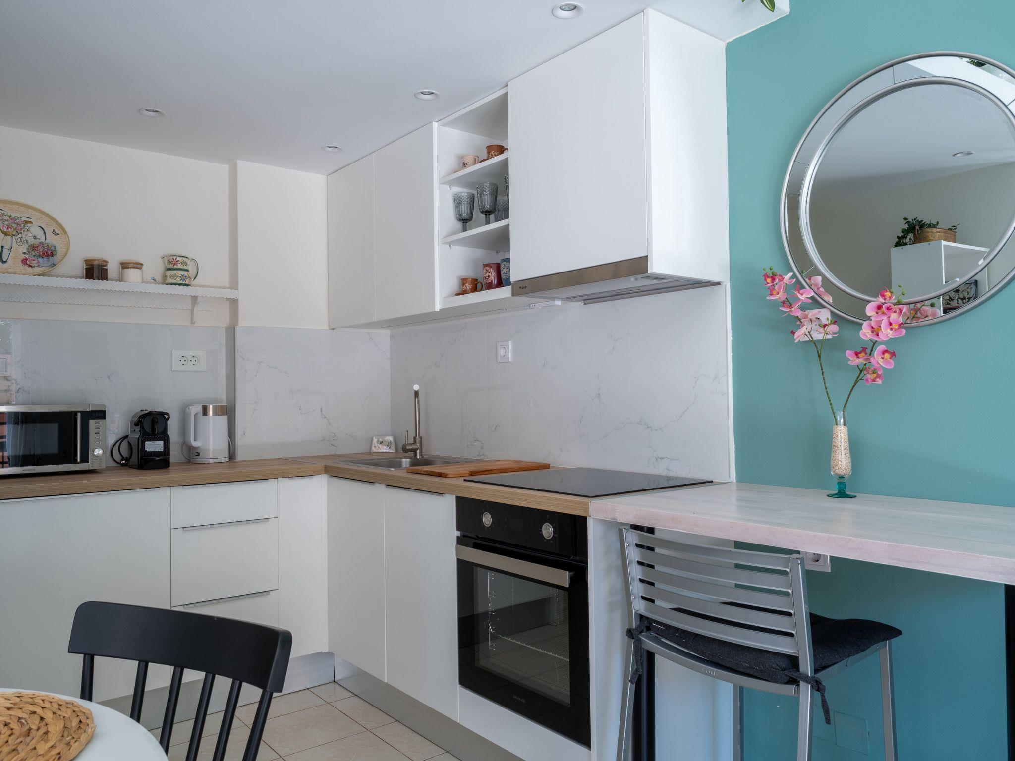 We have renovated this apartment and decorated it with love for hospitality, style and personality, making sure it is functional and simple, but also unique, so that it expresses us. To get to the apartment you have to go down a few steps from the street side to find yourself in the corridor that communicates with the other two apartments on the ground floor, which is surrounded by courtyards and gardens. In the open space you will find two living rooms with a day sofa (single bed) and a semi-double sofa bed (1.40 m) that can comfortably sleep an adult or two small children. There is a comfortable kitchen equipped with all the necessary utensils and appliances for cooking and a dining table for 4 adults and a bar surface suitable for work. We prepared a very special bedroom, with an idea of exoticism and romance, which communicates with a private front yard.