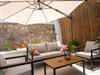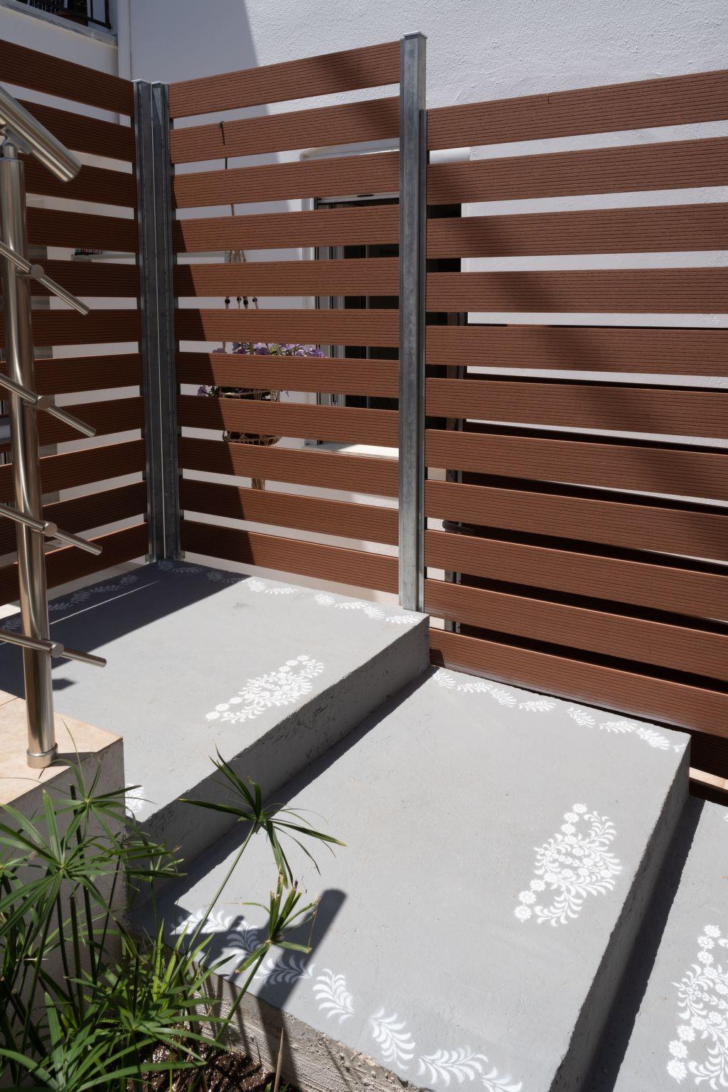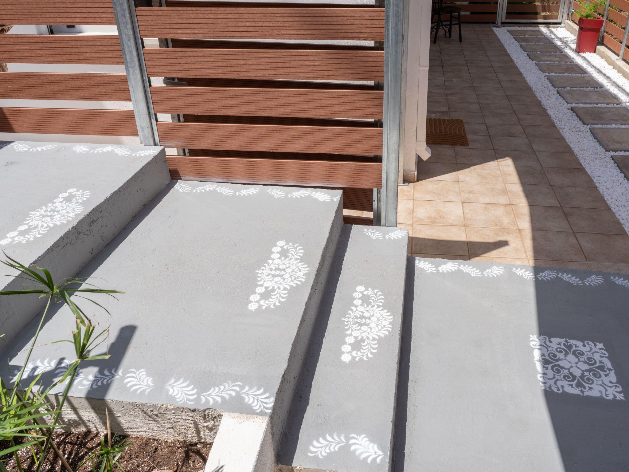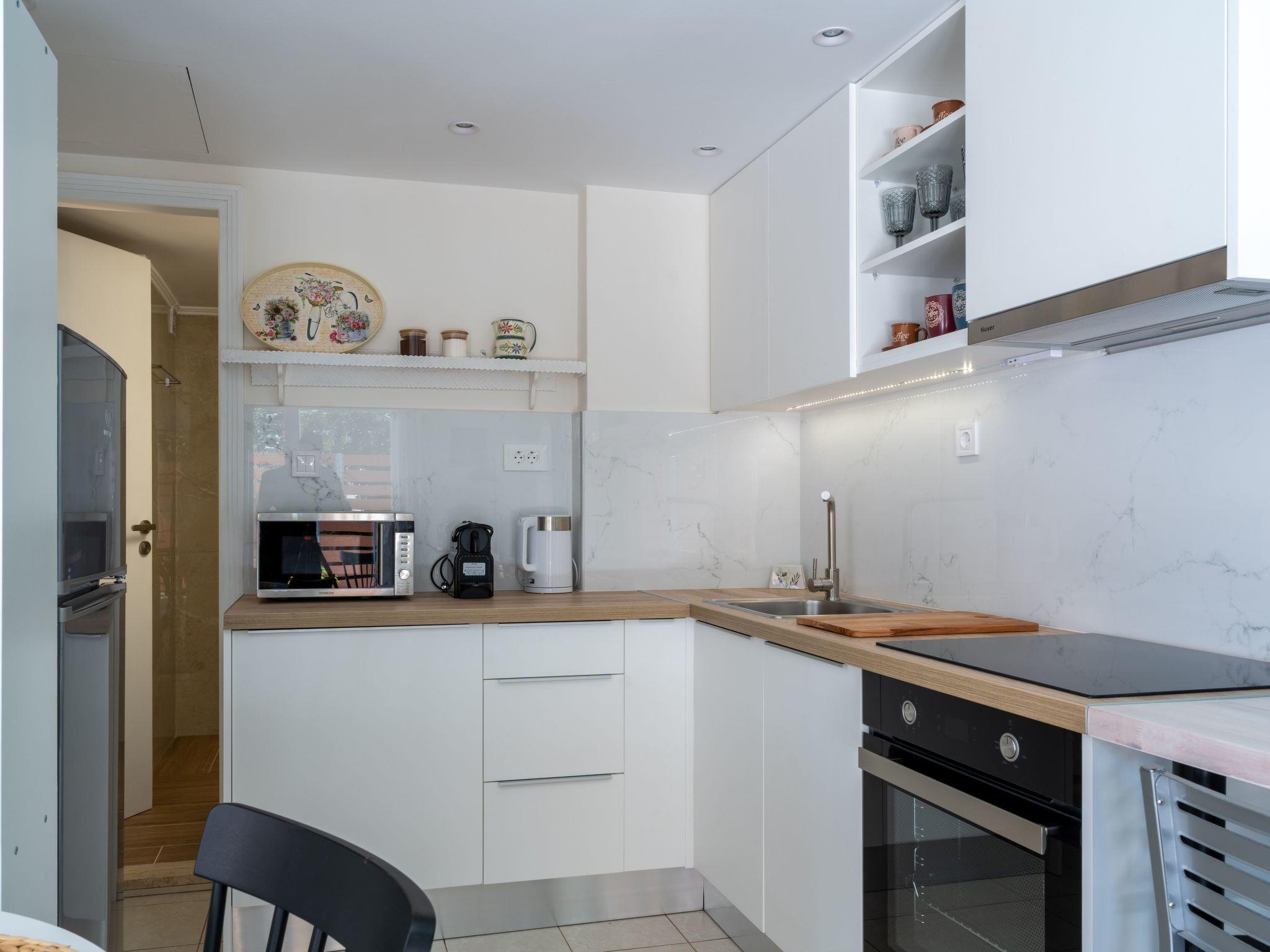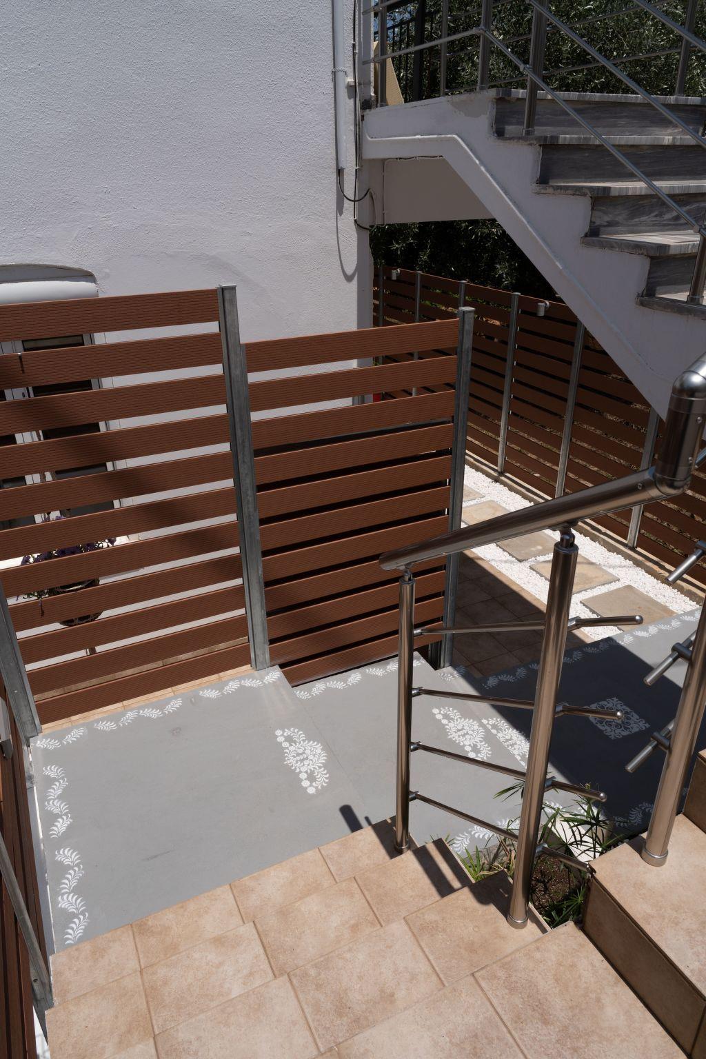 The yard is large - almost as big as the apartment and sunny all day long and you can enjoy your breakfast in the comfortable living room, under the shade of a large umbrella. There is also a common, exterior corridor - backyard that leads to the other apartments.