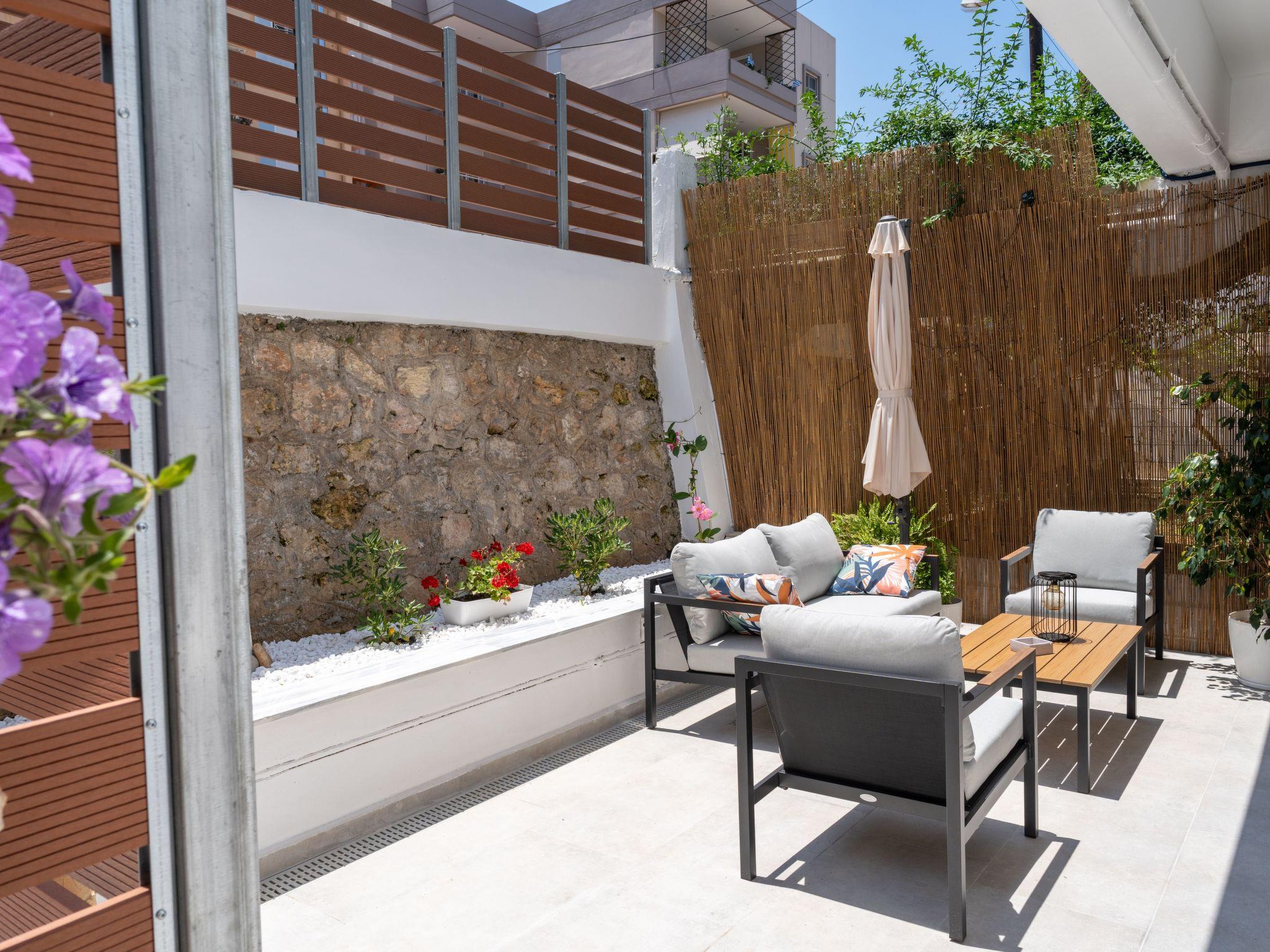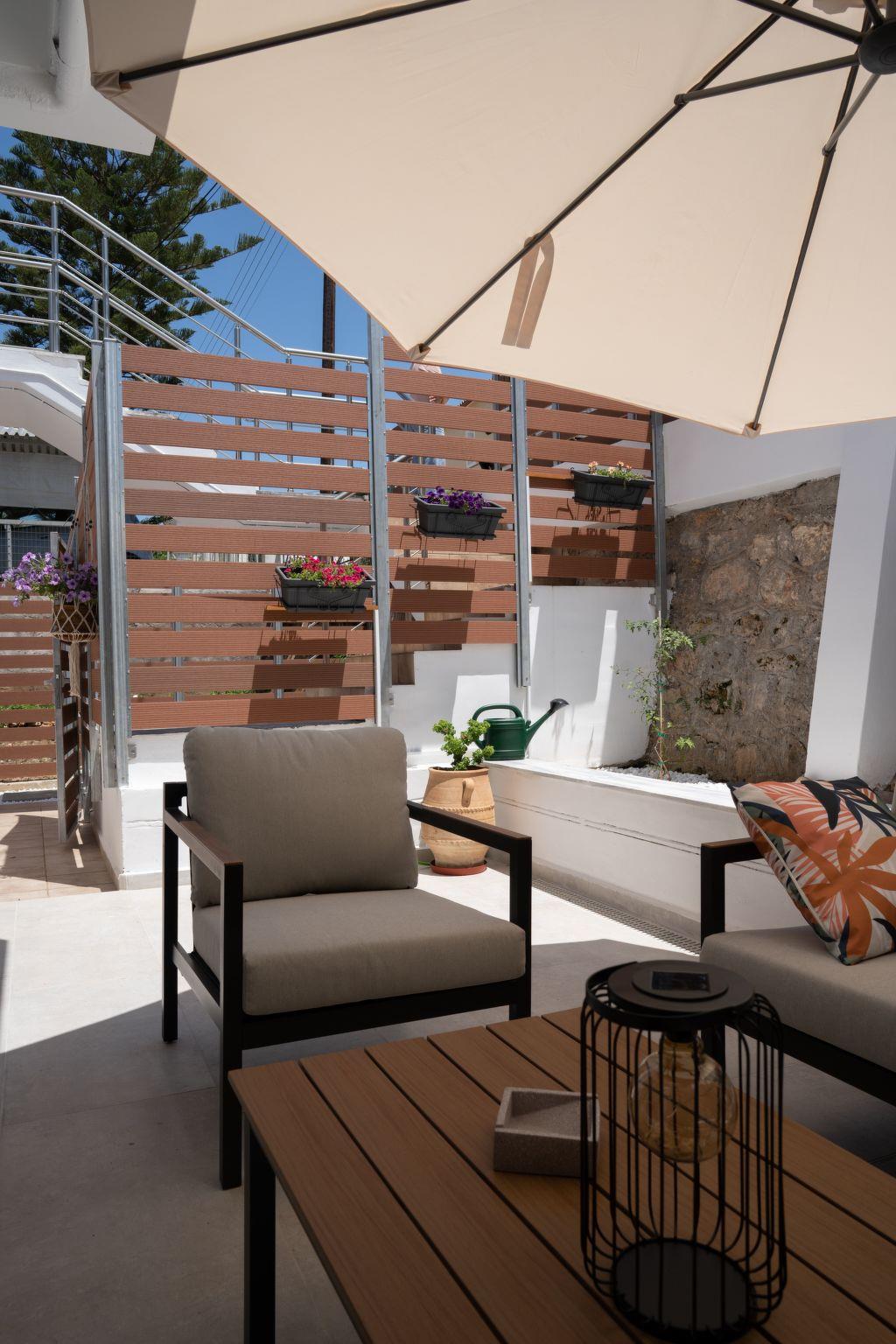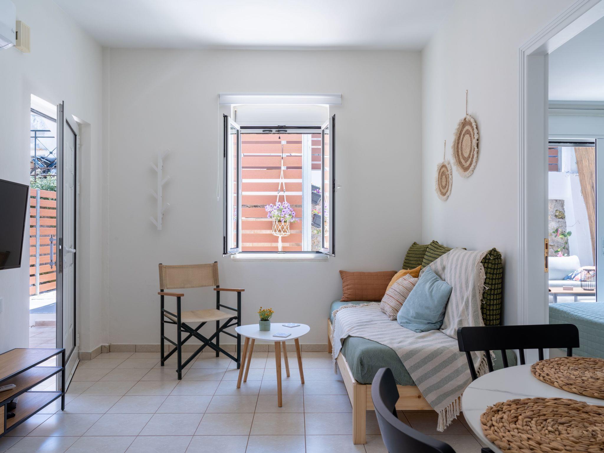 Ground floor, bright, fully equipped apartment, with a large yard for sunny mornings, decorated with style and outlook, refinement and luxury. Our apartment is suitable for couples, families of 5 and groups of 4 and is located in the historic Halepa, one of the most beautiful neighborhoods of the city of Chania, on a quiet street, just 2 km from the center and the old town and 600 meters from the nearest beach.