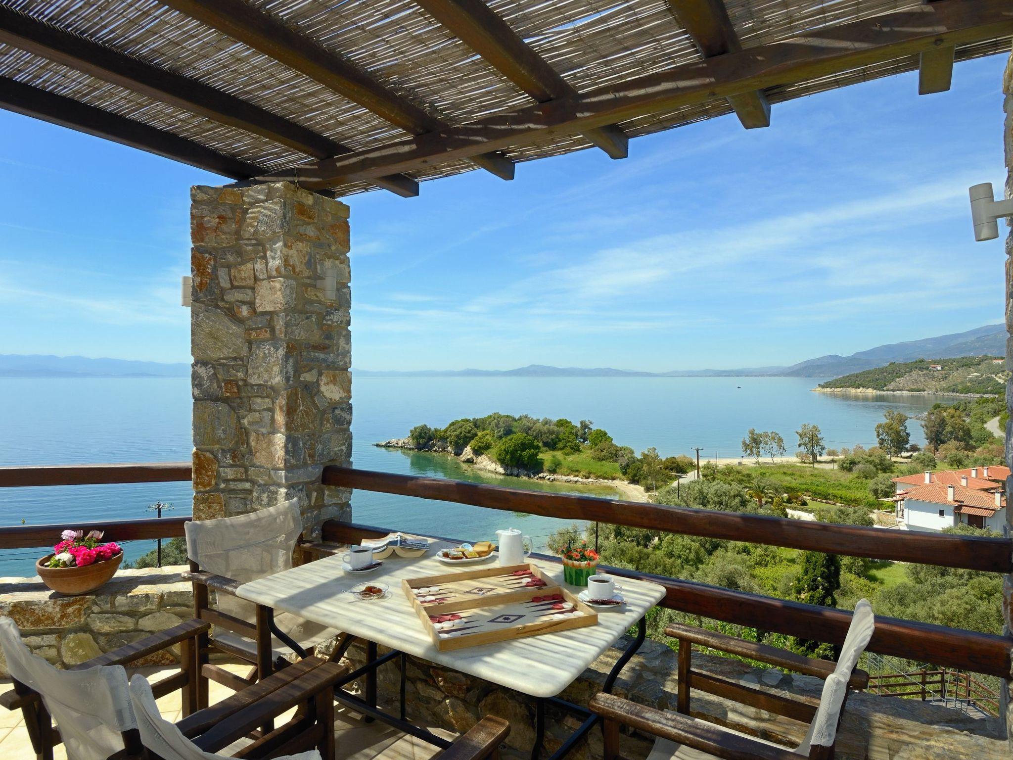It is situated on a slope and you have a very beautiful panoramic sea view from everywhere.