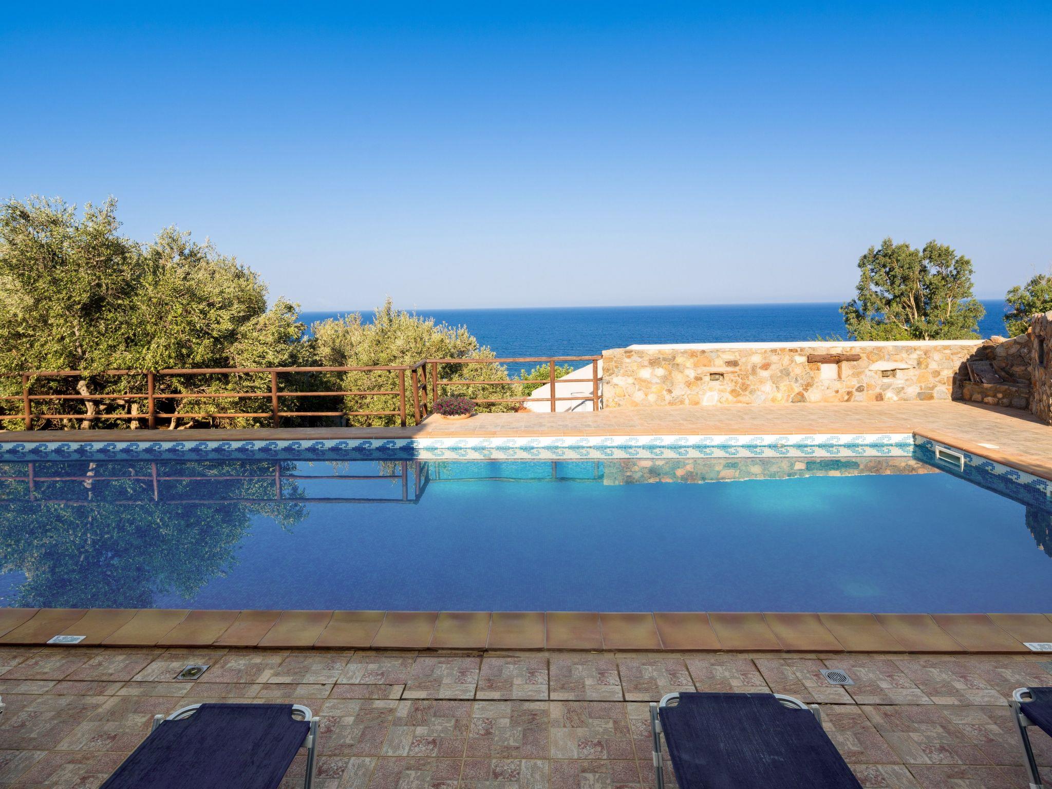 Villa Kimothoe is an Impressive 4 bedroom luxury villa. It overlooks Livadia bay on the west side of Crete. It is specially chosen by families and groups of friends. It lies like a goddess on the slope of a hill offering the most magnificent sea views. Special feature of Kimothoe villa its lavish terrace hosting the private swimming pool 13, 5 x 4,5 m & the western shaded dining area. On its south side large sea rocks create a small forest full of trees, bushes, flowers and herbs. The main entrance is on the west side which leads to a rather impressive interior. The ground floor is consisted of one twin bedroom & one triple bedroom with en-suite bathrooms. The spacious open-plan area hosts the living, dining and the fully equipped kitchen. A dark brown wooden staircase adjoins the ground floor to the first floor. There are two double bedrooms with en-suite bathrooms one with Jacuzzi on the first floor. The bedrooms have direct access to the western balcony overlooking the sea whereas only the master bedroom has access to an eastern terrace with views of the mountains, olive yards & a view of the Elafonisi Lagoon. Check out is 11:00 latest and check in is 15:00 earliest giving.