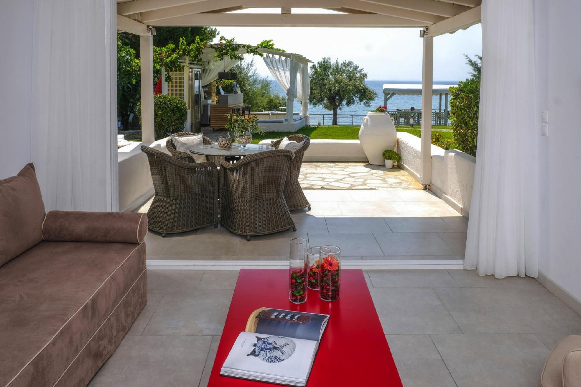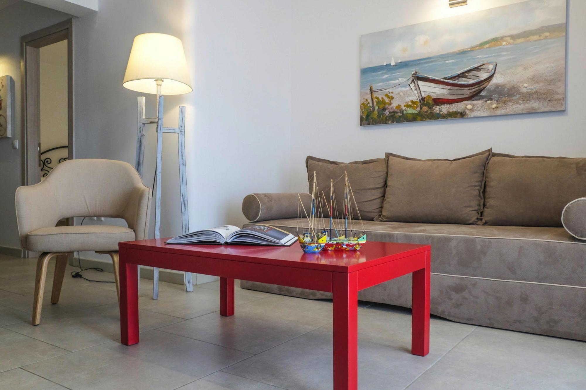 Smagfuldt møblerede lejligheder i en førsteklasses beliggenhed: kun få skridt fra en privat sand-/stenstrand med krystalklart vand og private liggestole og parasoller. Her kan du lade blikket vandre over det turkisblå hav og nyde den vidunderlige ro. I den smukt anlagte have, som deles af de fire omfattende renoverede boligenheder, finder du en swimmingpool, en grill, liggestole og mange skyggefulde steder at slappe af. Mange faciliteter på Athena Pallas Hotel, 800 m væk, kan benyttes gratis. Her finder du også et minimarked og et spacenter (mod betaling). Adskillige strandbarer ligger inden for gåafstand. Ekstra inkluderet - • WiFi • Mellemrengøring 2 gange om ugen inkluderet • Belægning med 2 voksne og 1 barn op til 11 år og 1 barn op til 7 år Bemærk - • Mobilitet: Ikke egnet til personer med nedsat mobilitet • Gebyrer for ekstra vandforbrug og vaskeriservice varierer afhængigt af forbrug og skal betales på stedet.