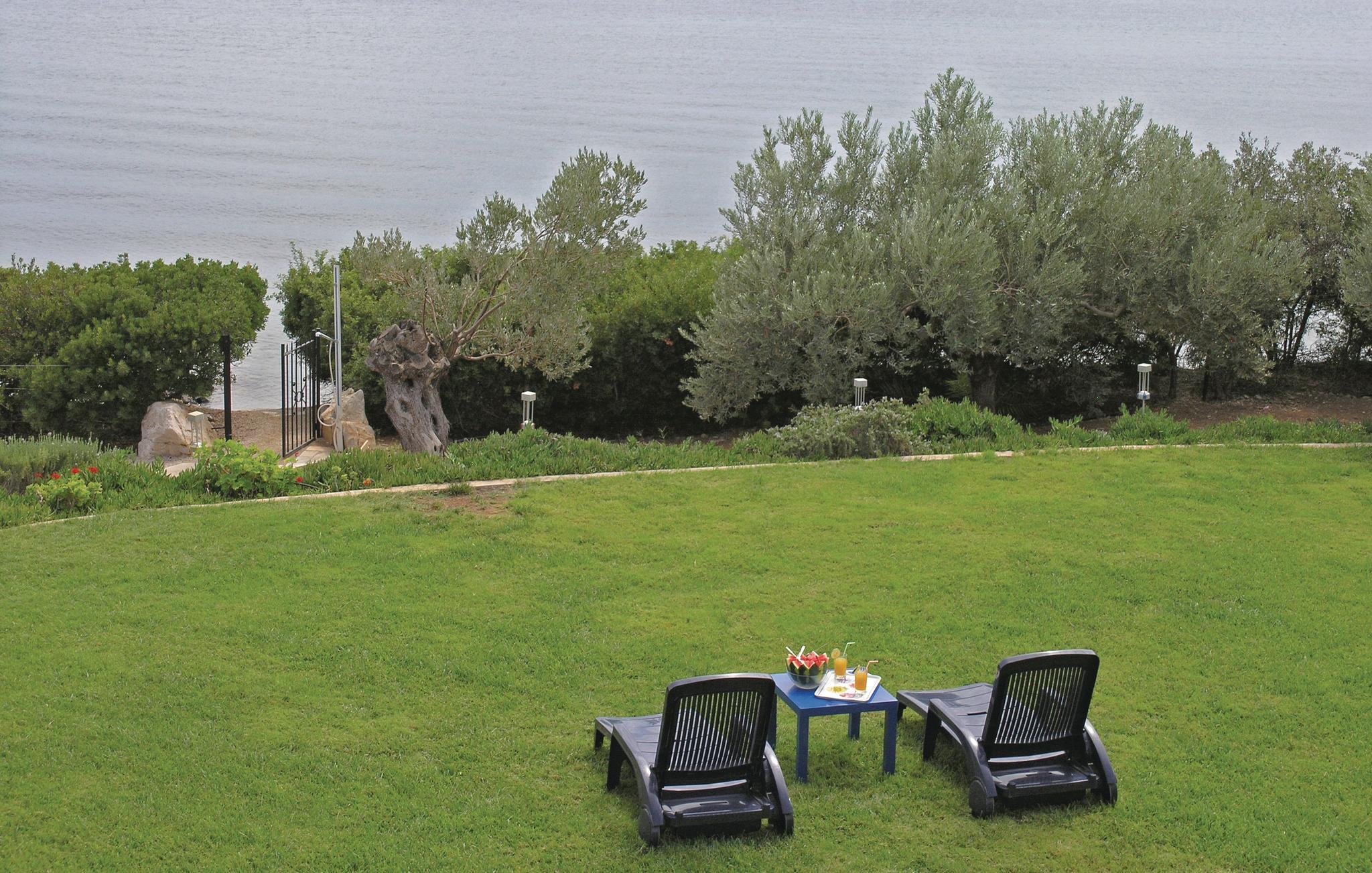 De to villaer, der huser denne samt 3 andre lejligheder, ligger lige ved havet. Villaerne er arkitektonisk smukt indrettede og byder på høj komfort. Lejligheden ligger på førstesalen med direkte adgang til egen balkon. Haven er velholdt og der er en dejlig havudsigt. Den enestående beliggenhed ved den smukke bugt byder også på privat adgang til havet. Huset er solidt og kan bruges hele året. Lejligheden har klimaanlæg (v/k). Spørg efter priserne på vinter/langtidsleje. De tre andre lejligheder er GPE108, GPE110 samt GPE111.