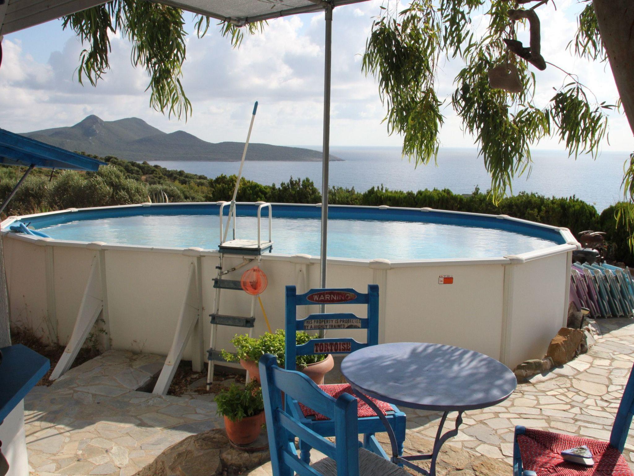 Terrace with garden furniture, parasol, above-ground swimming pool 8.70x4.70x1.30m, sun loungers, bar. Only for guests of the 2 units. The property is completely fenced. Hammock and hanging chairs for children.