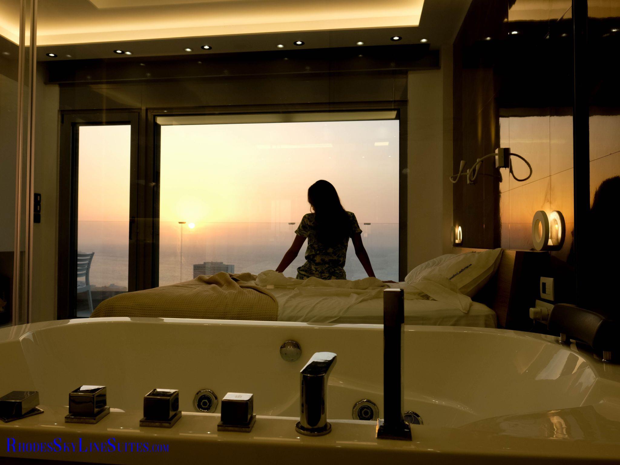 Set in suburbs of Rhodes Town, Rhodes SkyLine Suites consist of 4 deluxe Suites of 120 sq.m. each. They aim to offer a unique experience in luxuriously refined accommodation, with a deluxe spa bath (interior or exterior jacuzzi or both) including a balcony with stunning view of the Ialissos Beach, various other Greek islands, such as Symi, Tilos and Nisyros and of course the enchanting Greek sunrise and sunset.