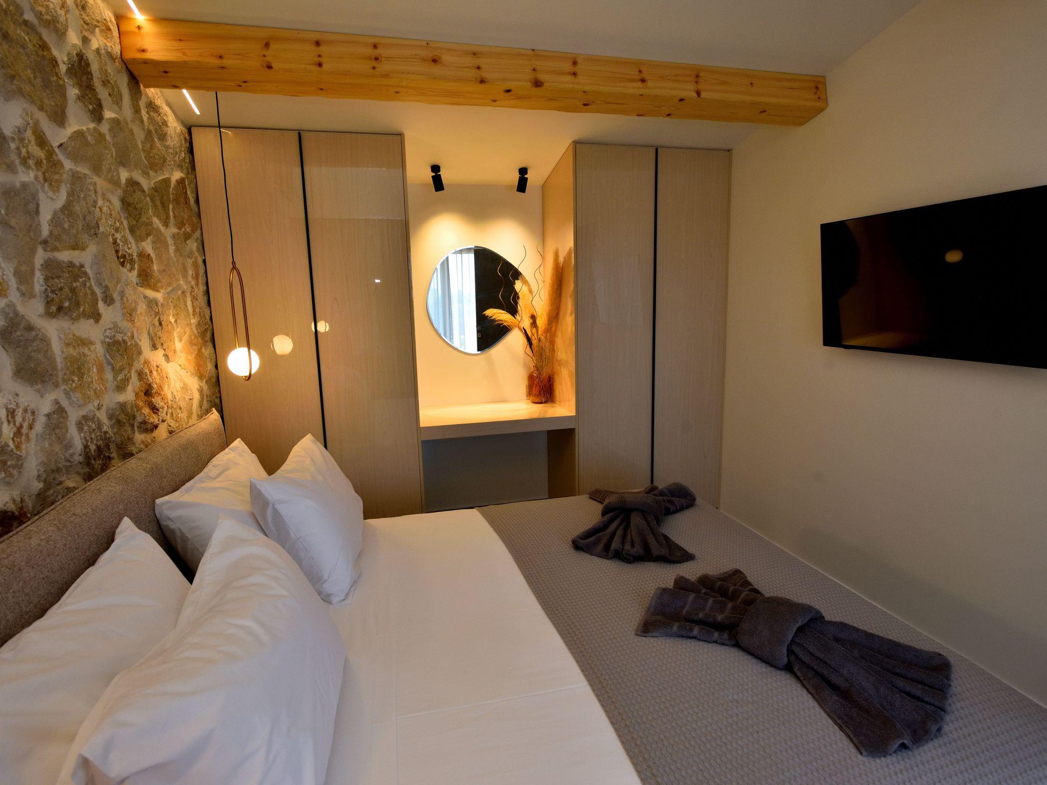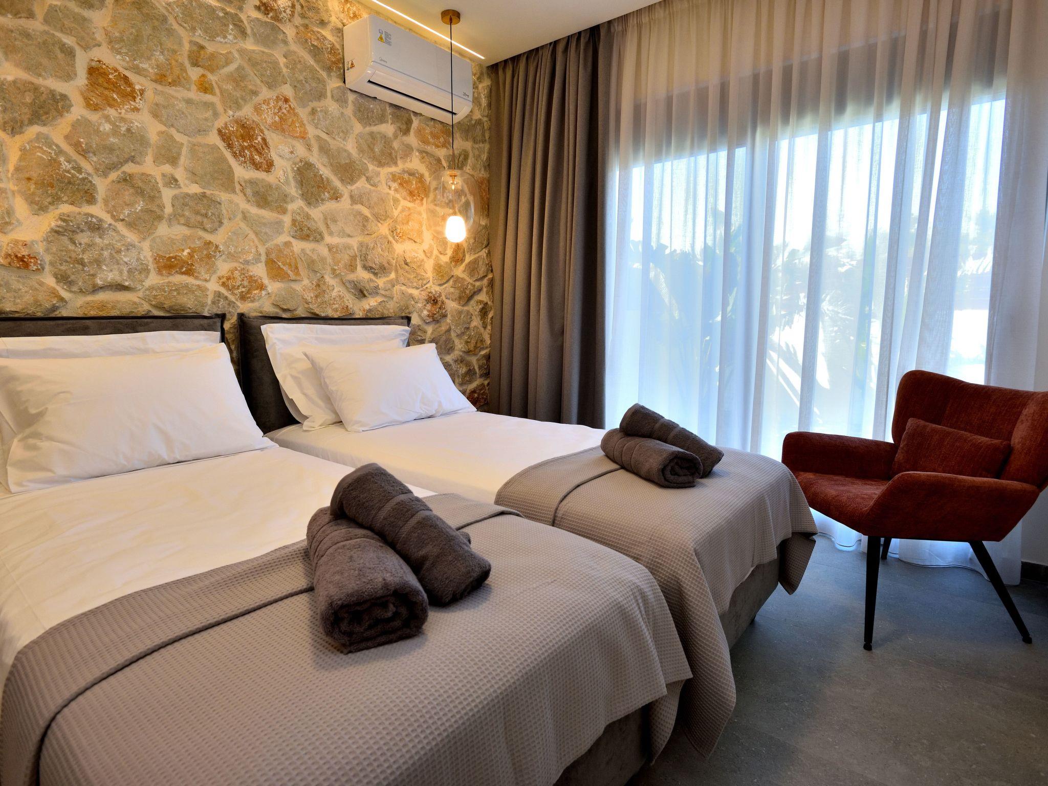 Outside, each maisonette has its own private pool with sun loungers, inviting you to relax under the Greek sun in complete tranquility. Located in a quiet area, the villa combines privacy with convenience.