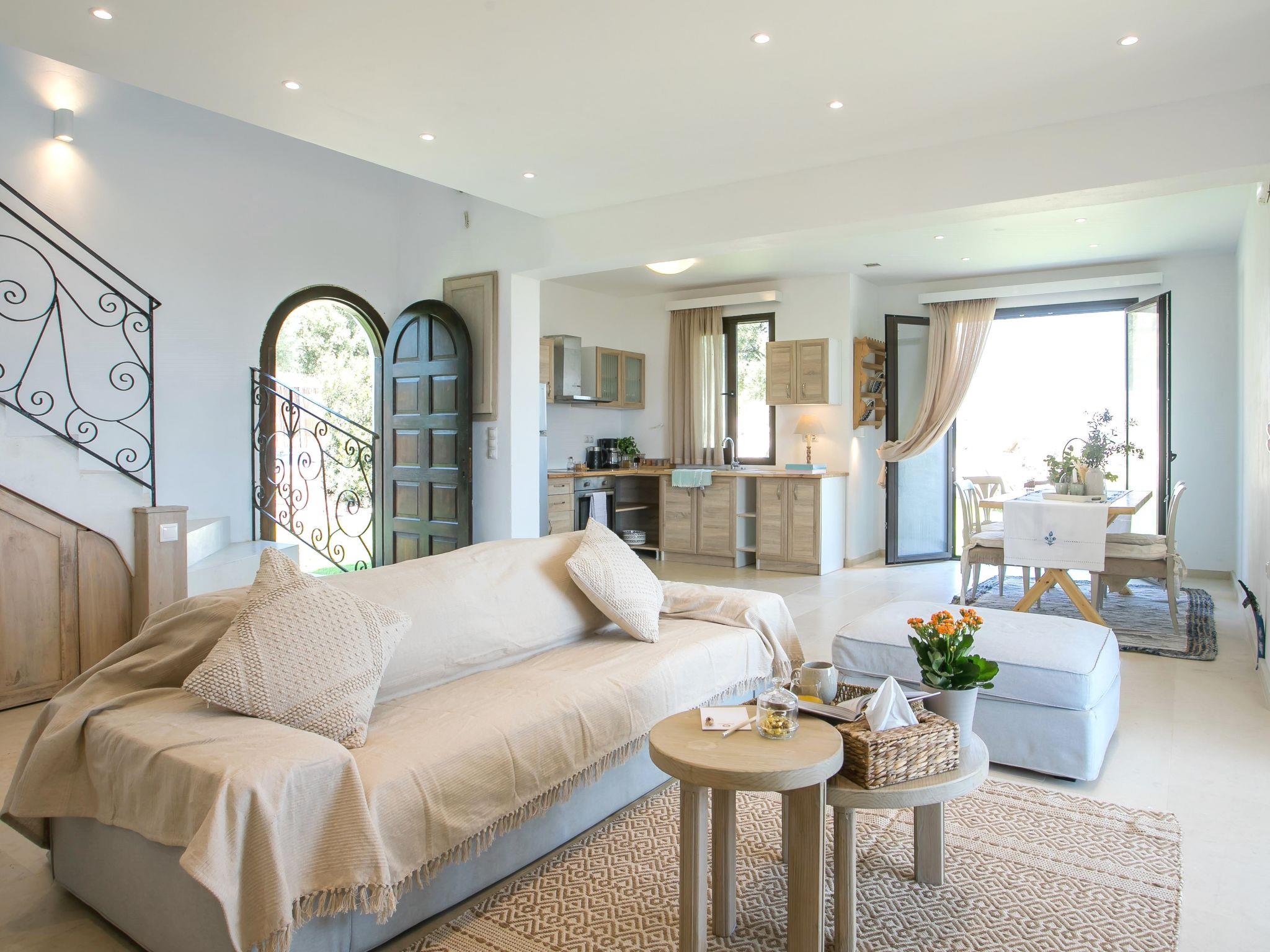 Supermarkets, tavernas, petrol station and town is about 5-8min drive from the house and car or scooter is recommended.